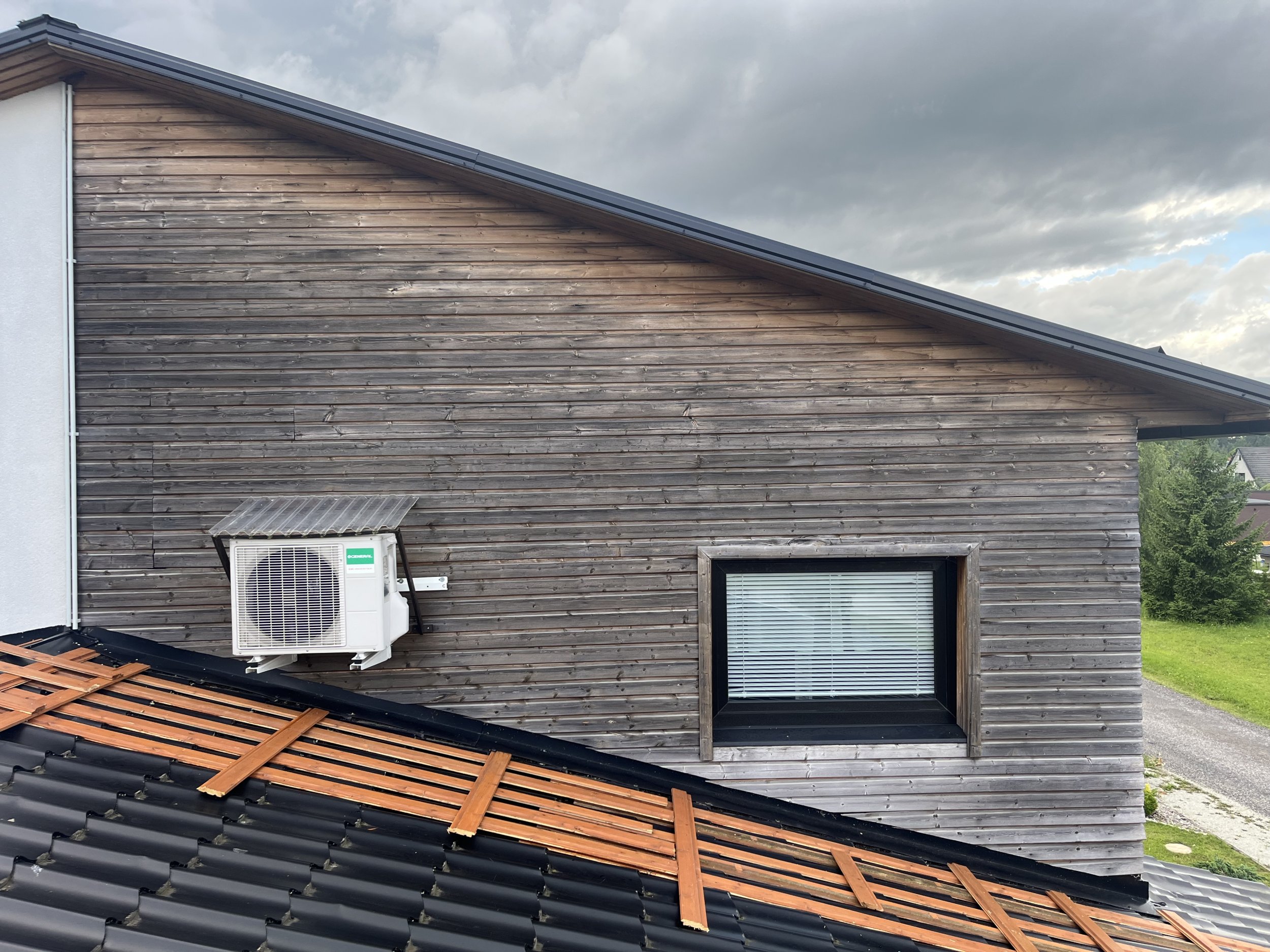 C50 Must, 12x186x3600 mm) vastu. Roovitus ja soojustus (peno) jääb vana alles, mingi tuuletõkke kangas vist on vaja lisada. Aken on tellitud koos paigaldusega. Pinna laius 520cm kõrgus 260cm. Ligi pääseb garaazi katuselt, Katuse kalle 10-15kraadi. Vana laudise eemaldan enne ehituse algust ise.