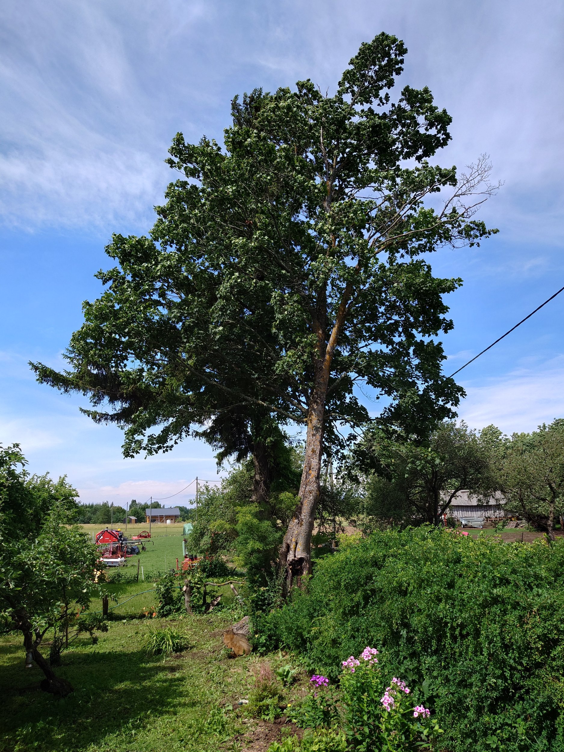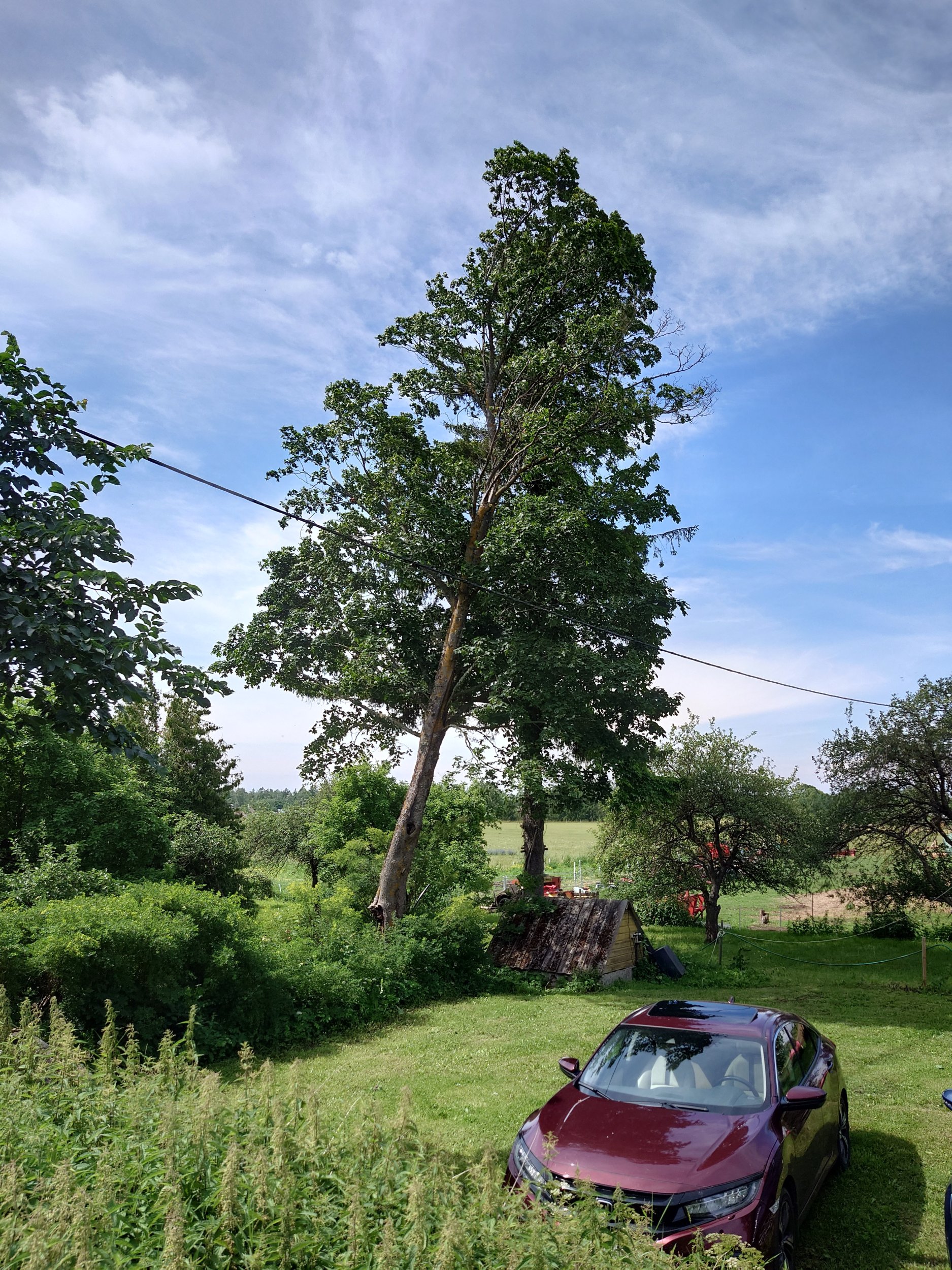 Tuleks maha võtta vana vaher. Langetamist segavad elektriliin ja kaev