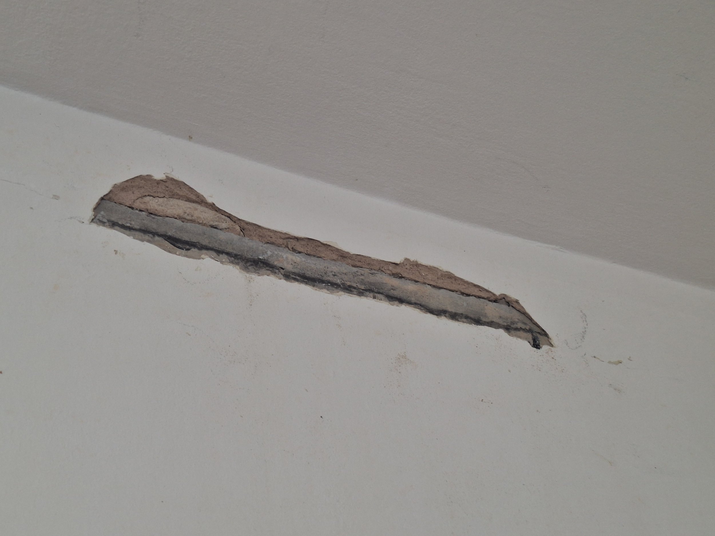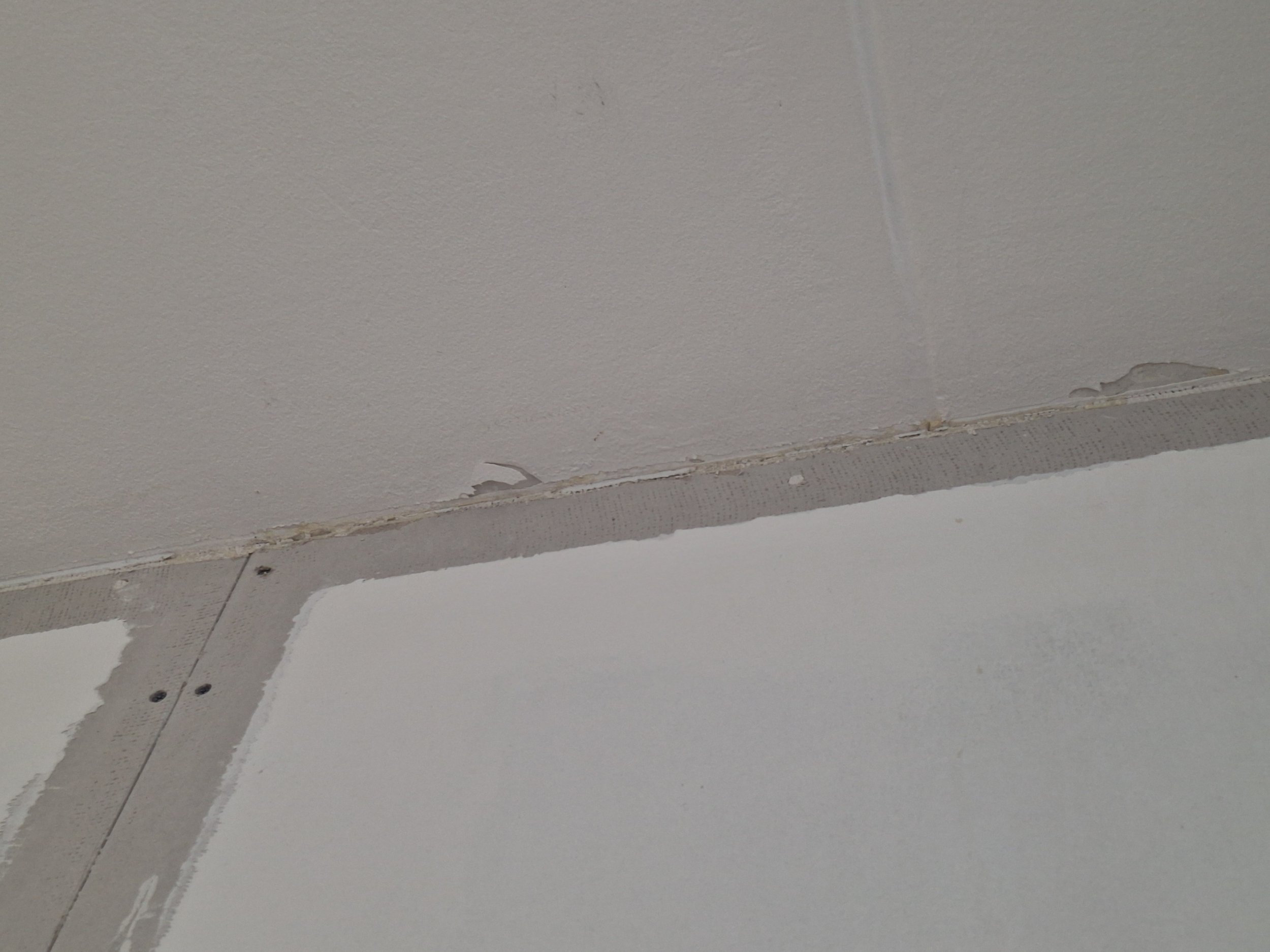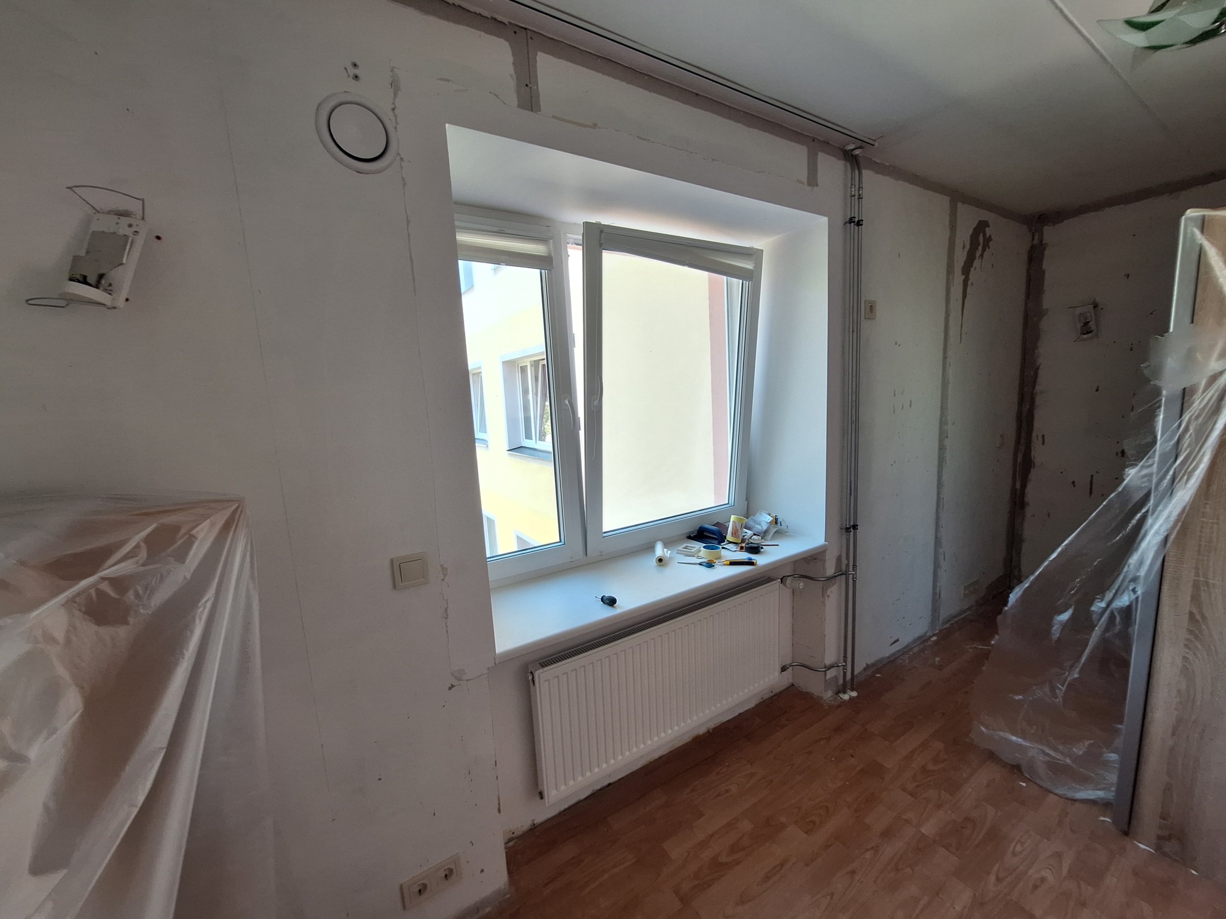 Seintelt eemaldatud eelmine tapeet ning koos sellega klaaskiust vuugilint, millega olid viimistletud kipsplaatide ääred. Üks seintest betoonsein, ülejäänud kipsplaatidega, mis vajavad ka vuukide viimistlemist