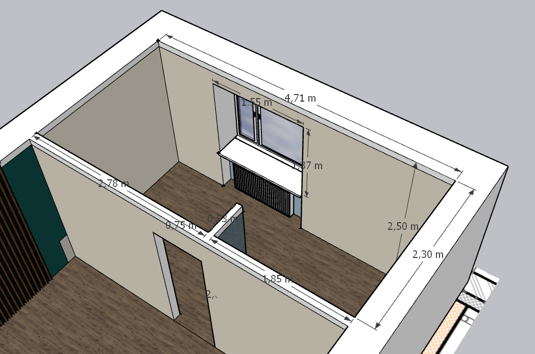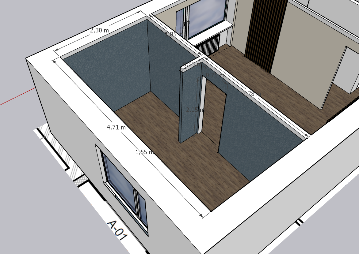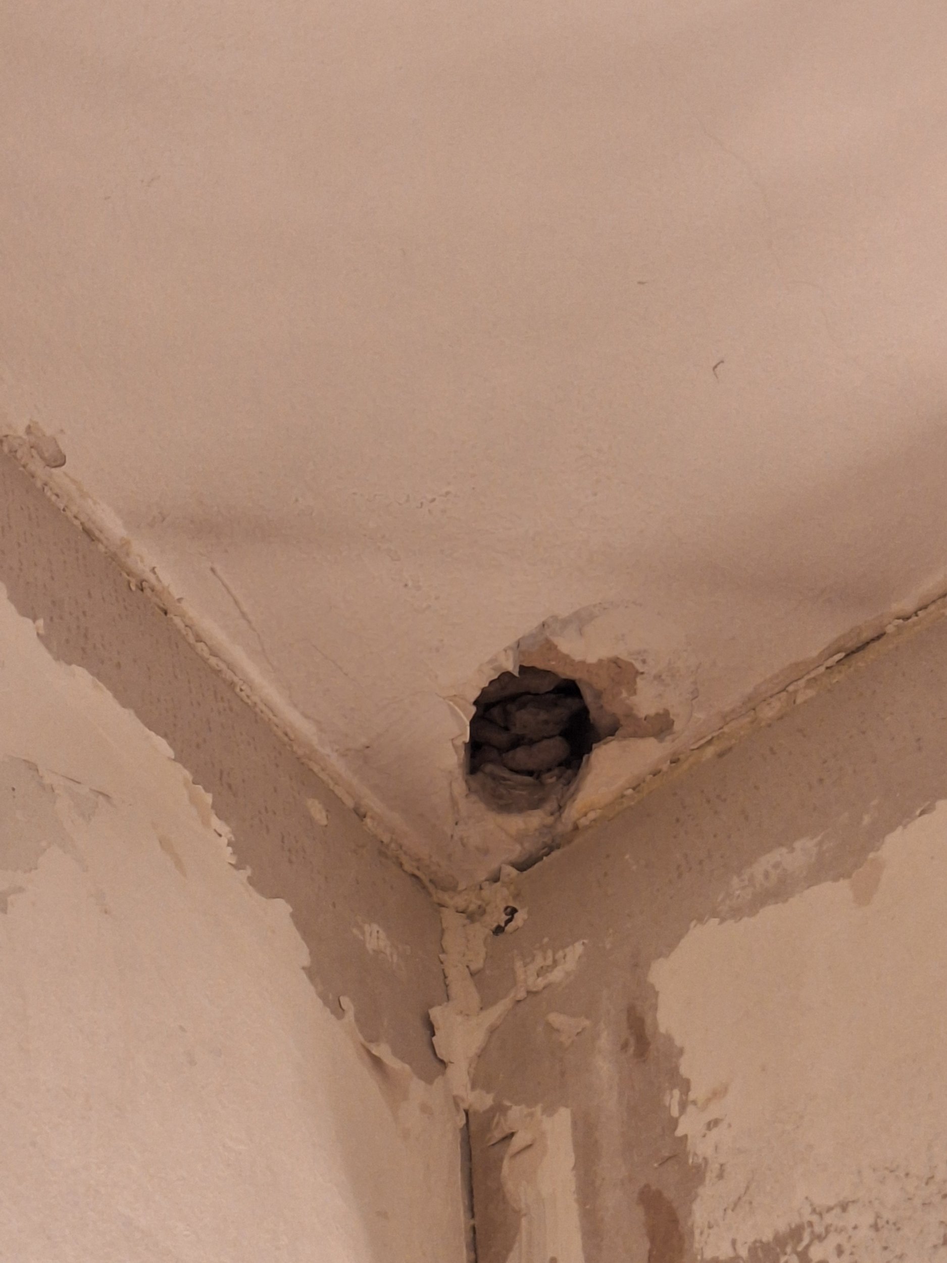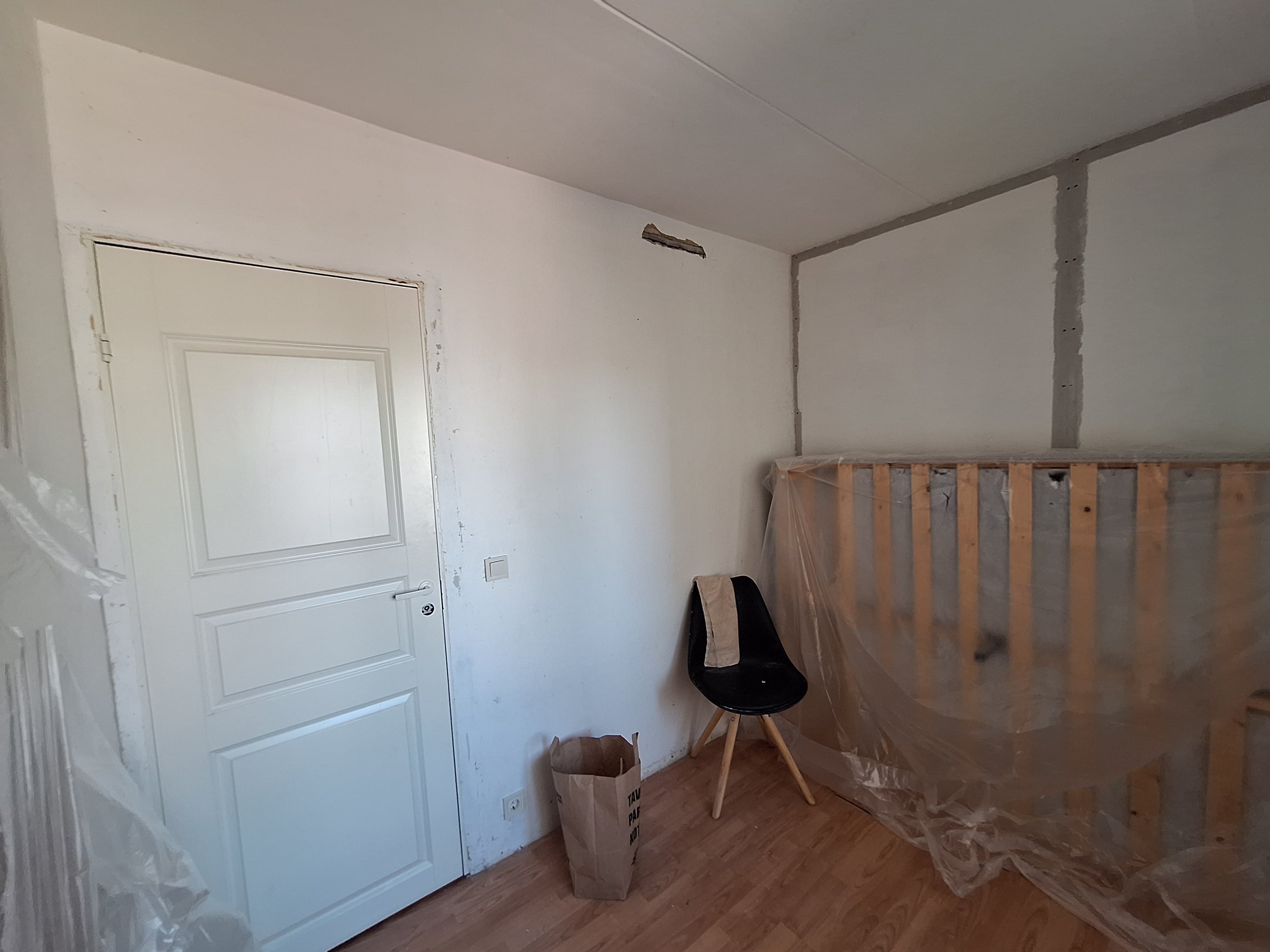 Seintelt eemaldatud eelmine tapeet ning koos sellega klaaskiust vuugilint, millega olid viimistletud kipsplaatide ääred. Üks seintest betoonsein, ülejäänud kipsplaatidega, mis vajavad ka vuukide viimistlemist