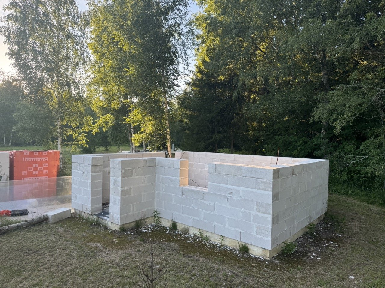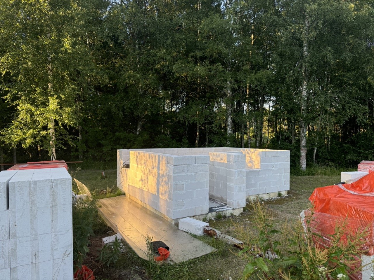 Töö käigus vaja ehitada lõpuni poolelijäänud seinad. Ülemise rivi lahtised kivid tuleb korrastada ja kinnitada uuesti. Aknaavad tuleb lõigata suuremaks (mõõdud annab tellija ette). Kolme akna ning ukse kohale tuleb sillus paigaldada. Maja otsad tuleb laduda katuse ääreni. Vahelakke prussid poole maja ulatuses (magamisase) ülejäänud katusealune peaks jääma lahti. Katusesarikate toetuseks tuleb kummalegi poole maja liimpuidust pruss, millele toetuvad katusesarikad. Sarikatele peale tuuletõkkeplaat, distantsliist, kile ja roovitus katusekivide jaoks.