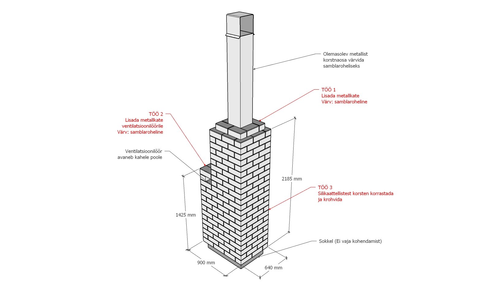 Mõõdud on antud joonisel, samuti vajalikud tööd. Loetlen need ka siin: