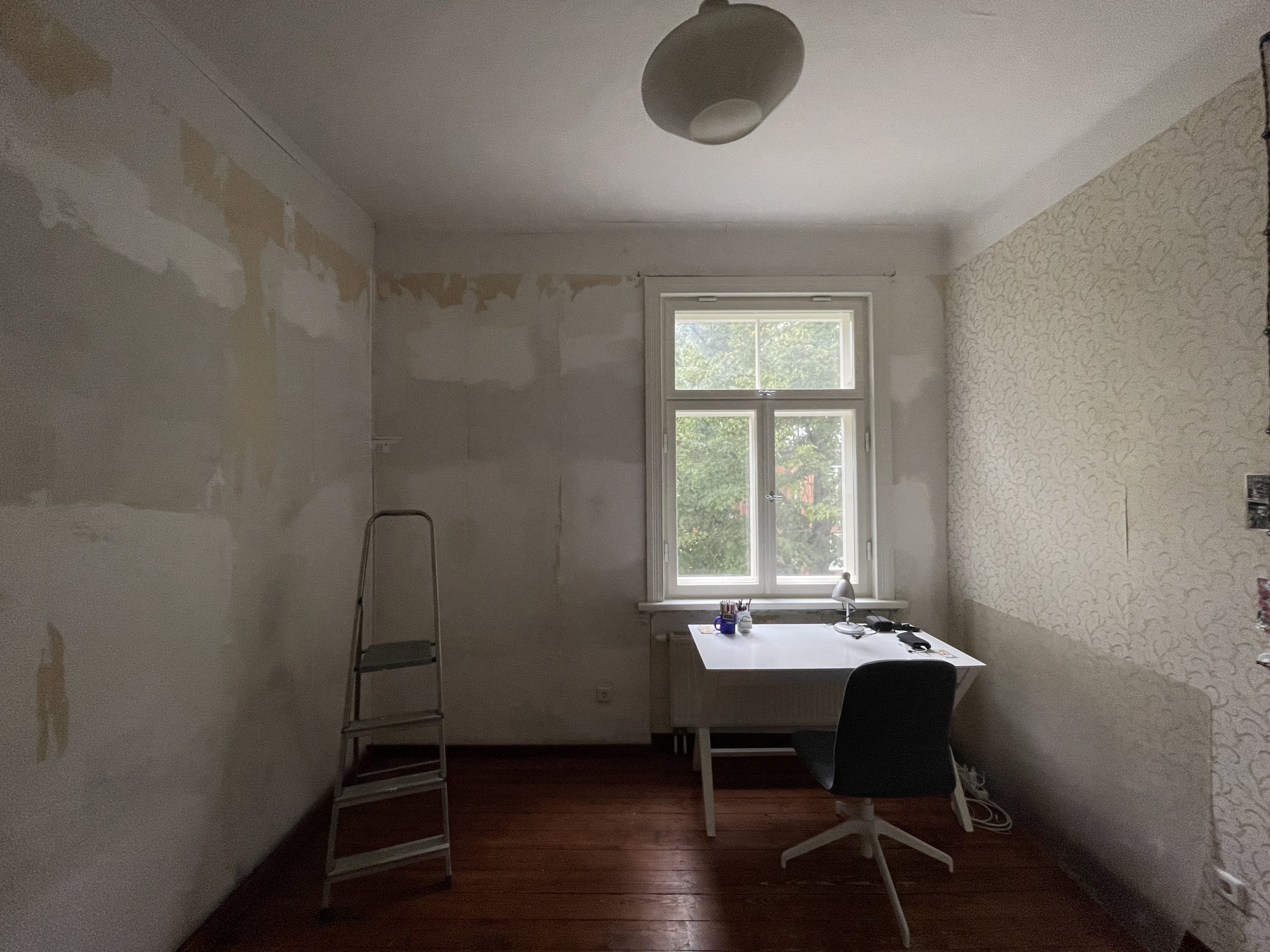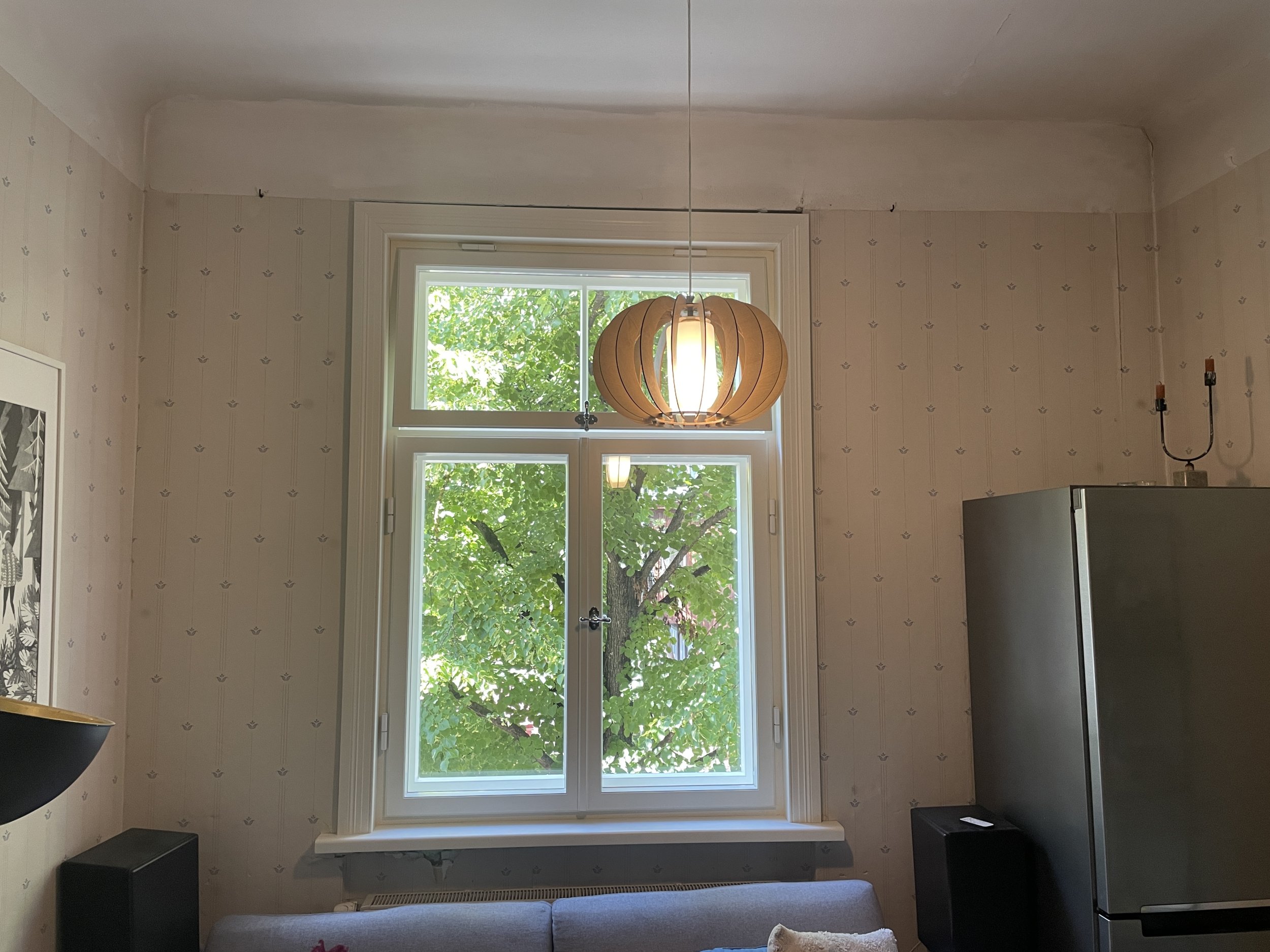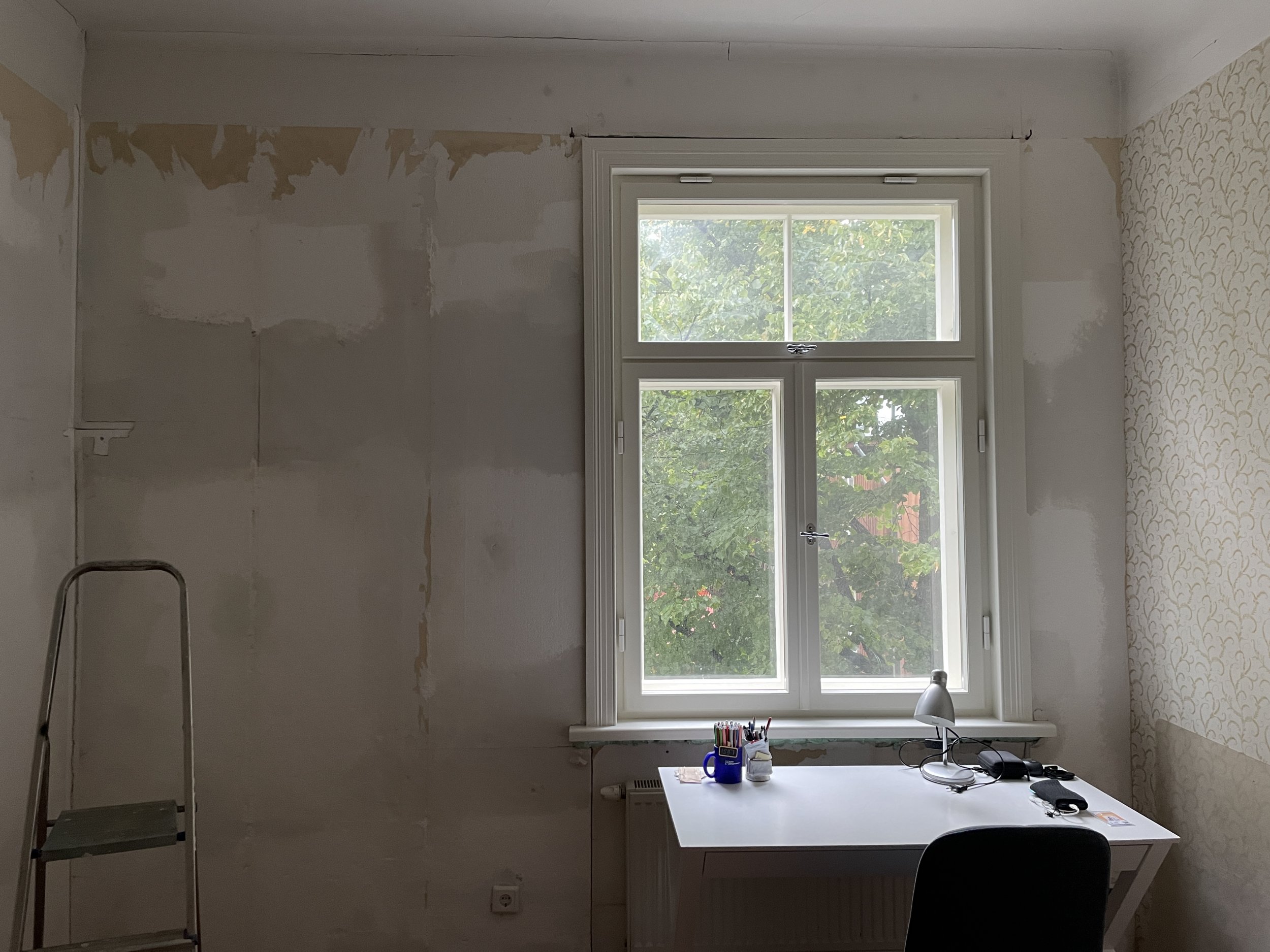 -ühe seina soojustuse vahetus ning ettevalmistus tapeetimiseks. Seina mõõt 3.2x3m, aknaava 1.4x1.9m.