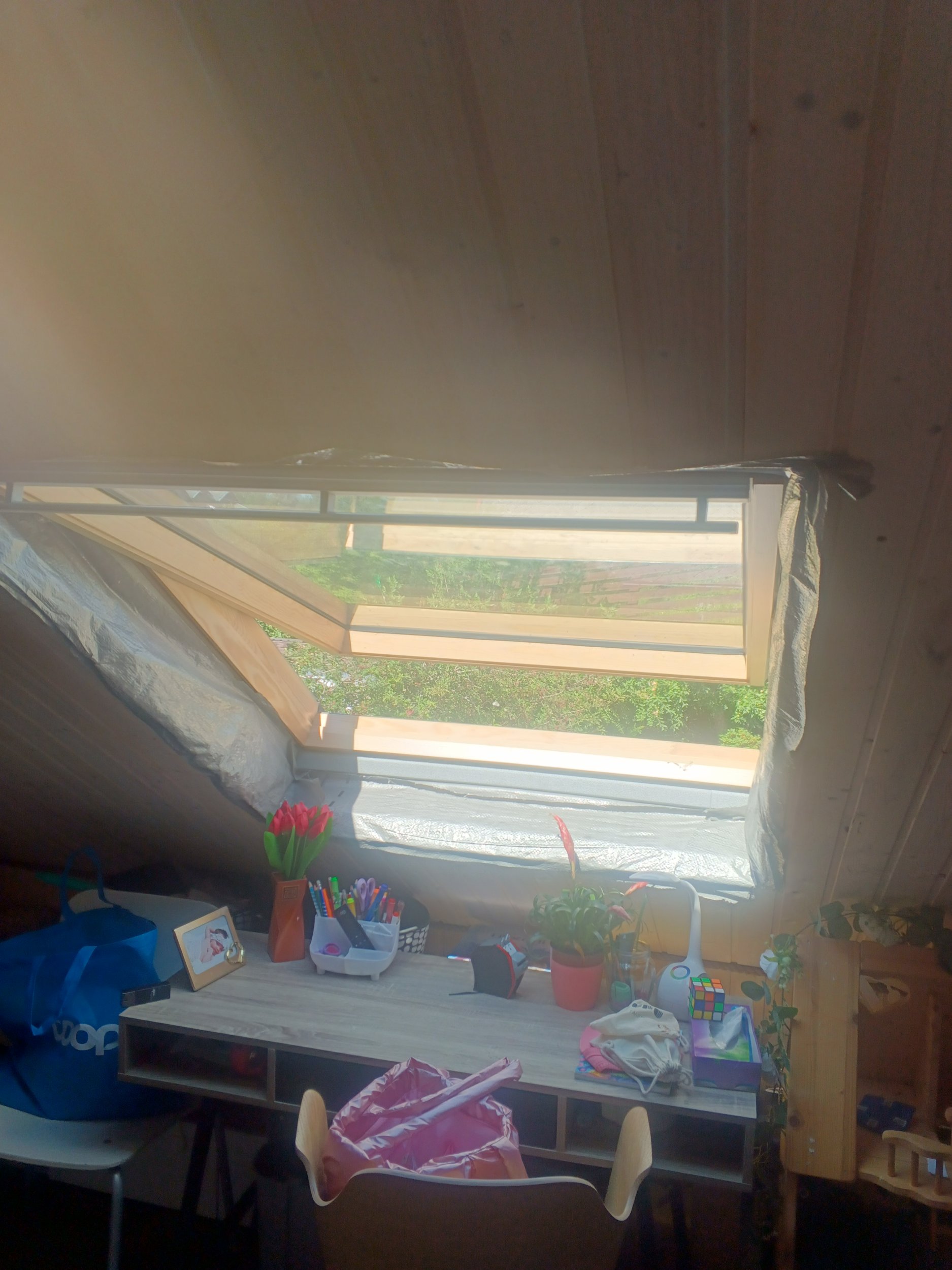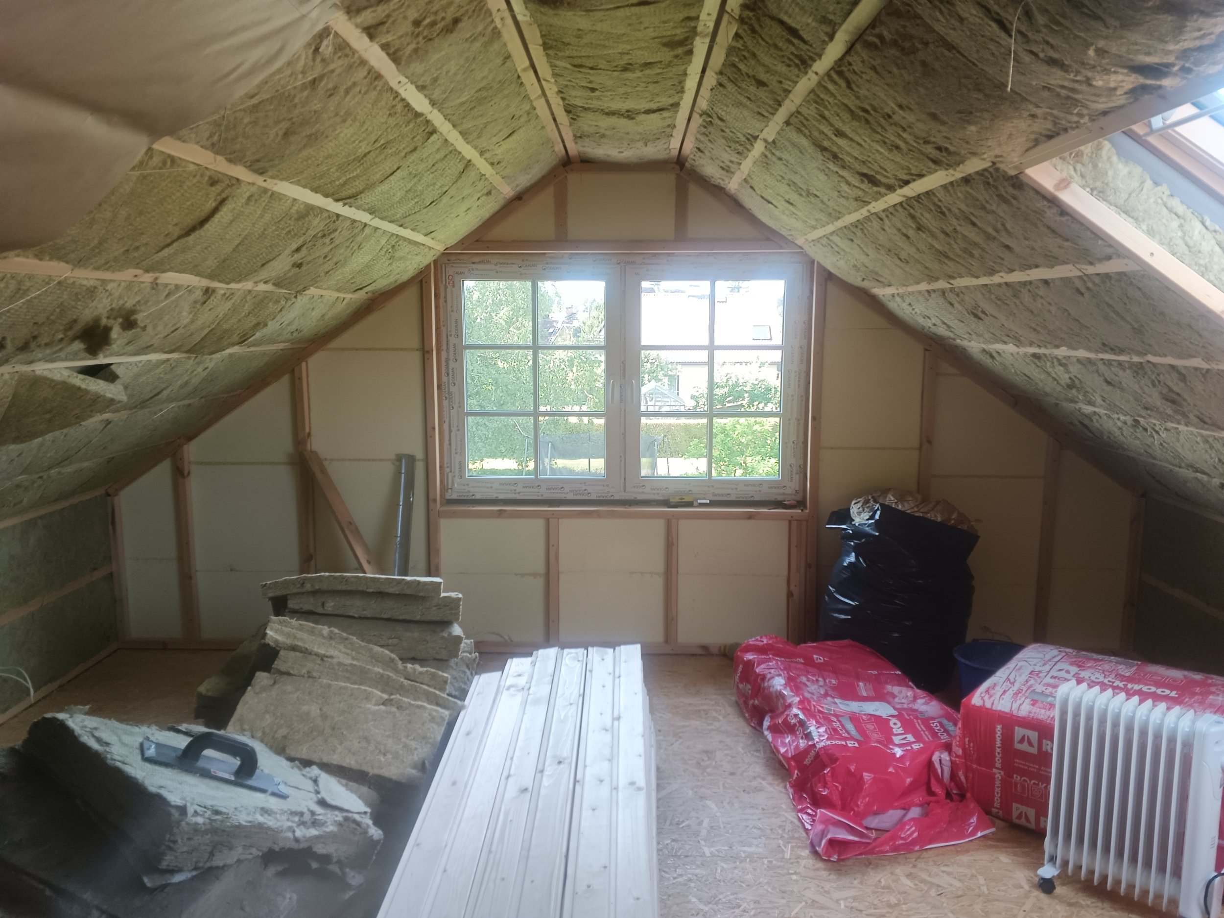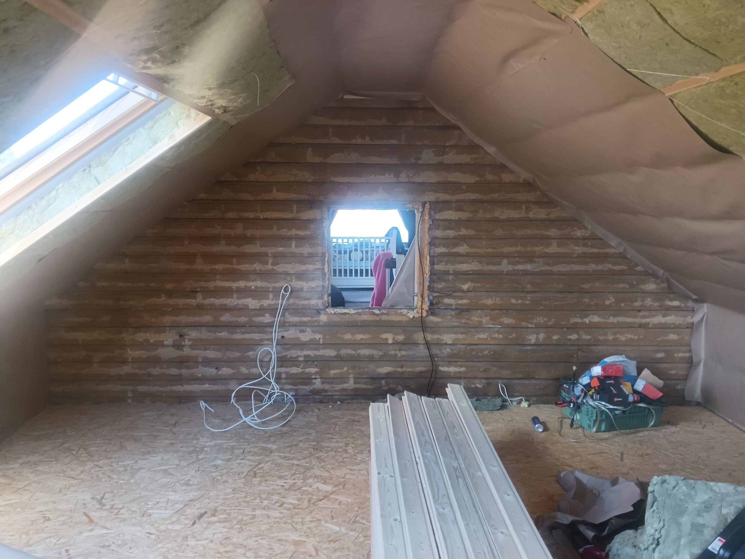 Ukse ava tegemine ja männipuidust ukse paigaldamine, lagi ja seinad voodrilauaga, otsaseinad küprokiga katta, põrand laminaat. Kahe katuseakna paled
