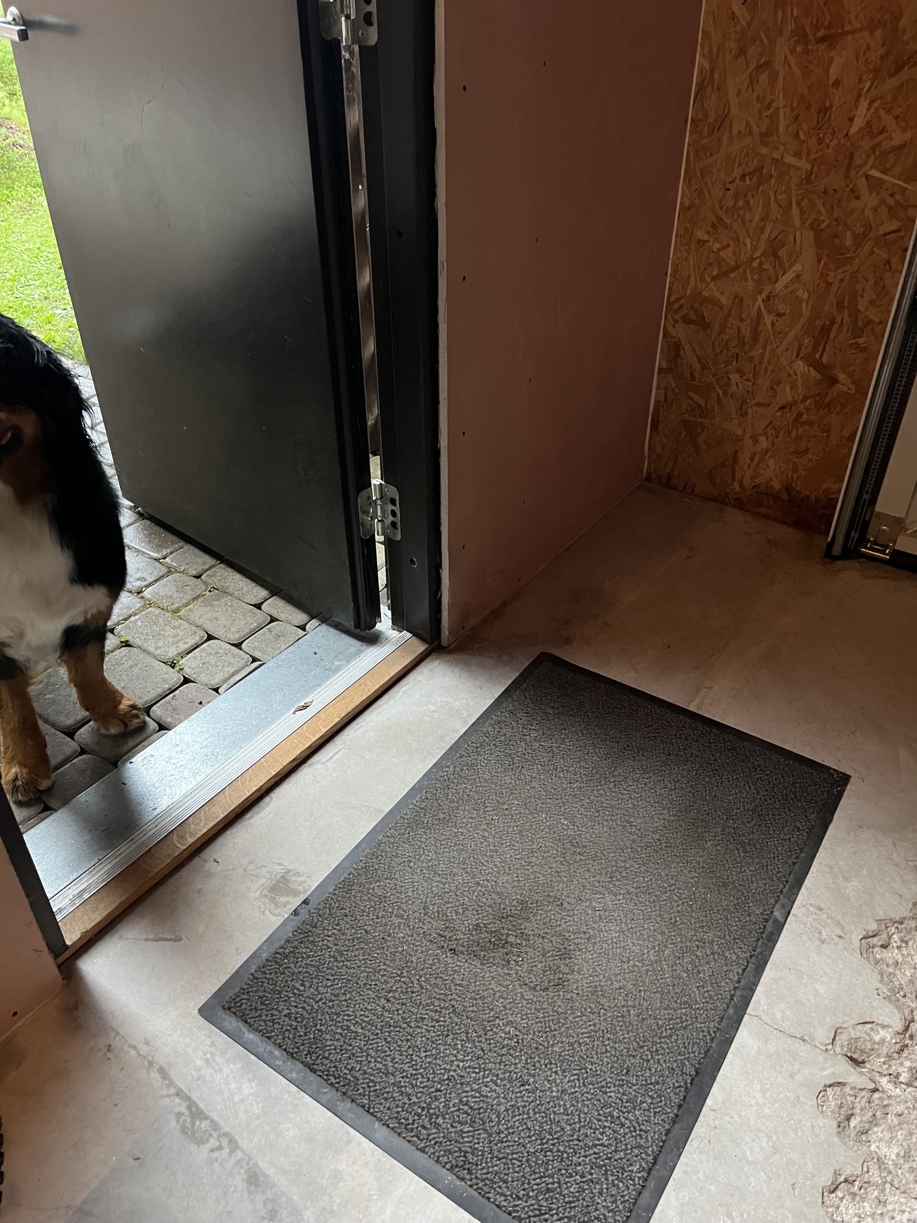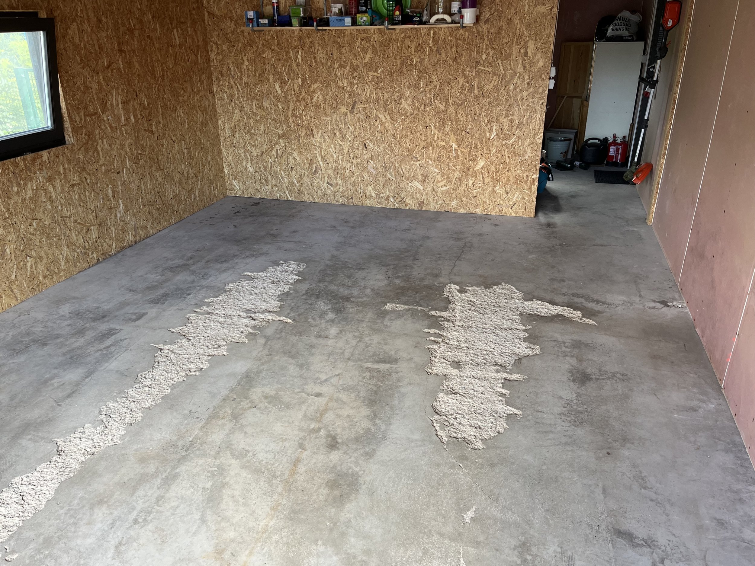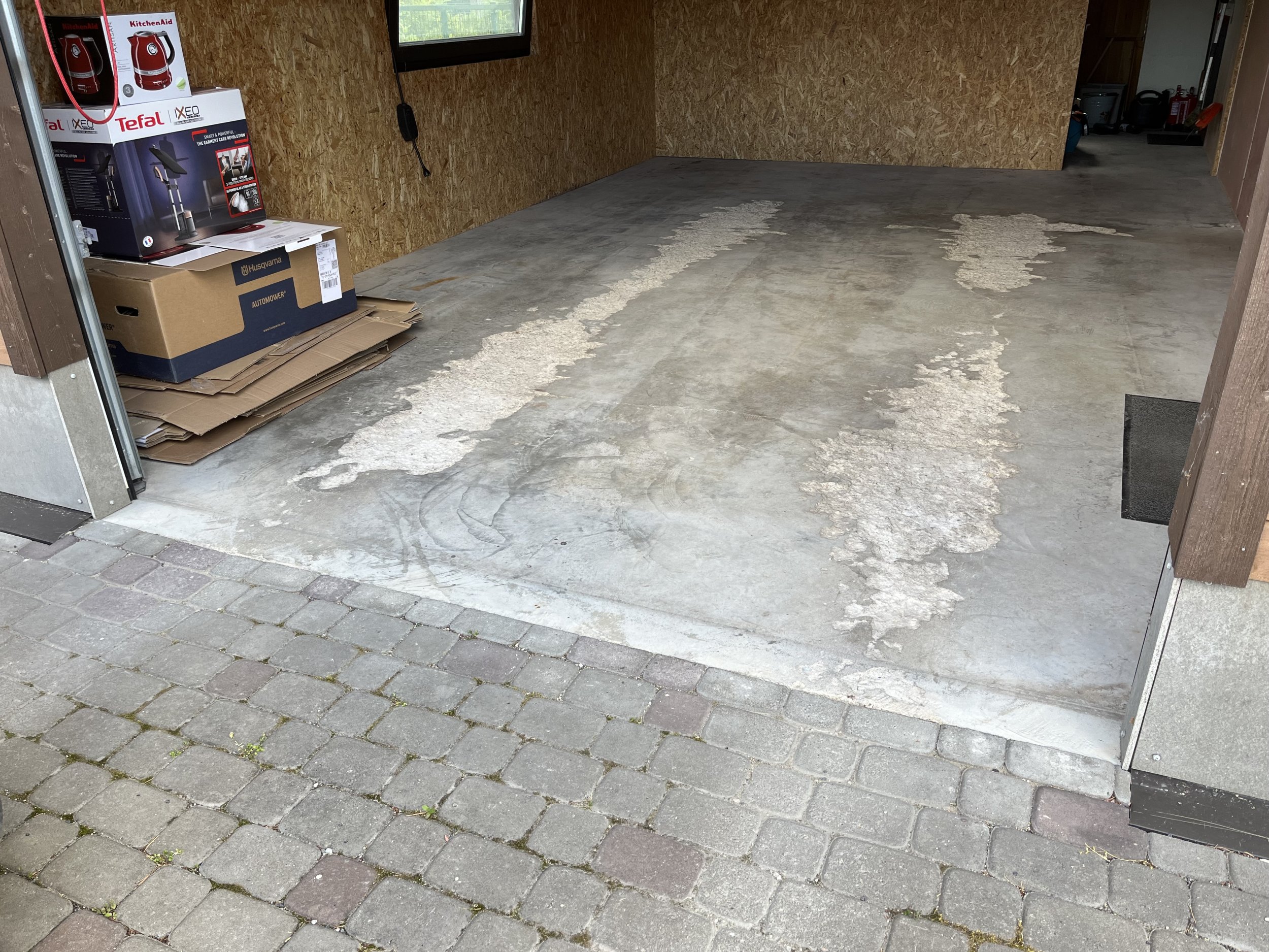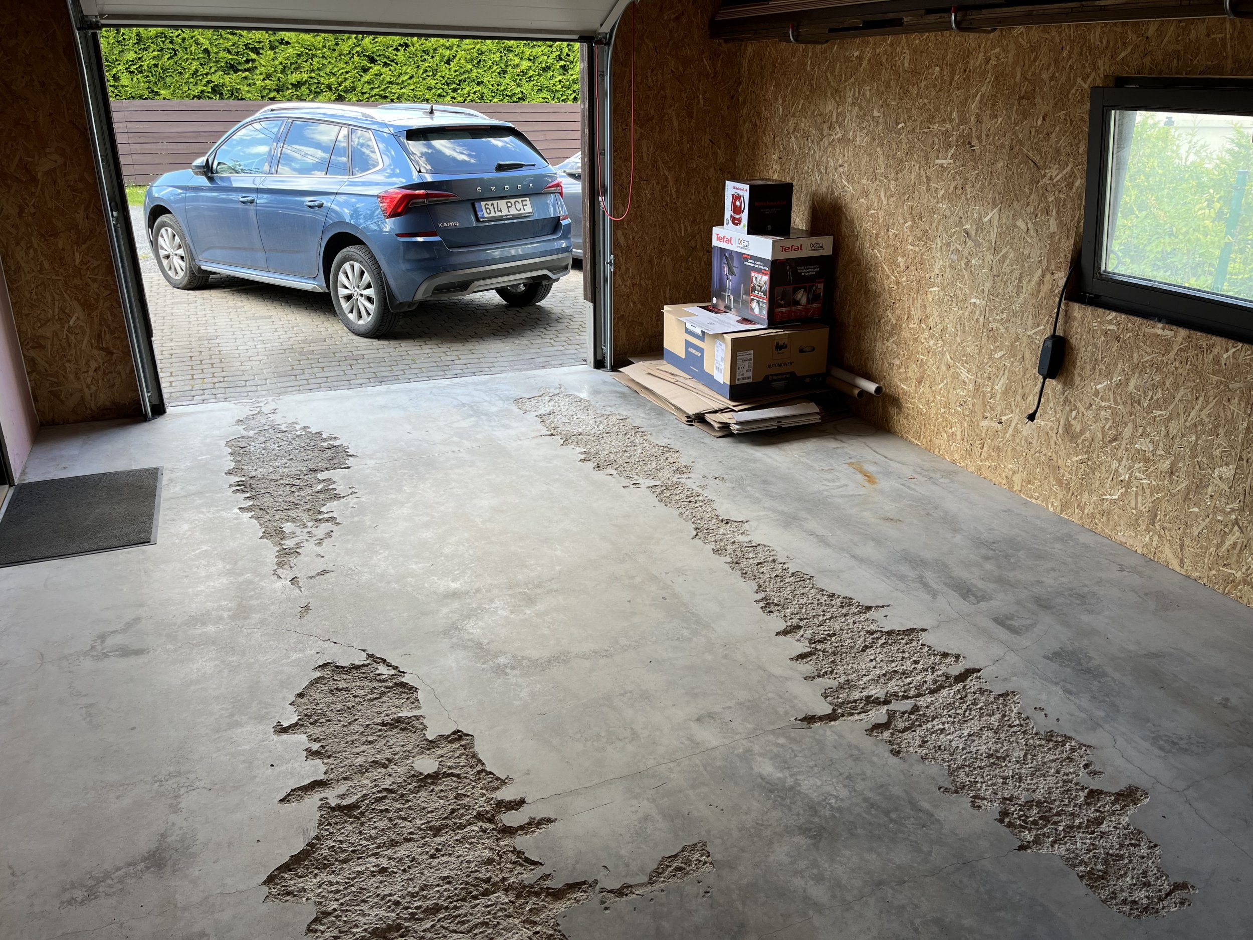 Kaks probleemi vajavad lahendamist. Lohud põrandas kohati kuni 2cm sügavad ja teine mure suure vihmaga imbub autovärava alt vett sisse.