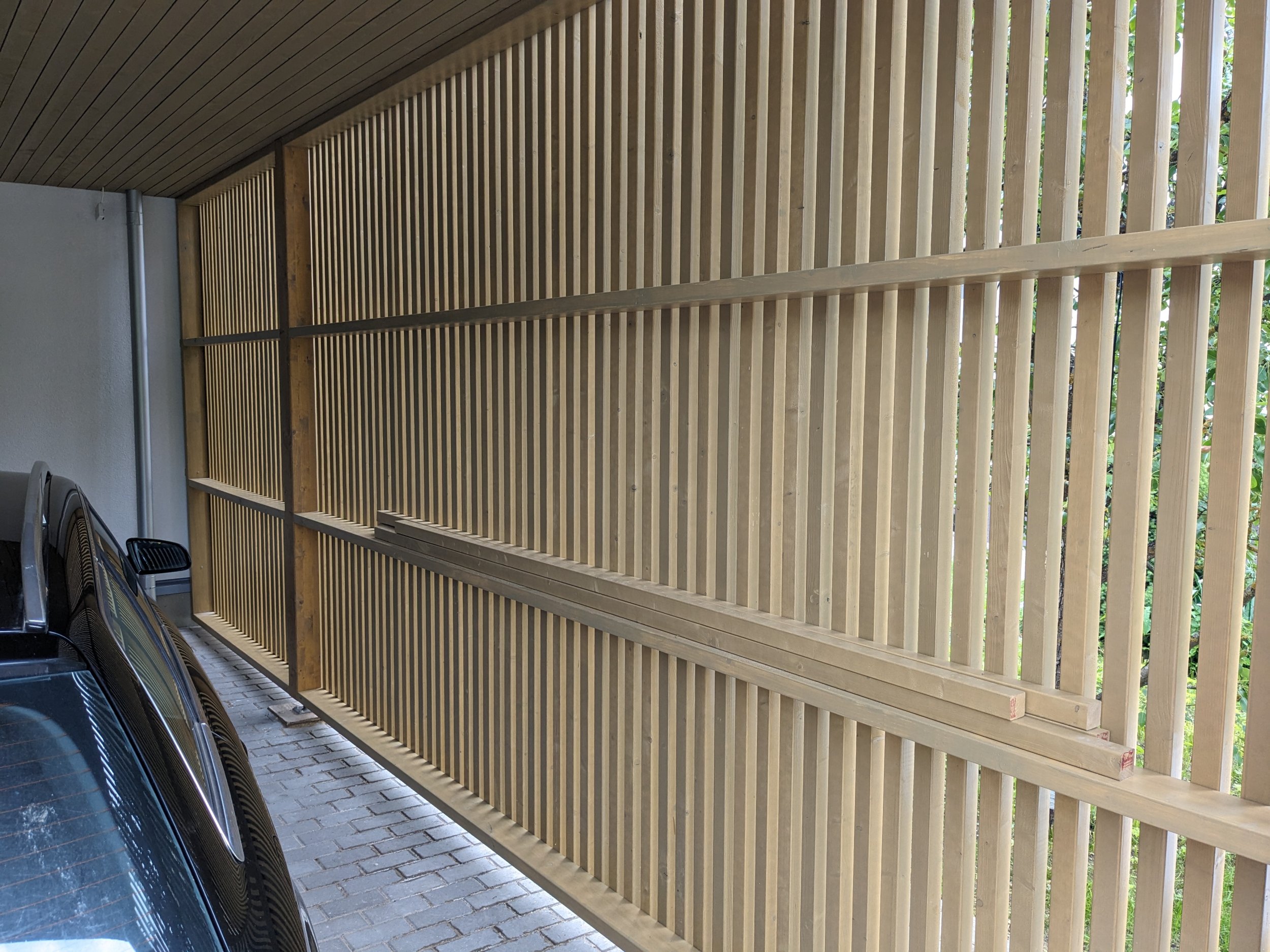 Lisatud kolm pilti olemasolevat autovarjualuse varjestusest, et oleks ettekujutus, millist varjestust soovitakse.