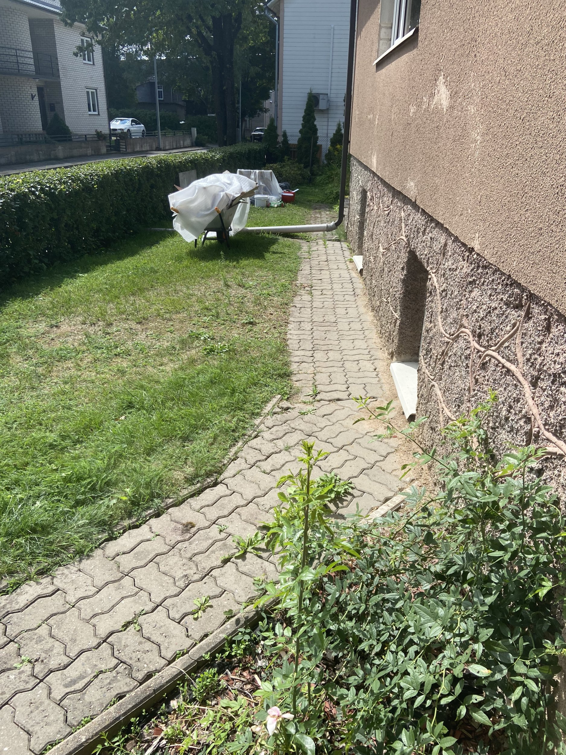 1. Maja ümbert tuleb kaevata ja ära viia umbes 60 kuupmeetrit maad. Kaevama peab 0.5 meetrit sügavale