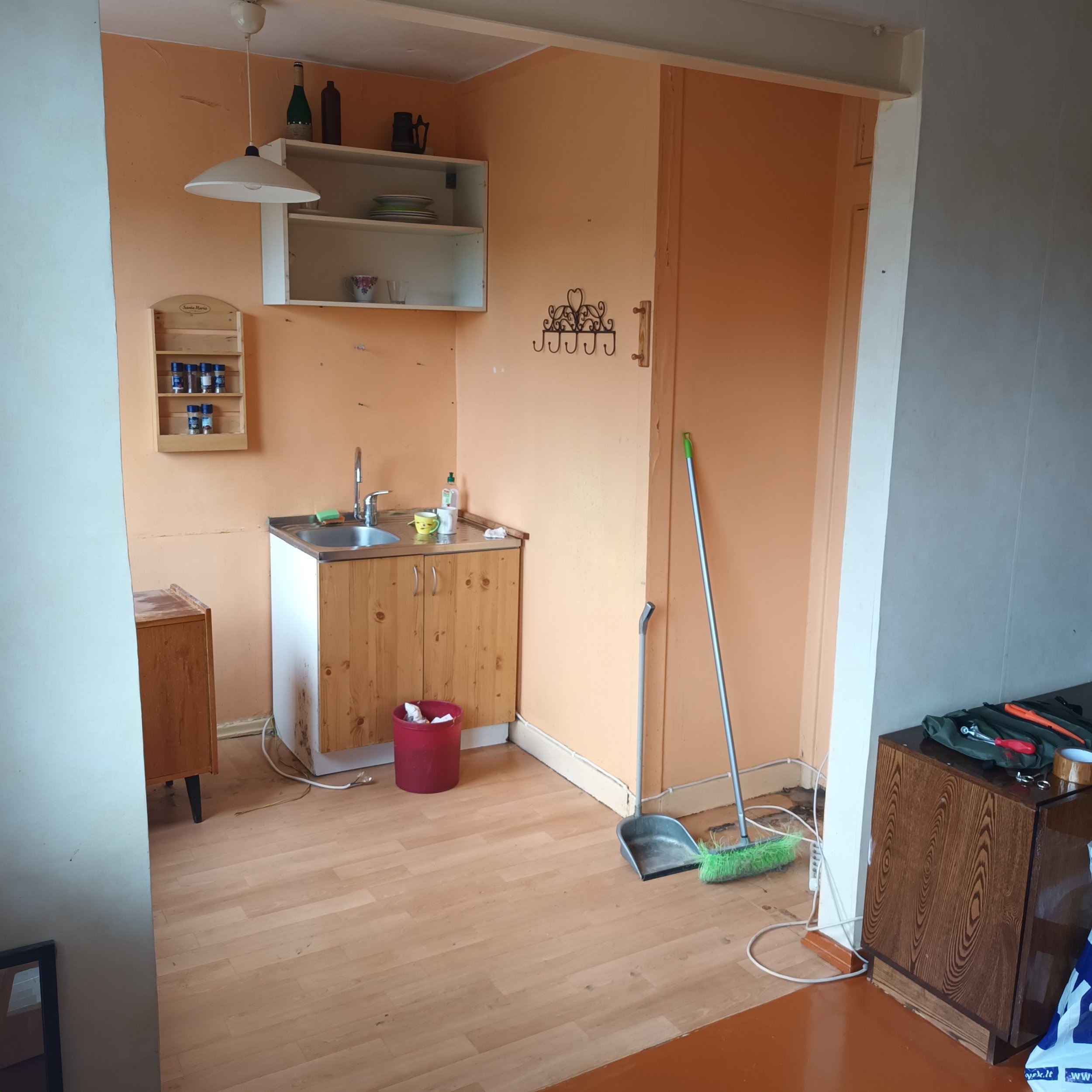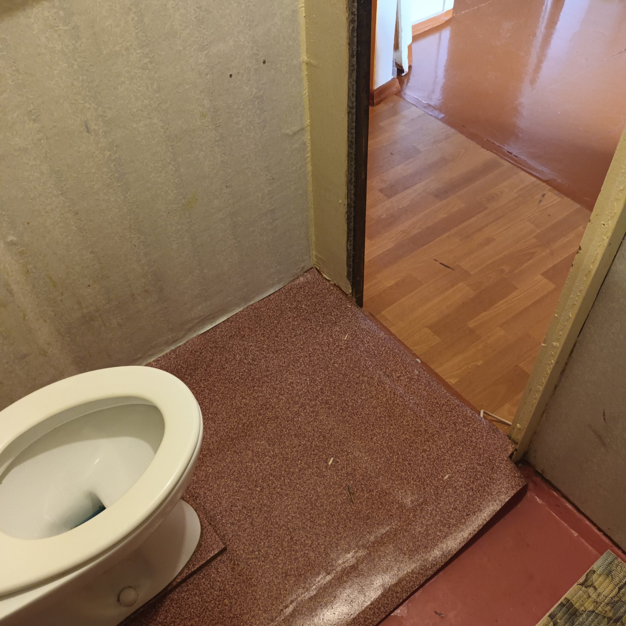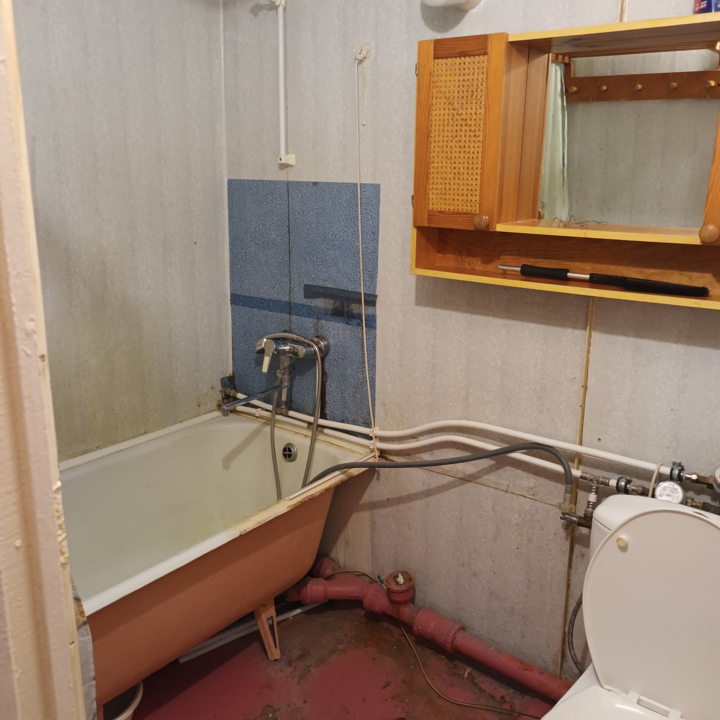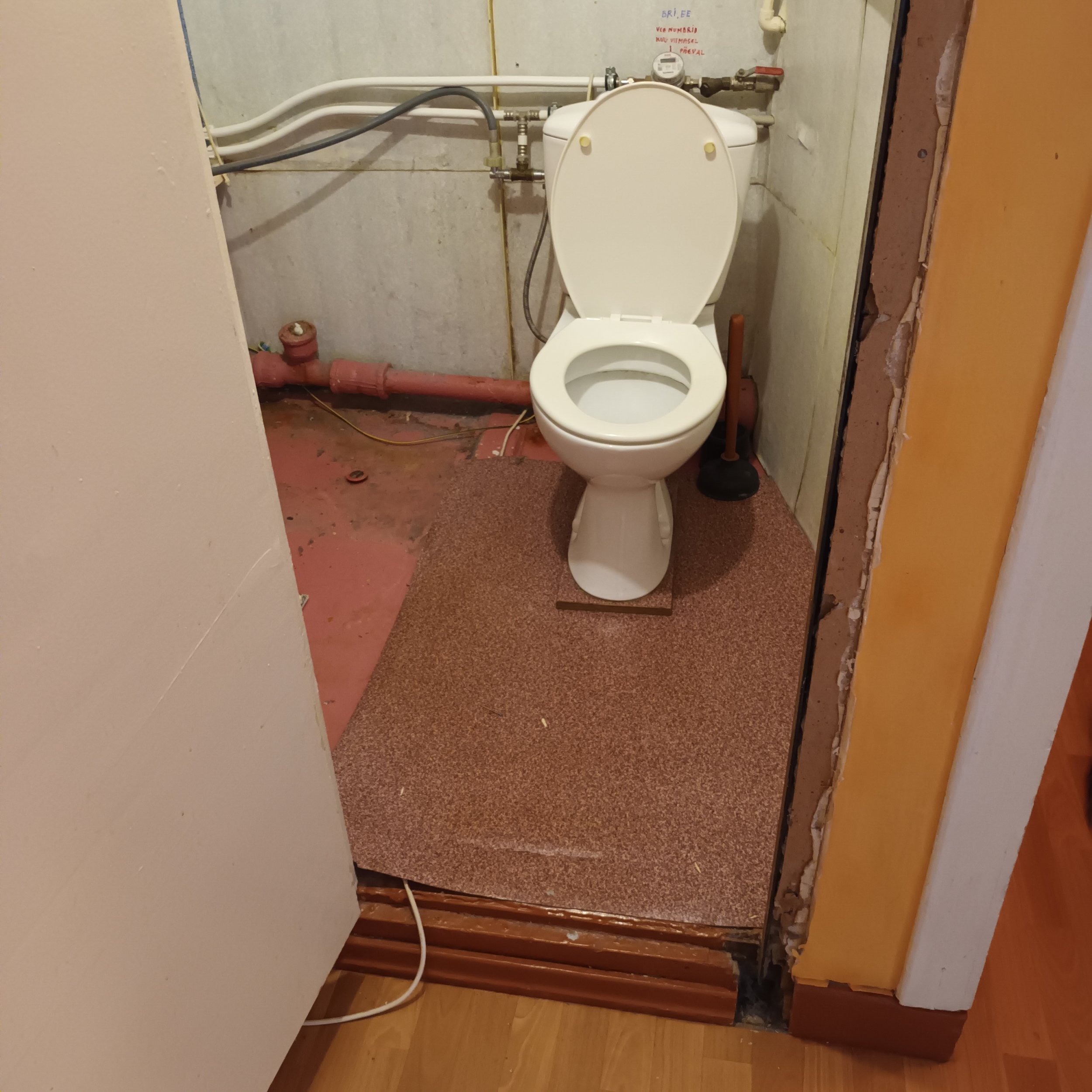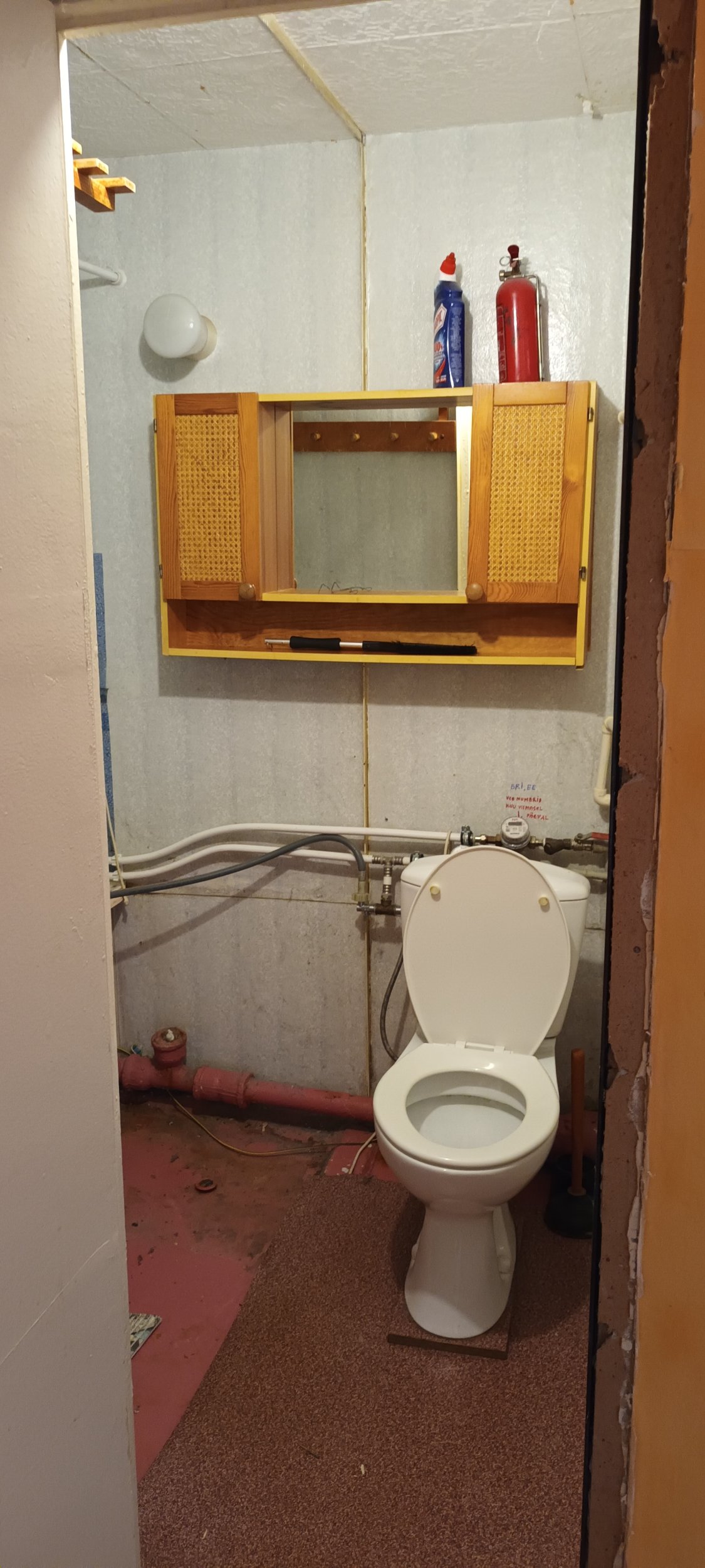 Vana vannituba tuleb välja lõhkuda, seina sisemine tsementplaatidest külg on juba lõhutud varem ja praht ära viidud. Seina väline külg jäänud lõhkuda, ilmselt ka kõrgem tsementpõrand.