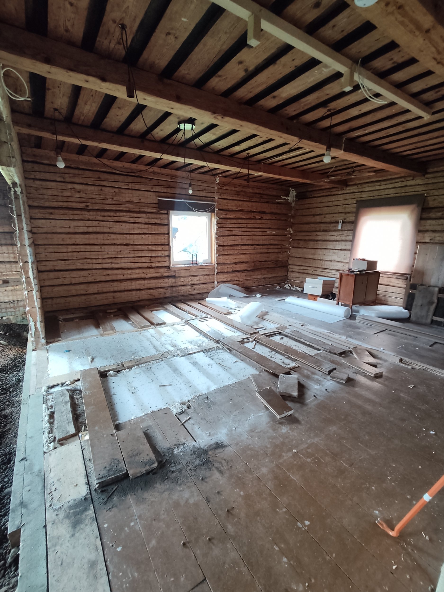 Elutoas põranda all on puidust karkass ja kivivill. Ühes magamistoas on puidust põrand ja penoplastist soojustus. Teises magamistoas on laminaat, siis selle all OSB, siis liiva/saepuru segu paar CM ja siis puitpõrand.