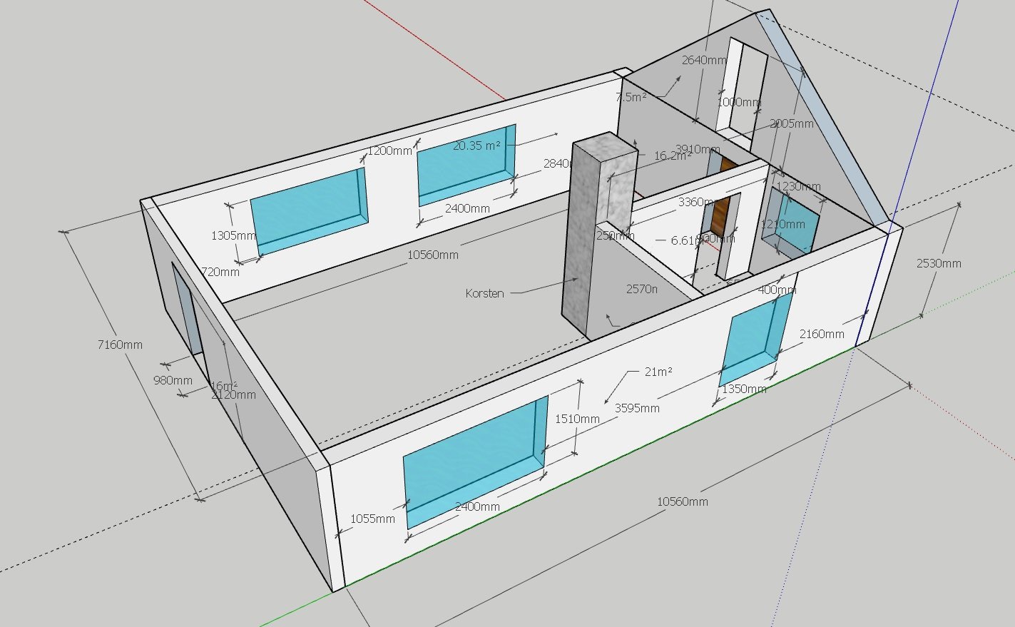 Esimese korruse seinad ja Teise korruse otsasein, seinte pinda kokku 110 ruutmeetrit ning 50m akende ja uste põskesid/palesid.