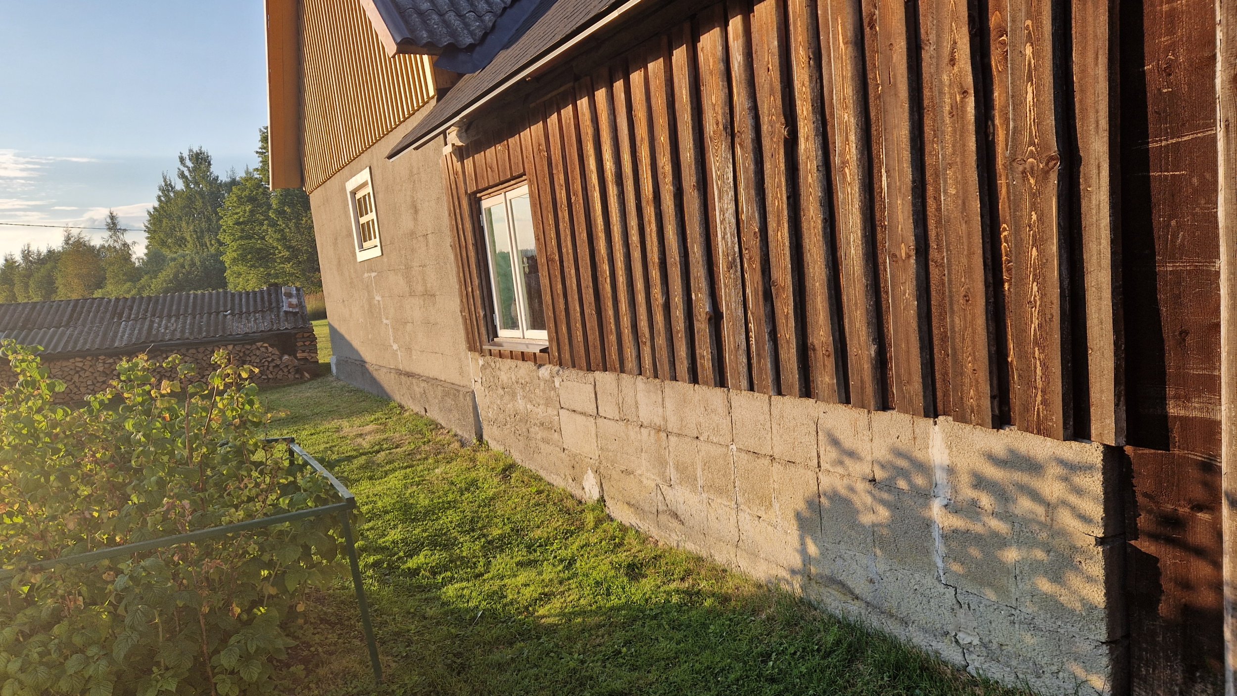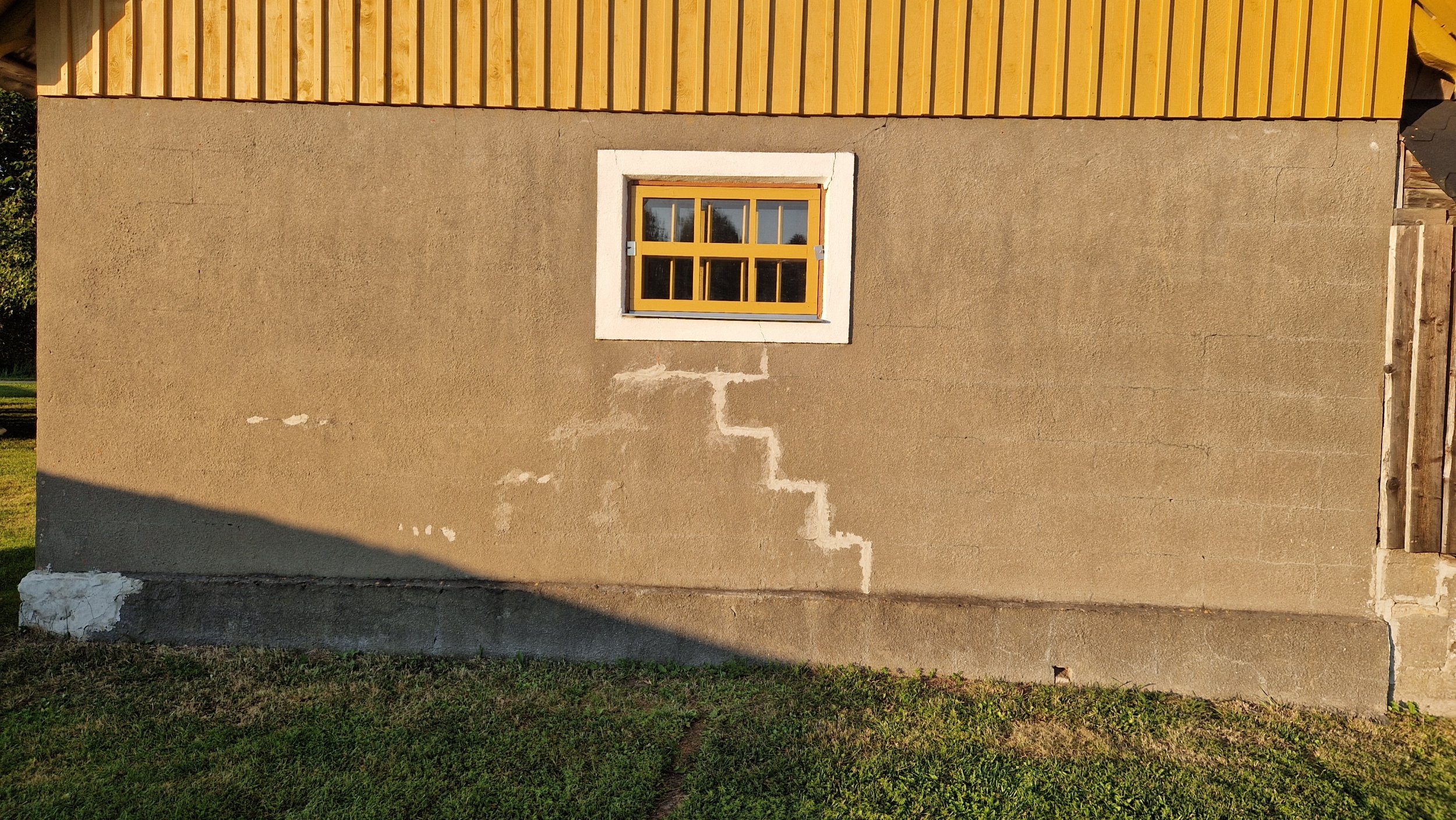 Vaja krohvida jämeda struktuuriga vana talli ots ja kõrval asuv sokli osa.