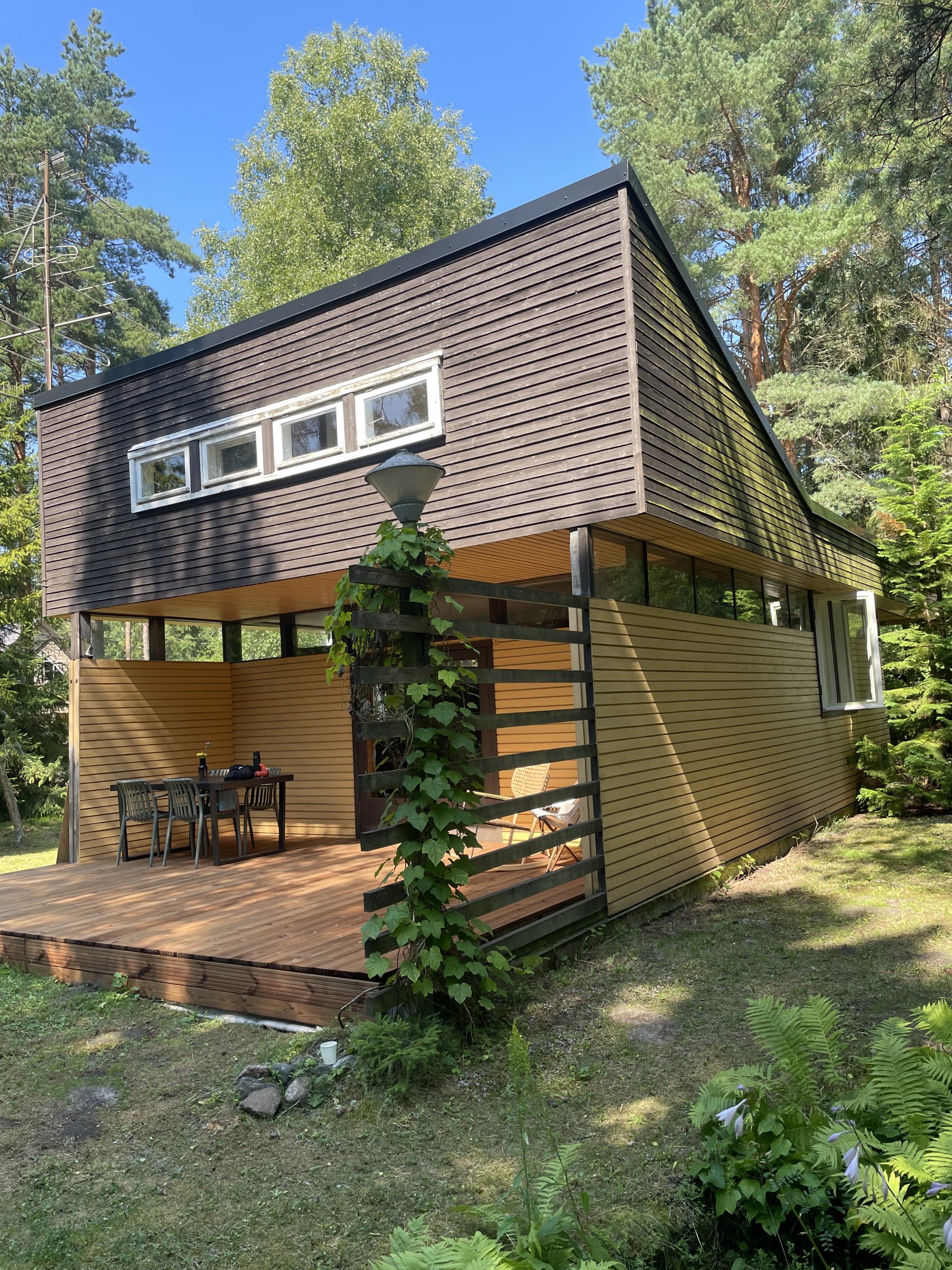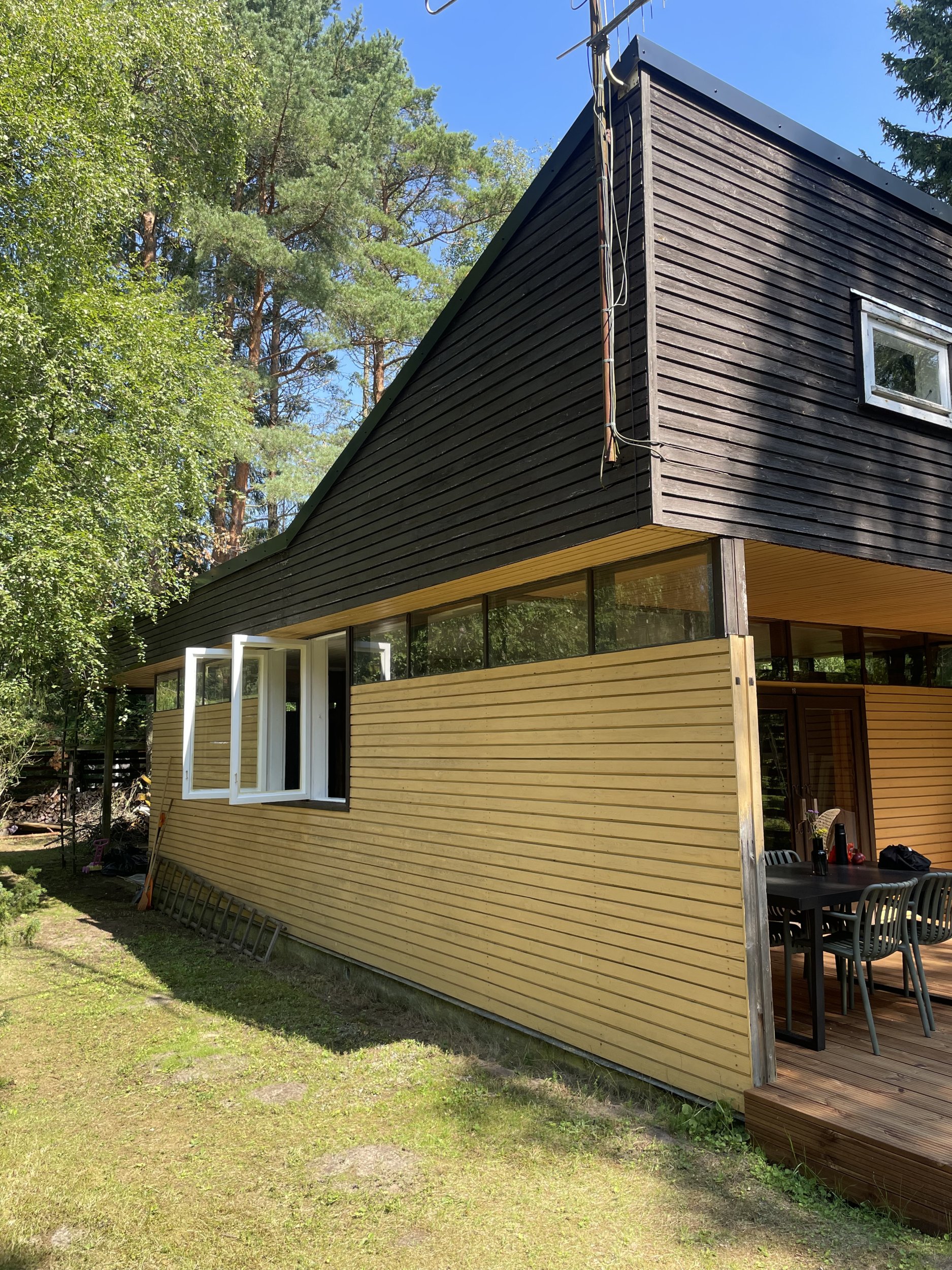 Suvila fassaadi värvimine kahe erineva tooniga. Praegune kollane osa tumeroheliseks ja praegune tumepruun osa mustaks.