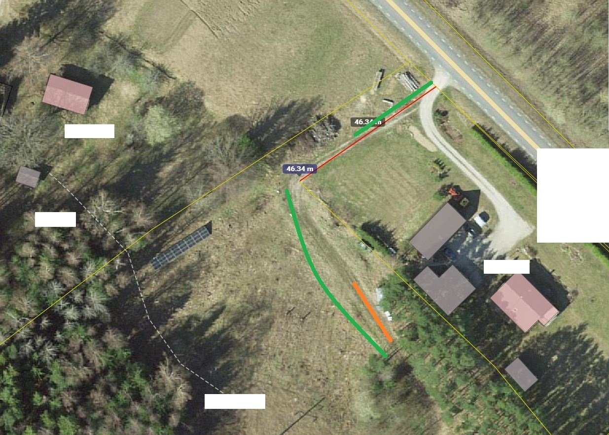 Pikem roheline oleks uue tee asukoht (kaarjas ),kõrguste vahe (käänakust alates) on umbes 3m .