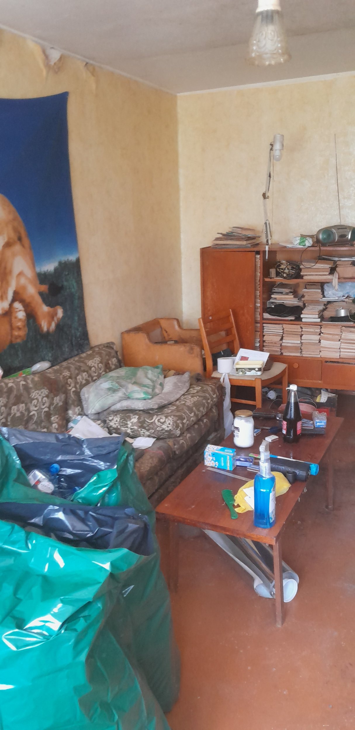 Kahetoalise korteri ja juurdekuuluva keldri tühjendamine alles jääks ainult wc pott. Tubades , köögis, keldris, vannitoas ( malmvann) - neli seina.