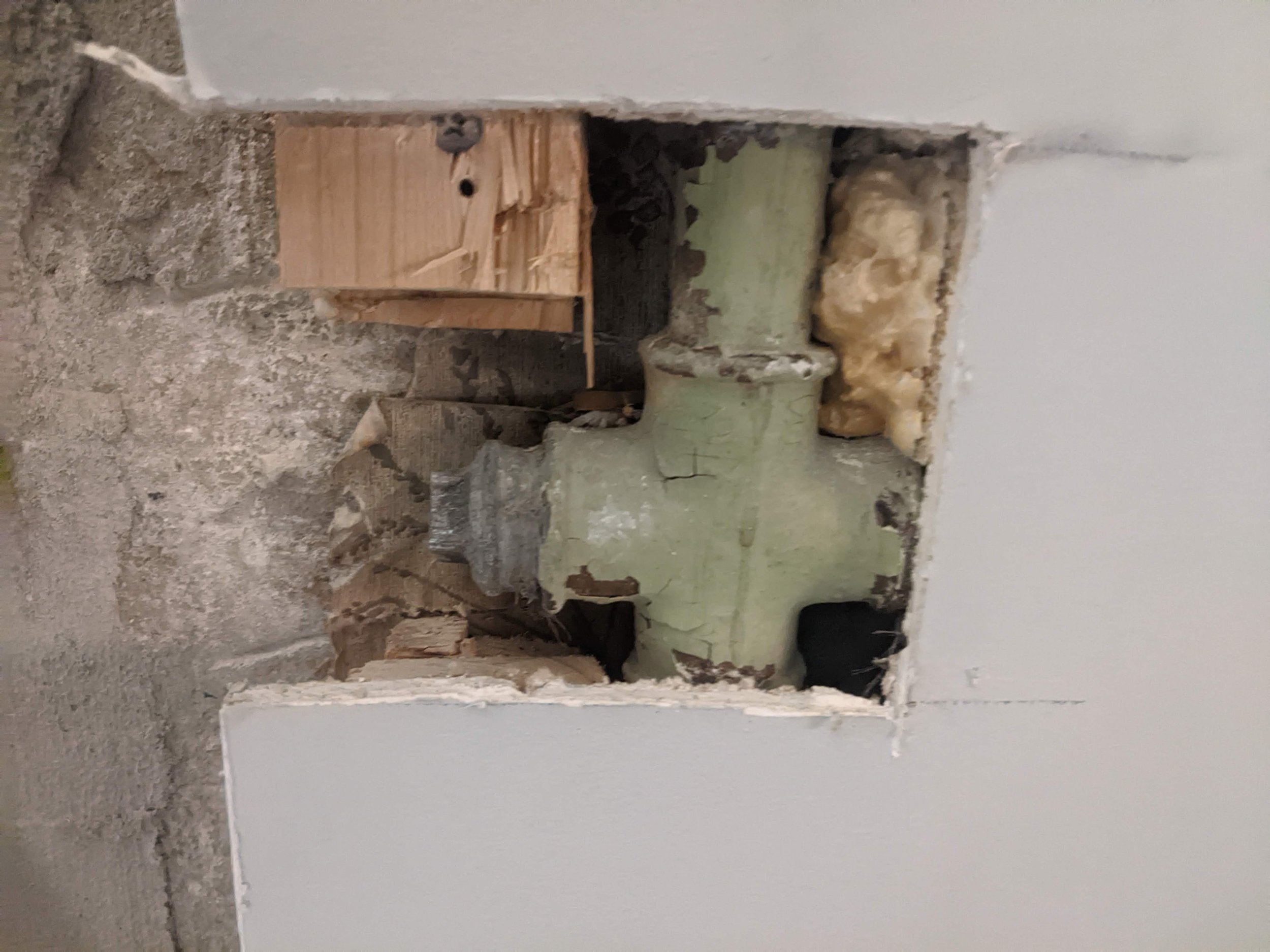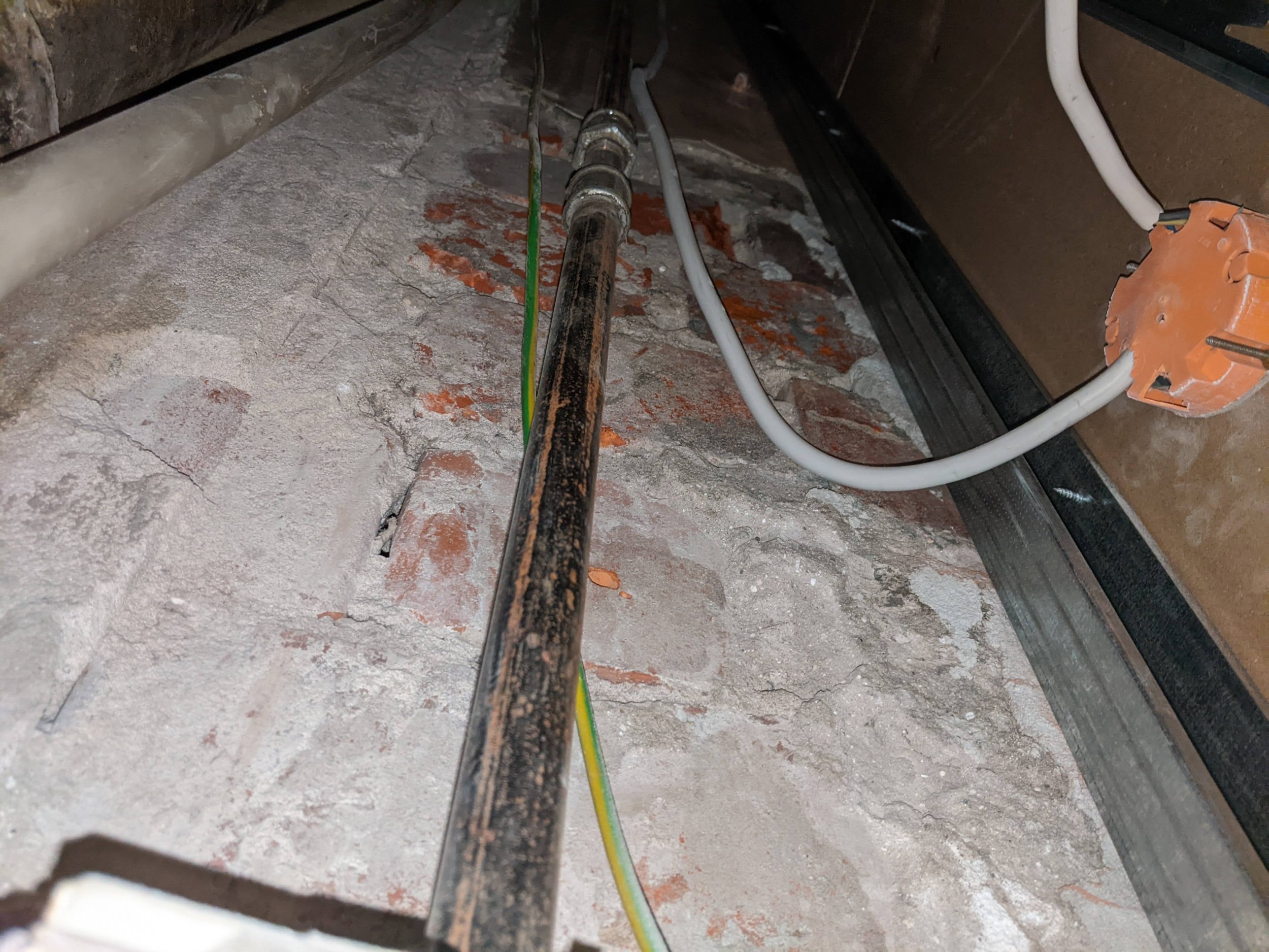 Vannitoa fotol on näha šaht, mille kõrvale väike terasest soojavee radiaator paigaldatakse. Küttetoru on šahtis, aga šahti plaadi saab pealt avada, et ühendused teha. Šahti küljele vaja teha augud radiaatori toru jaoks. Reguleerimise võimalust ei ole vaja.