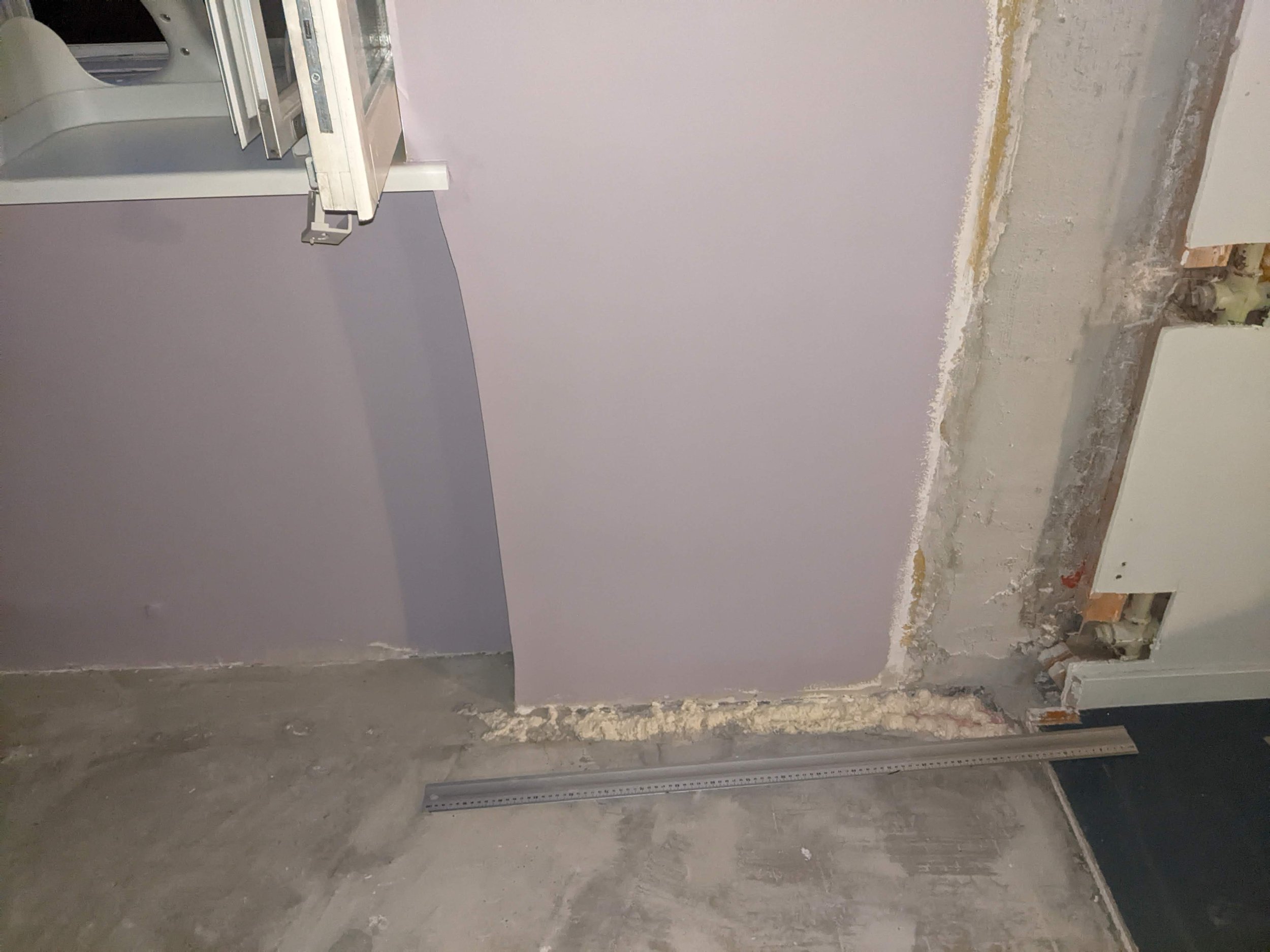Köögis kunagi eemaldatud radiaator. Fotol on näha küttetoru otsad ja süvend akna all, põrandal on mõõduks 1 m pikkune metallist joonlaud. Radiaator on tavaline terasest soojavee radiaator, külje pealt ühendusega. Ostan ise radiaatori koos kanduriga, mõõte ja võimsust veel täpsustan, ülejäänud materjalid on töö tegija poolt. Köögi radiaatorile oleks vaja ka reguleerimise võimalust.