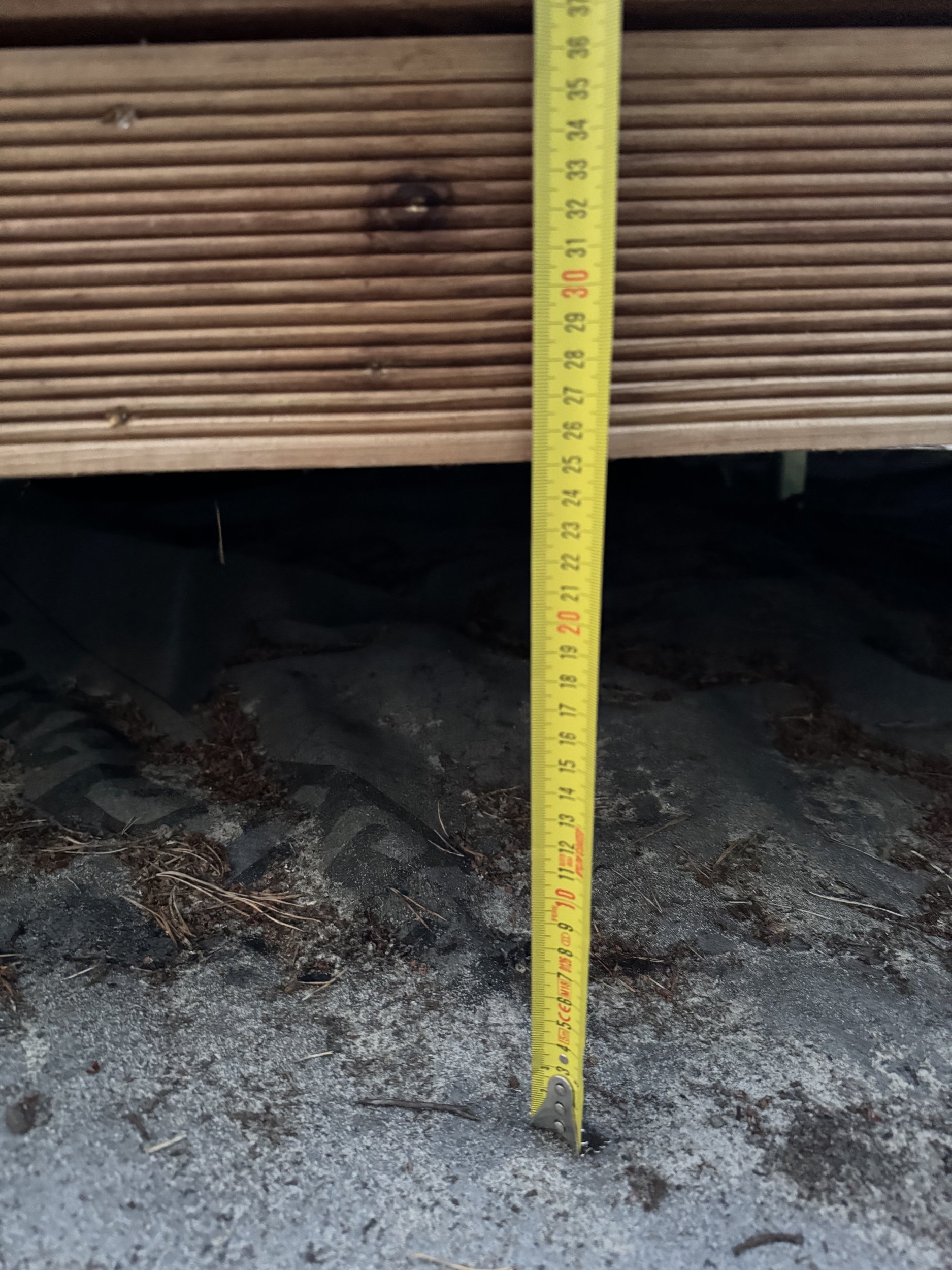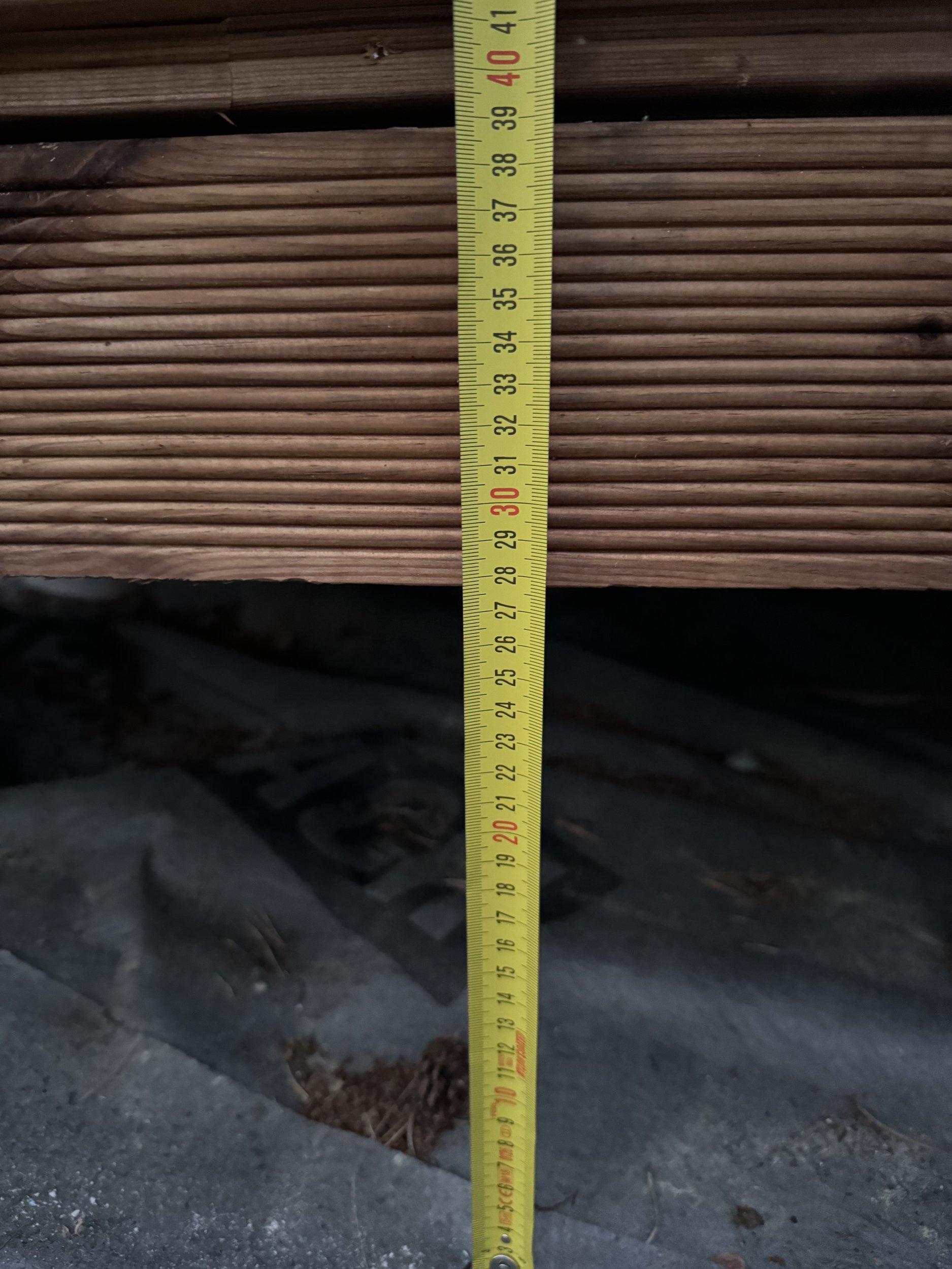 Töö sisu on ehitada olemasolevale terrassile ümber üks aste. Olemas oleva terrassi kõrgus maapinnast on 25-36 cm. Lisaks tuleks kahest küljest terrass maapinnani välja ehitada. Olemasolev terrass on vaiadel. Pakkujal palun välja pakkuda sobiv kuupäev. Eelistatud on lähinädalate jooksul. Mõõdud on joonisel näha. Materjal võiks olla sama nagu olemasolev terrass.