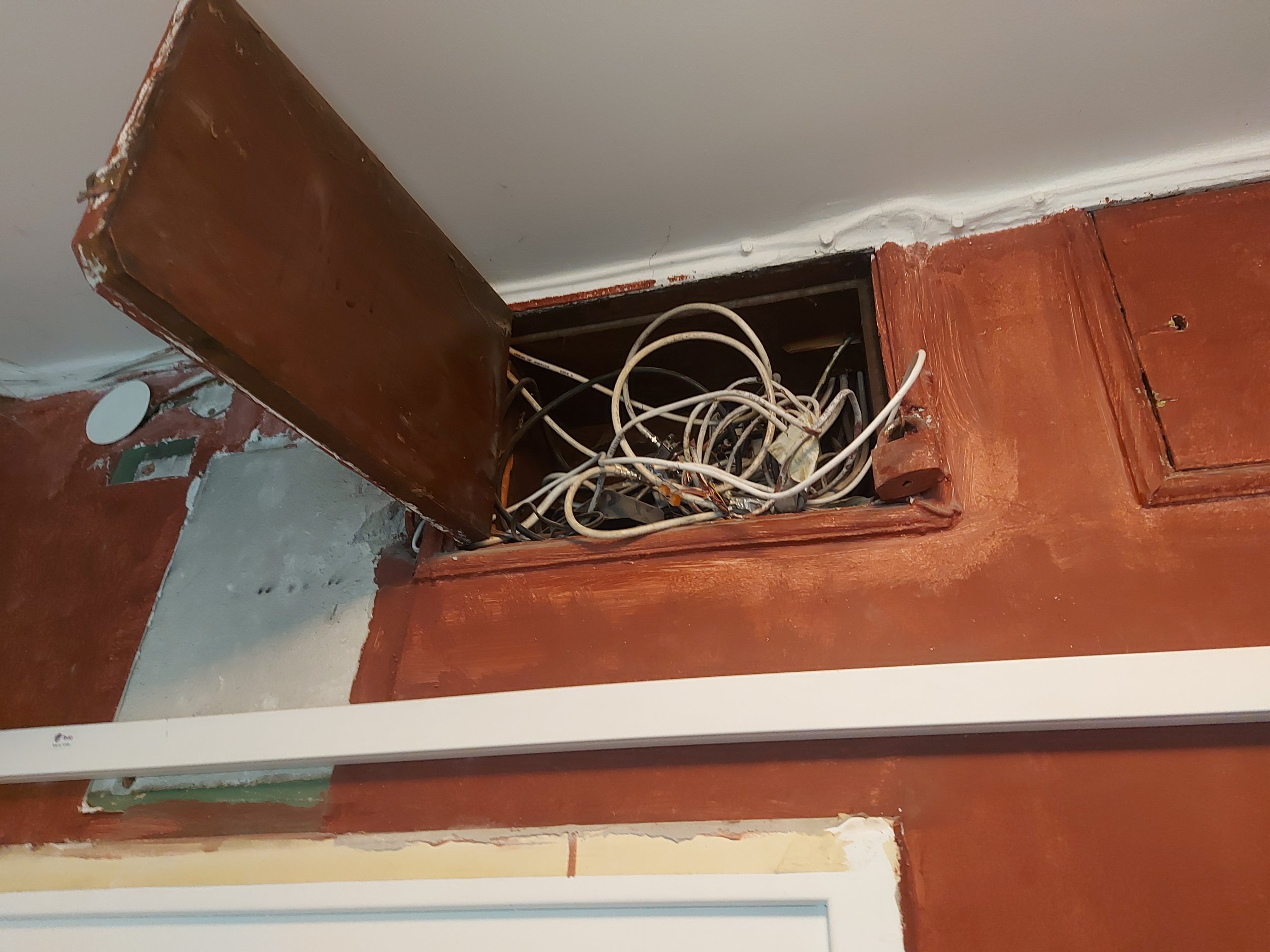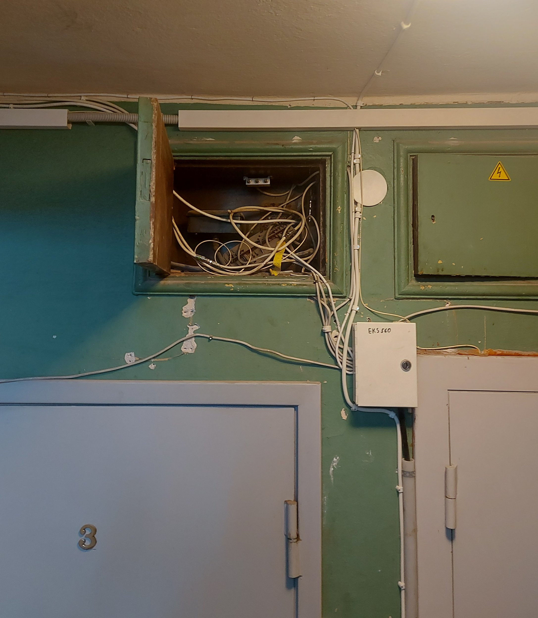 Kahekordse kortermaja trepikojas on vaja eemaldada vanad ja kasutuseta juhtmed, kaablid ja harukarbid.