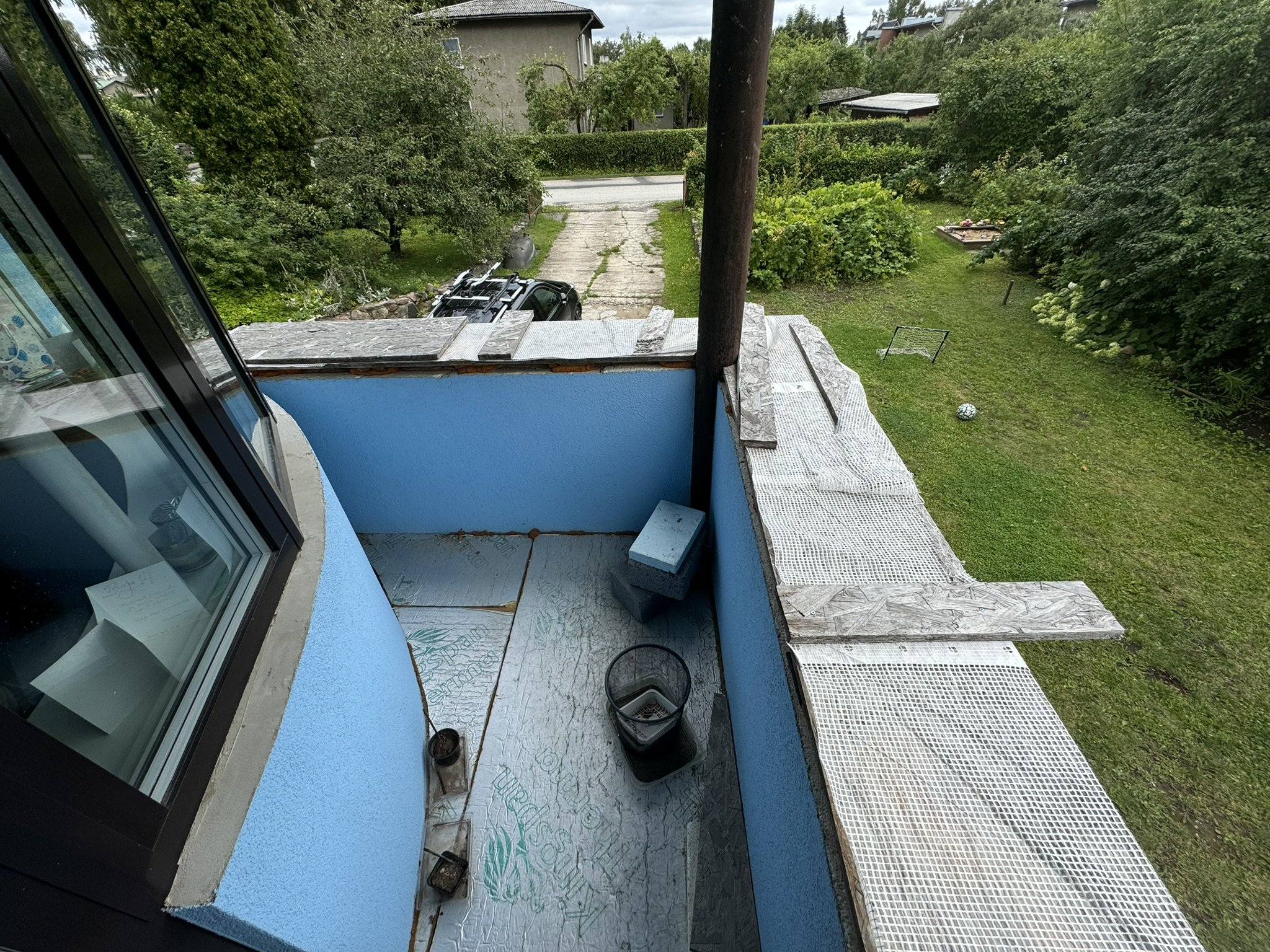Kokku on kolm rõdu, mille piirdemüürid vajavad katmist. Hetkel on seal OSB plaadiga tehtud lahendus, mis tuleb eemaldada ja tekitada korralik alus veekindlast vineerist. Tingimuseks on ka see, et kivi (müür) ja puit ei puutuks omavahel kokku.
