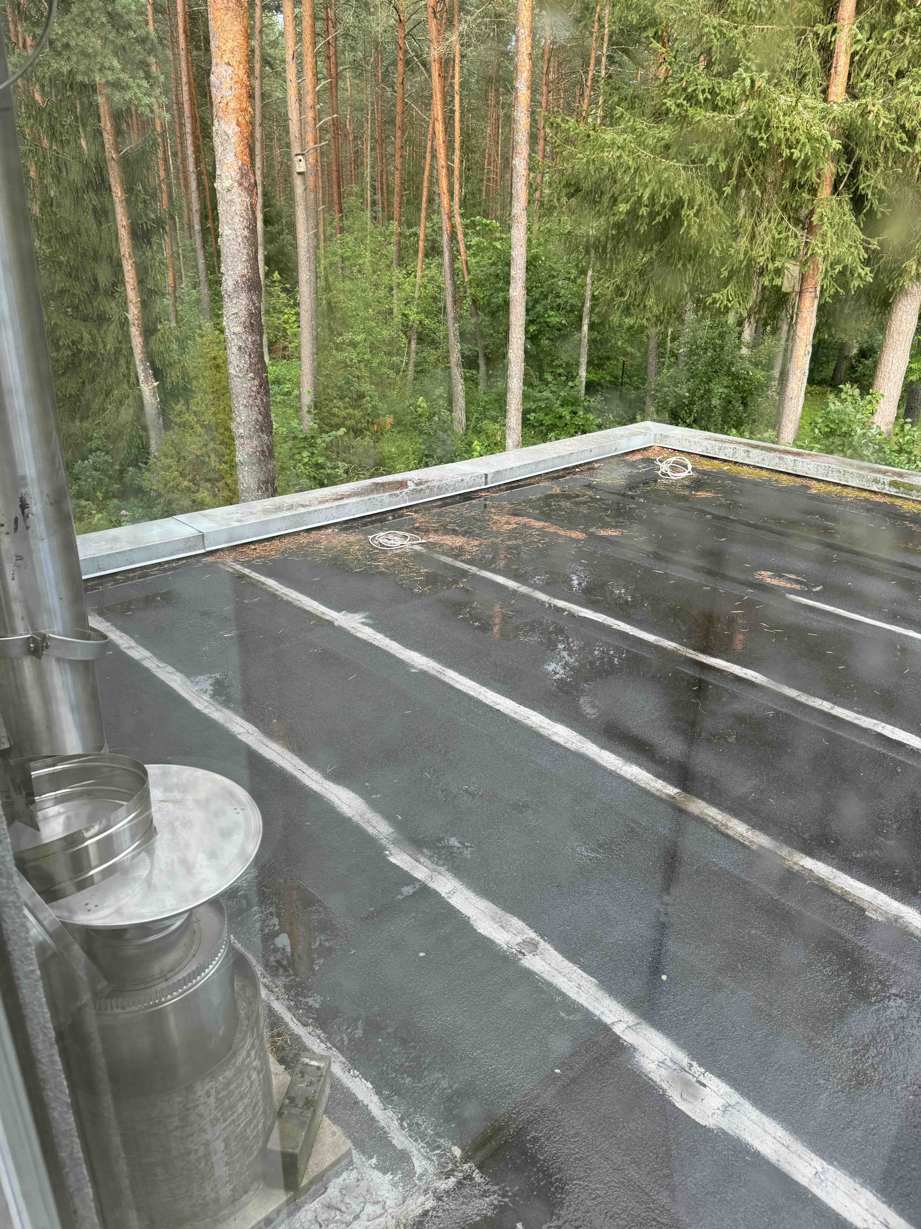 Praegune katuse parapett väga madal, katusepinda kokku ca 115m2 (14m x 8m), kahel tasandil, pildid manuses.