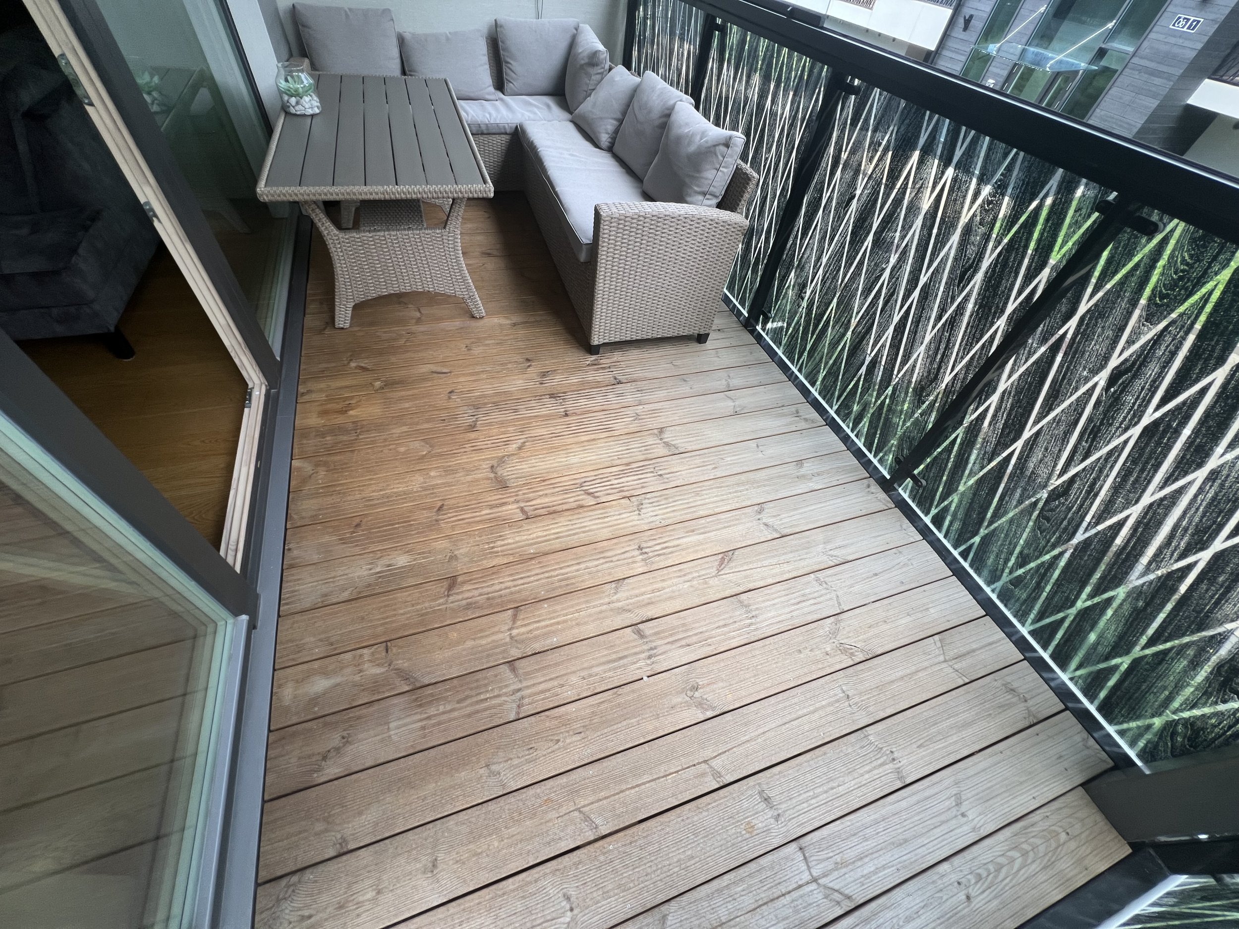 Pildi põhjal tundub olevat 10.5m2 suurune rõdu/ terass ja laudis üsna heas seisus. Pakkumine sisaldab rõdu puhastamist, lihvimist ja õlitamist. Pesu ei tundu olevat vaja, kuid vajadusel teeb ka seda, kuid see selguks kohapeal. Töötlusvahendina soovitaksin Tikkurila Valltti Plus terrassiõli, toon pruun. On näidanud, et on hea UV taluvusega ja püsib hästi peal ega tuhmu kiirelt. Hind sisaldab tööd, terrassiõli kui ka kõiki töövahendeid. Lugupidamisega ja edu soovides, Andrus |