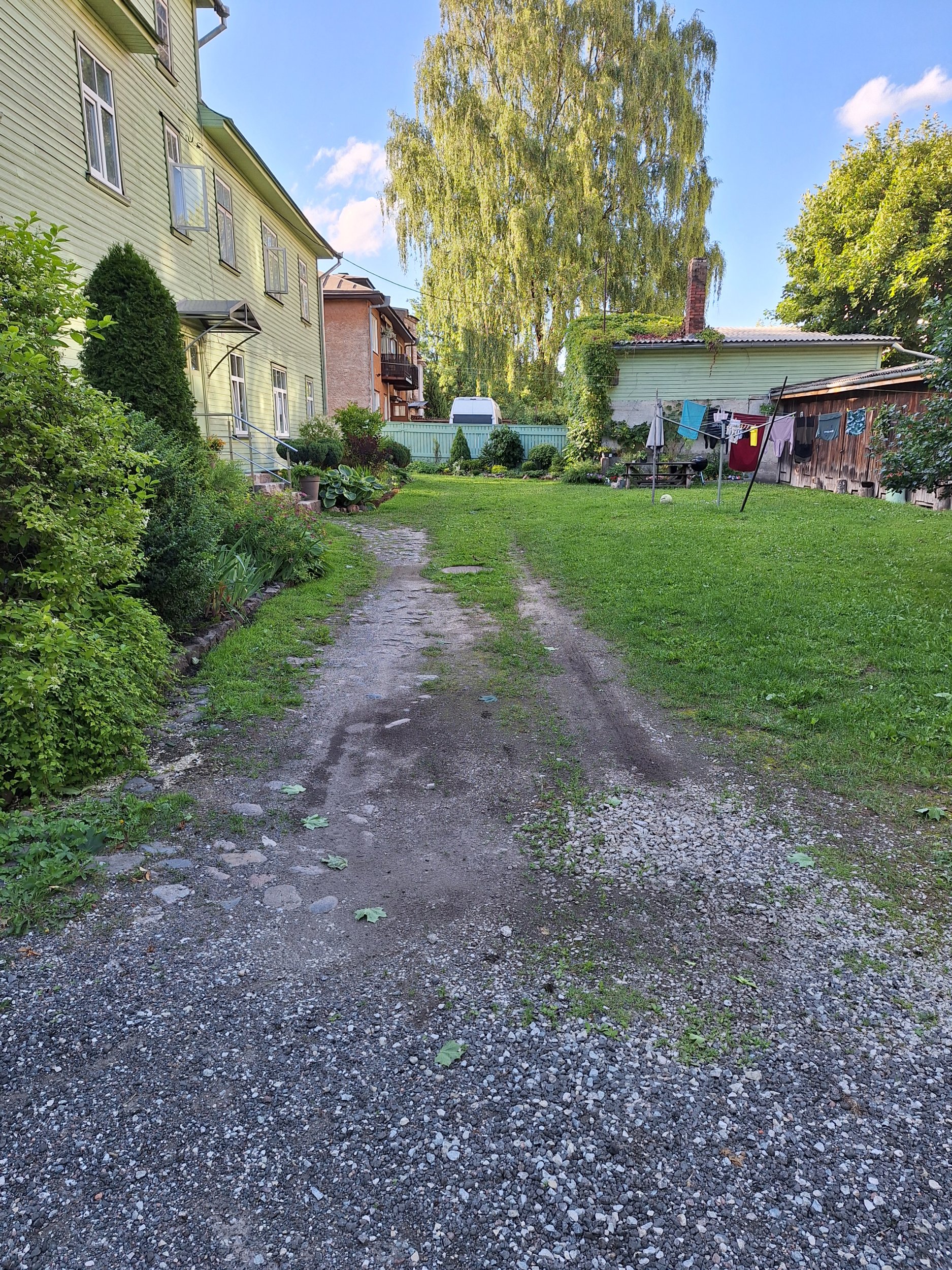 Aluspind on ära vajunud ning hetkel koguneb sinna vesi. Seda peaks nii palju tõstma, et tagatud oleks vee ära valgumine majast eemale muruplatsile. Samuti jääb ala sisse üks kanalisatsioonikaev. Vajadusel tuleks ka seda tõsta. Aluspinna sees on munakivid, mis on aastatega sinna ära vajunud.