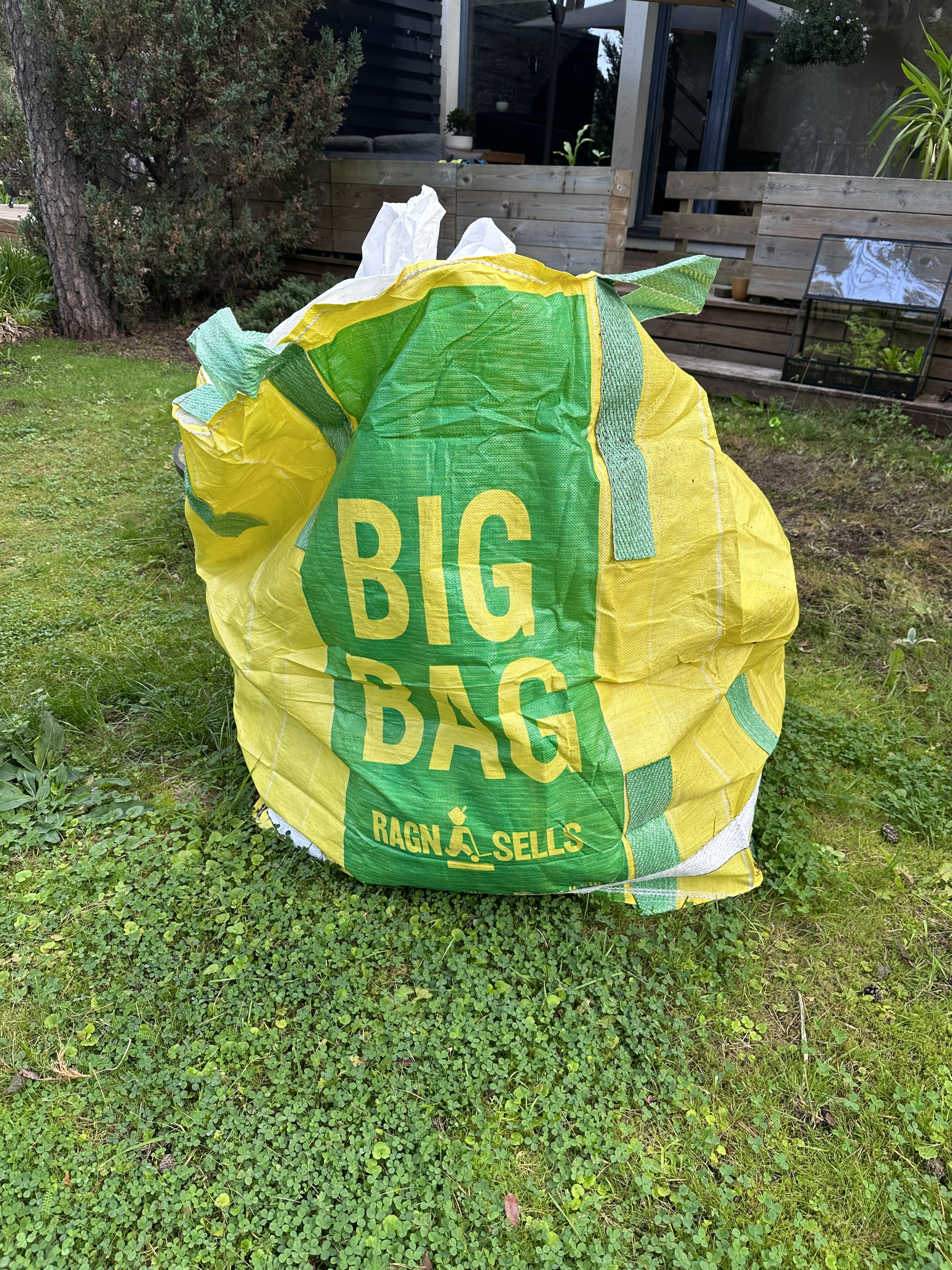 Kotis on vaid aiajäätmed (peenarde üleskaevamisel tekkinud biolagunev kraam). Kott on raske; paras kahel tugevamal inimesel käru peale või kaubikusse lohistada. Vajadusel võin tänavale lohistada selle.
