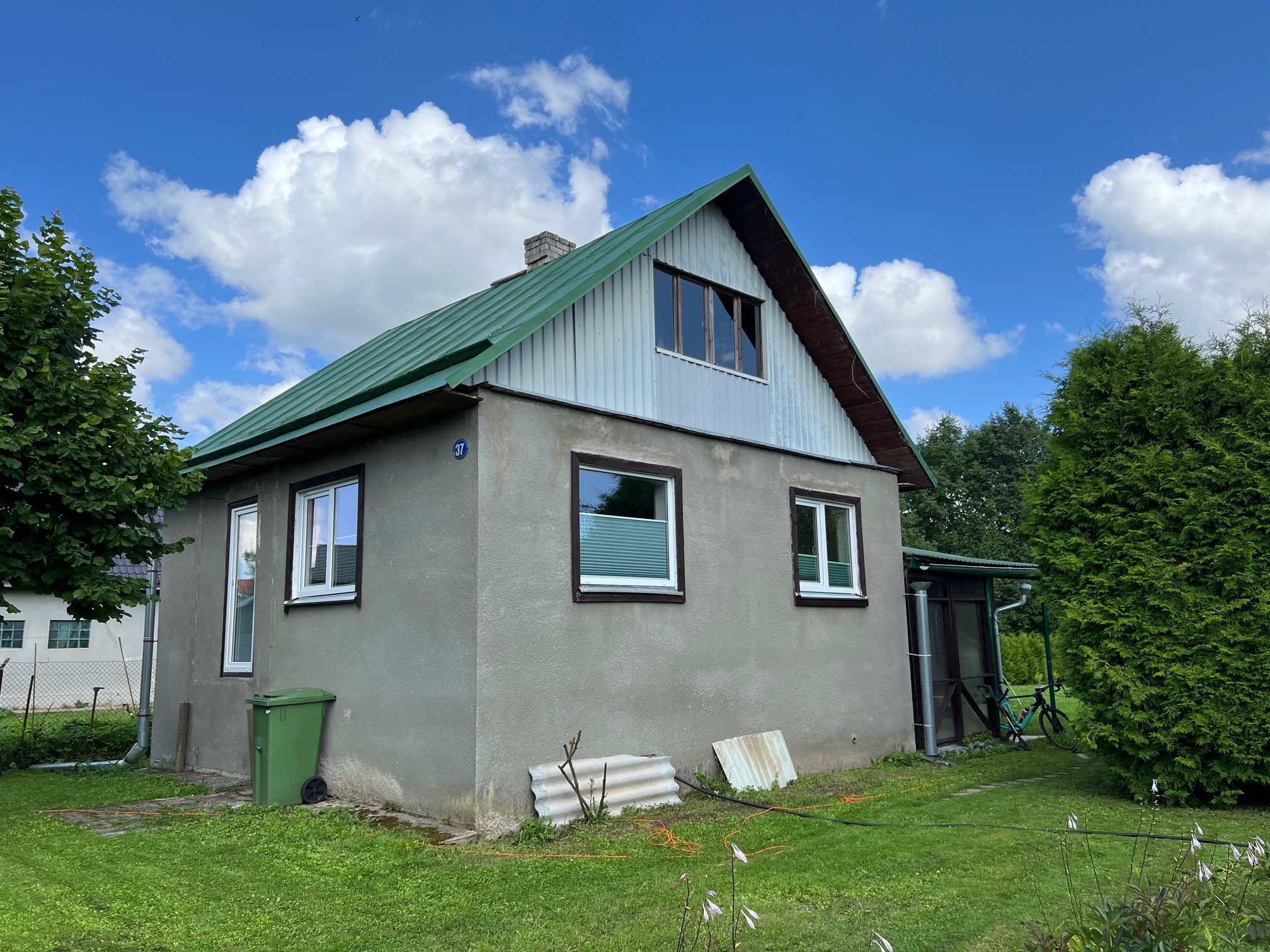 Vana katusematerjali eemaldamine. Roovitus, tuuleliistud ja rihtimine. Aluskatte paigaldus. Katuspleki paigaldus. Harja- ja ääreplekkide paigaldus, korstnaplekid, redel korstna pühkimiseks. Vihmaveesüsteemi paigaldamine, tuulekastid. 1 katuseaken ja paigaldus.