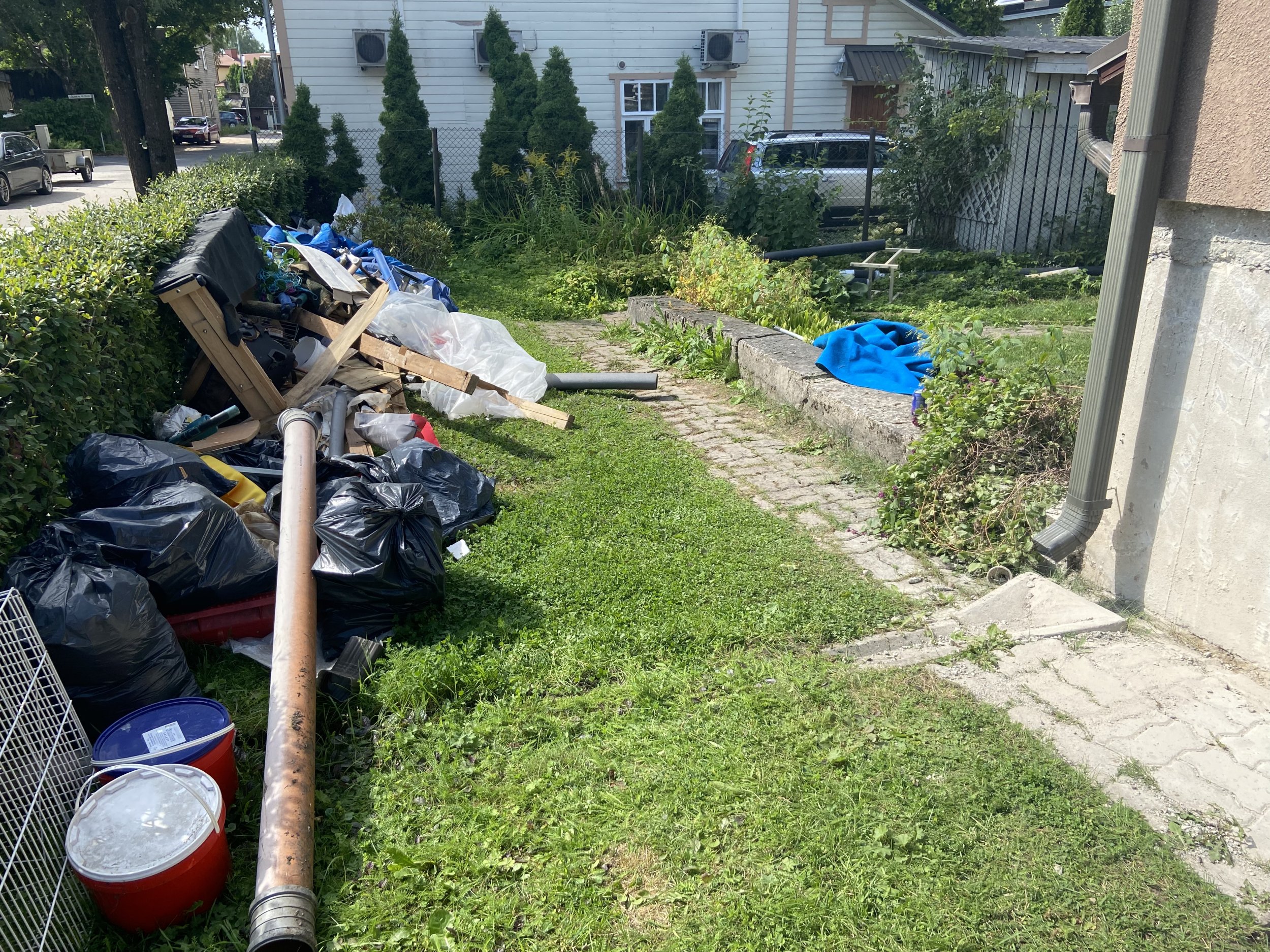 Mõlemale maja küljele tuleb sissesõit koos parkimisega, vasakul pool tuleb hekk välja kaevata sissesõidu jaoks
