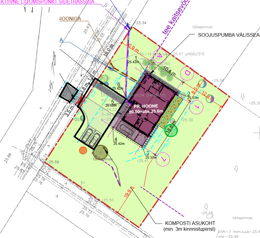 Märgitud joonisel musta joonega kohad kuhu kivi läheb. Maja esine osa ja siis kõnnitee ja tänava vaheline osa.
