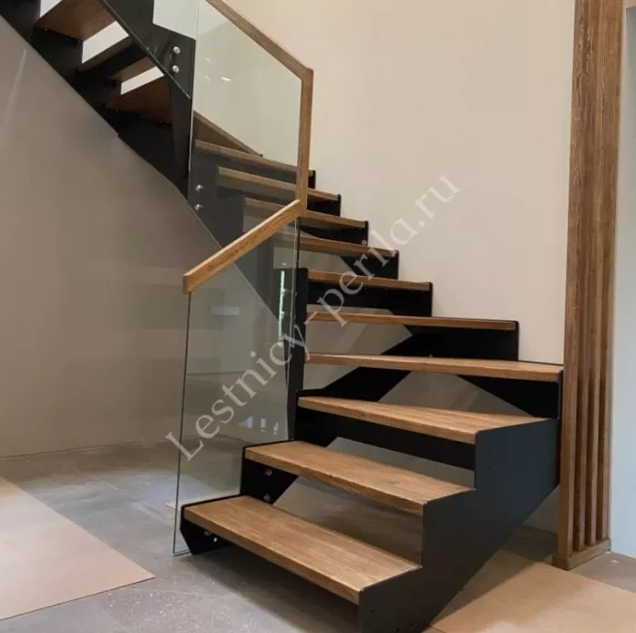 Trepp on kaetud puiduga. Valge tamm, lakk.