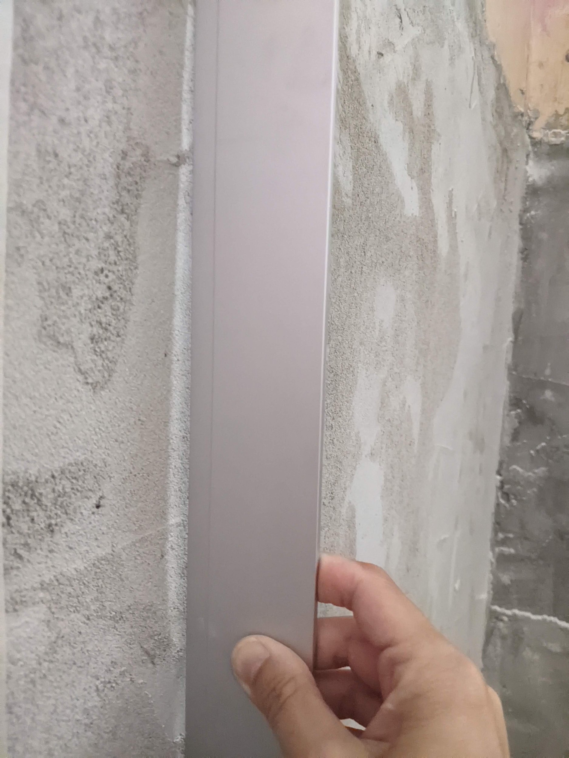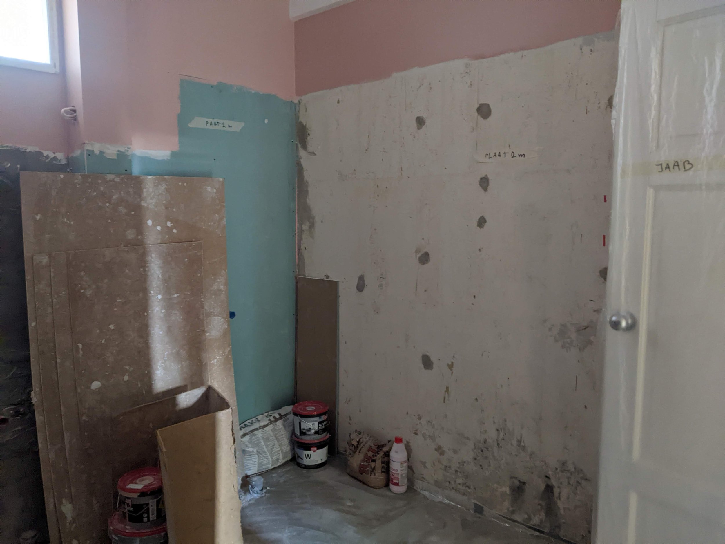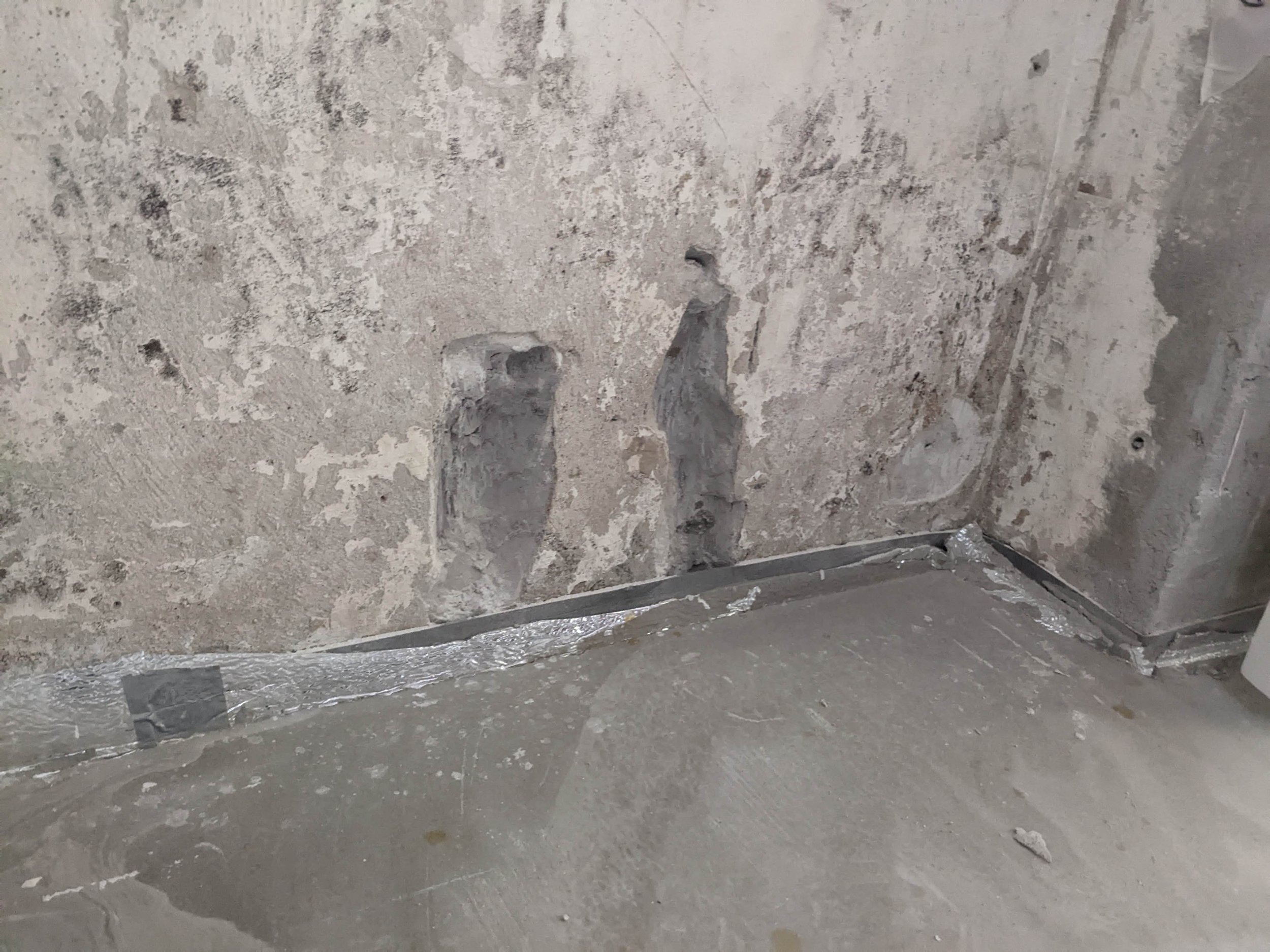 Seinte alumine osa on vaja tasandada ja plaatida. Duši ja vanni juures plaatimise kõrgus 2 m, mujal 1m põranda pinnast. Võib arvestada, et keskmiselt 1,5 m on plaatimise kõrgust. Osaliselt kipsist sein, osaliselt krohvitud sein, valge sein on üsna sile, krohvitud sein lainetab. Vannitoal on nurkasid ja 2 šahti. Ühe koha peal on seinas kõrgem koht, mis oleks vaja maha võtta, muhu pindala 10x70 cm umbes, muhu enda kõrgus on kuni 1 cm. Hüdroisolatsioon plaatide alla