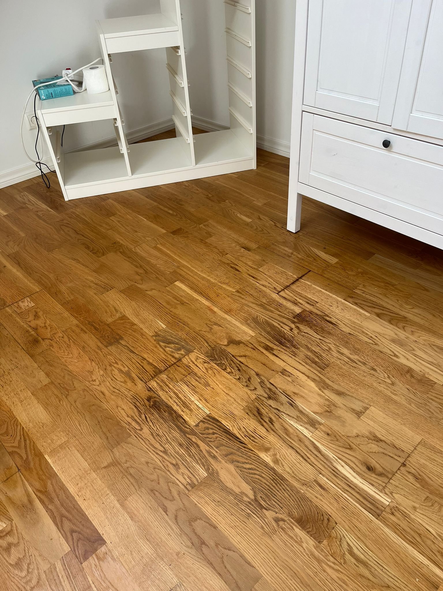 Pakkumise kirjeldus: Tänan küsimustele vastamast. Teen pakkumise konsultatsioonile. Kui põrand oli lakitud, kuid puidukiu sees on tumedad kohad/kahjustused, siis järelikult on reostus pääsenud lakikihist siiski läbi. |