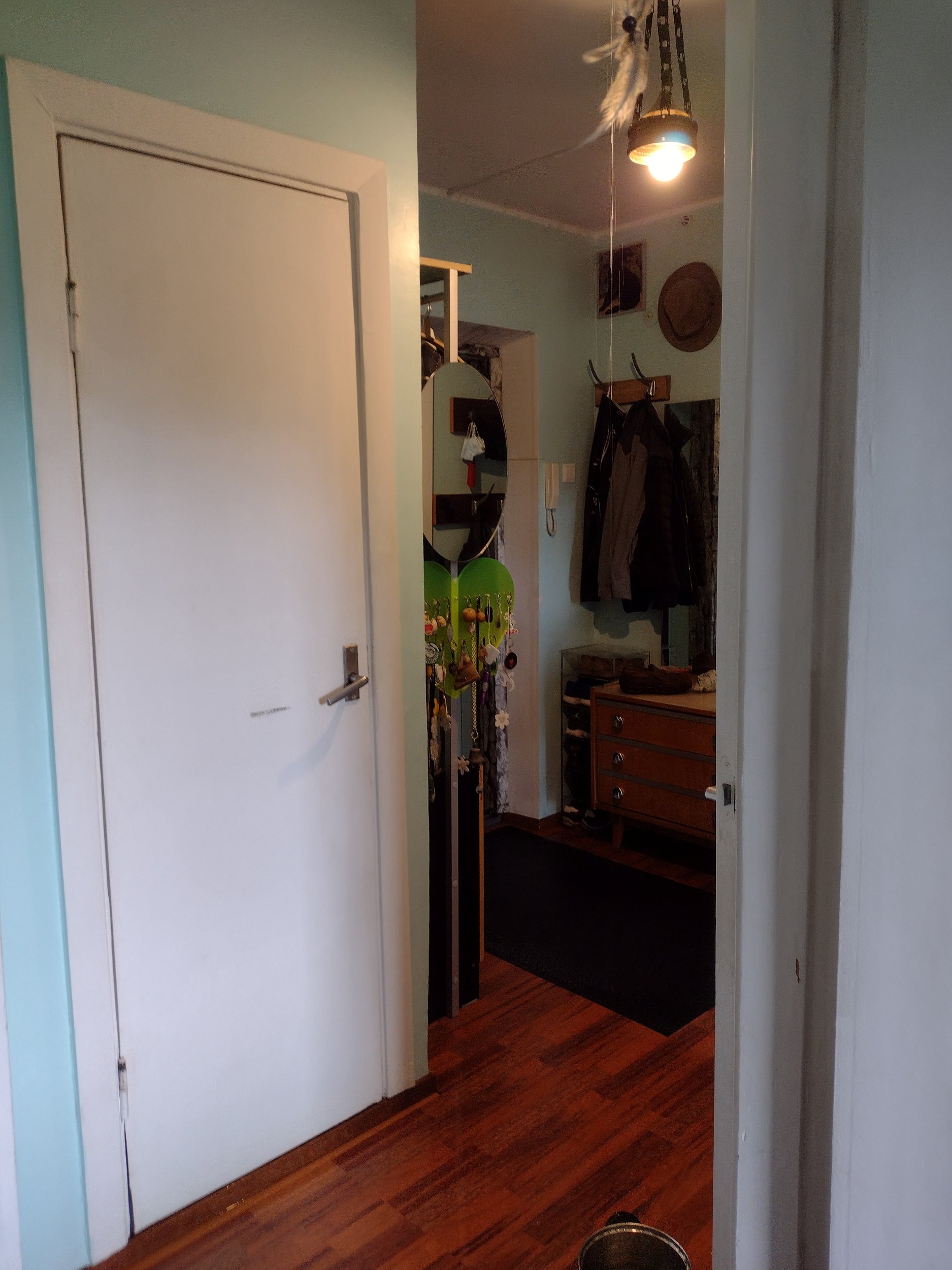 Esik sai veekahjustusi, lagi pahteldada, värvida, seinad vaja värvida helesinist tooni värviga, eelnevalt mõnest kohast vaja pahteldada enne. Parkettpõrand vaja vahetada keskmise hinnaga laminaatparketiga ja põrandaliistud paigaldada.