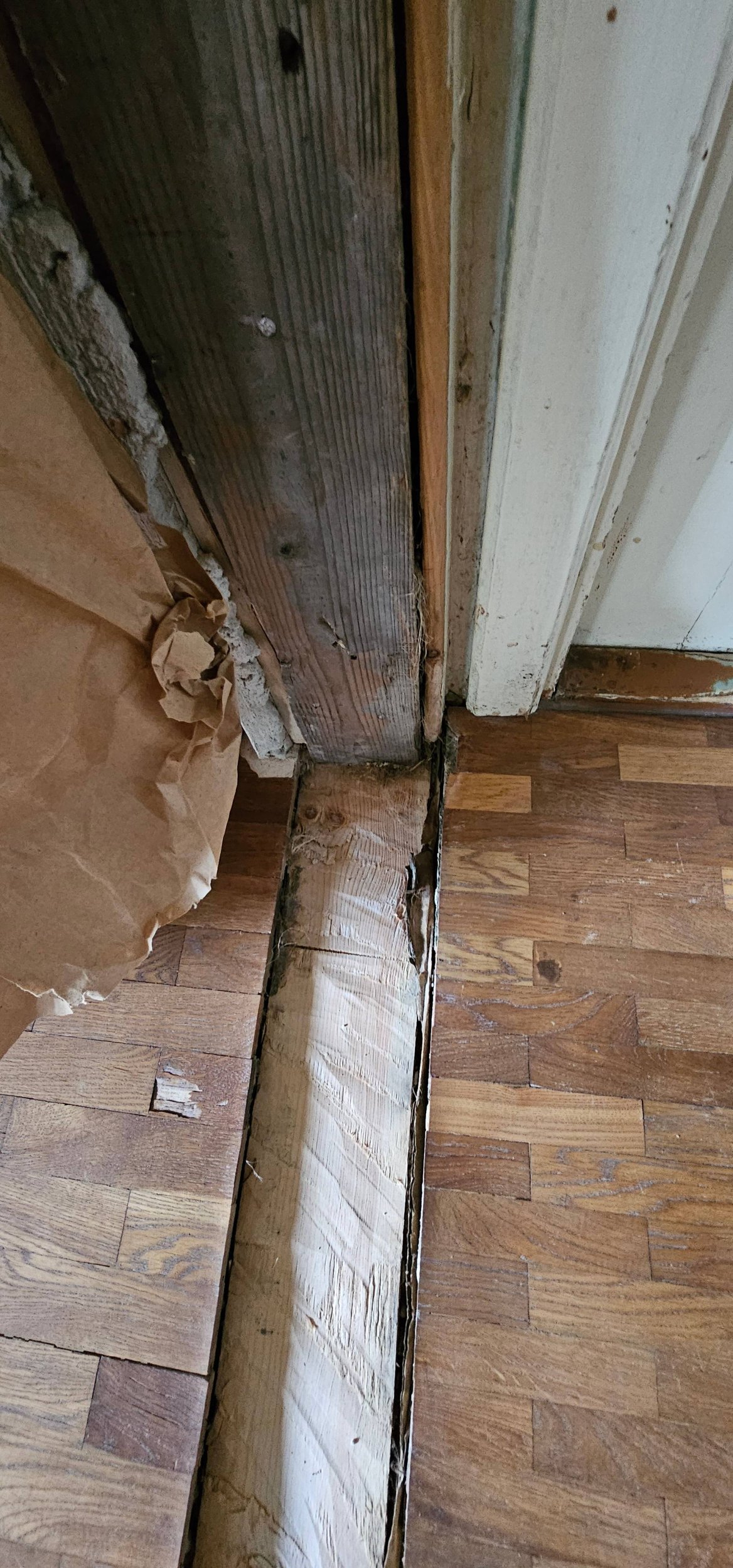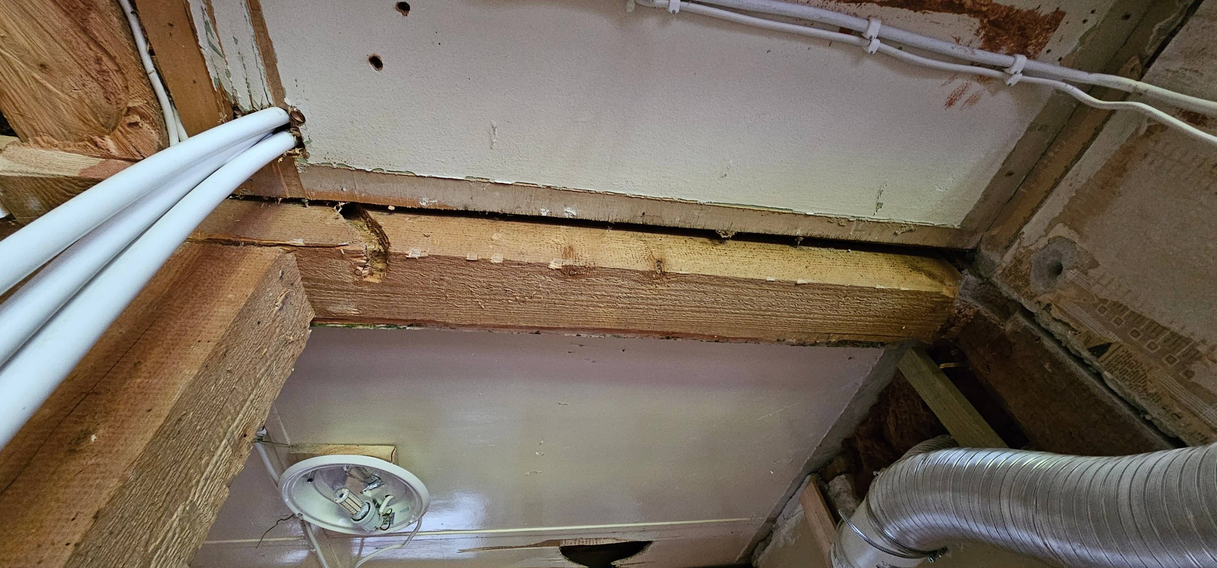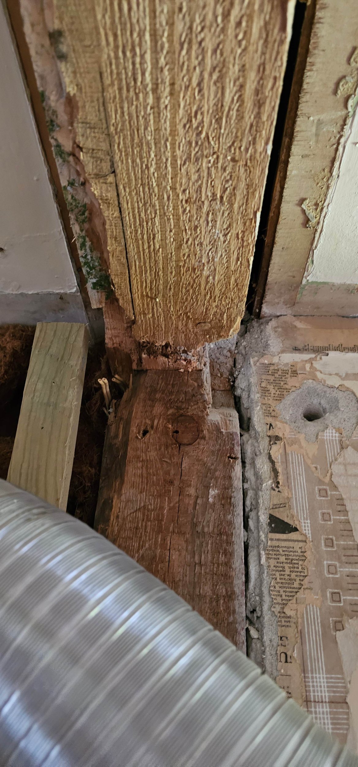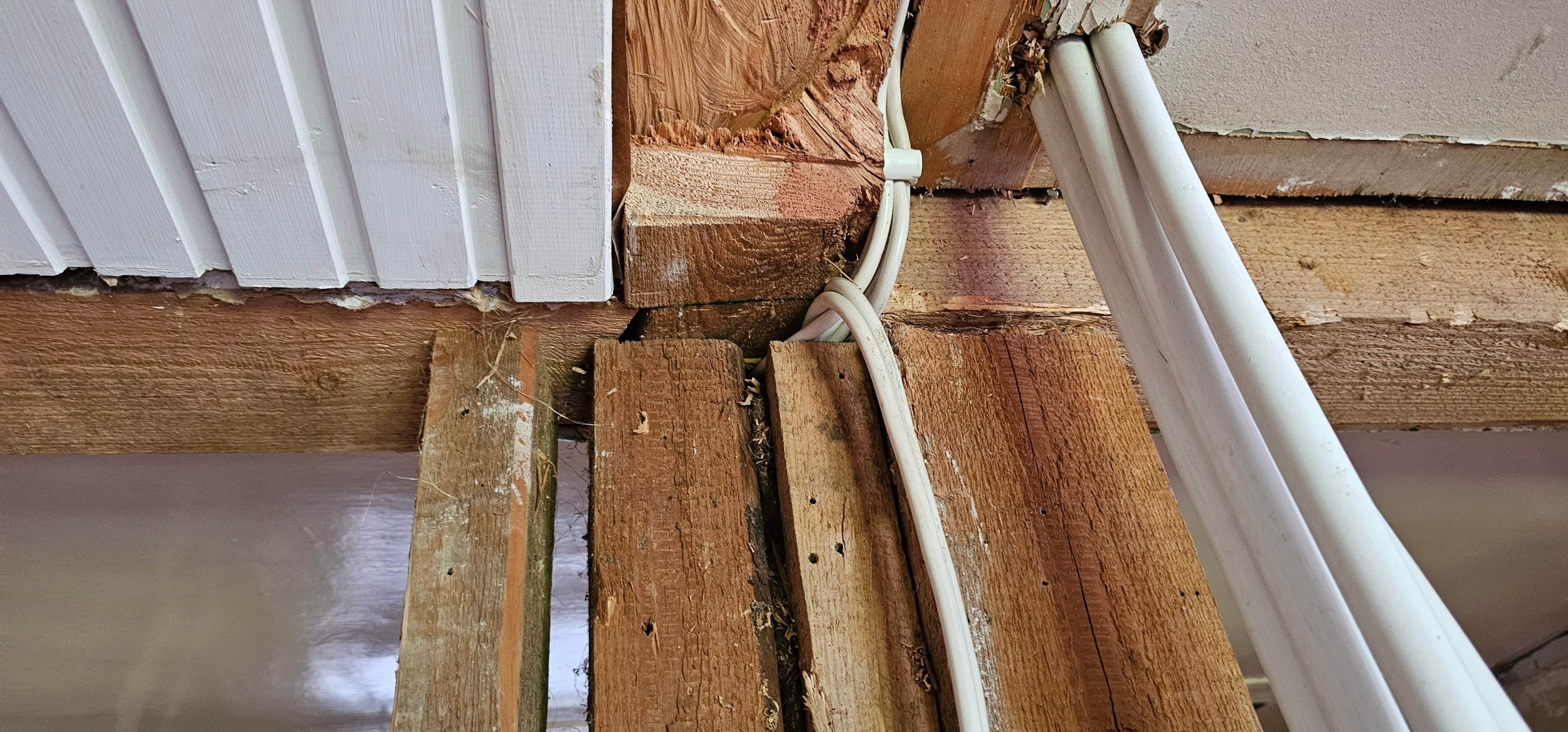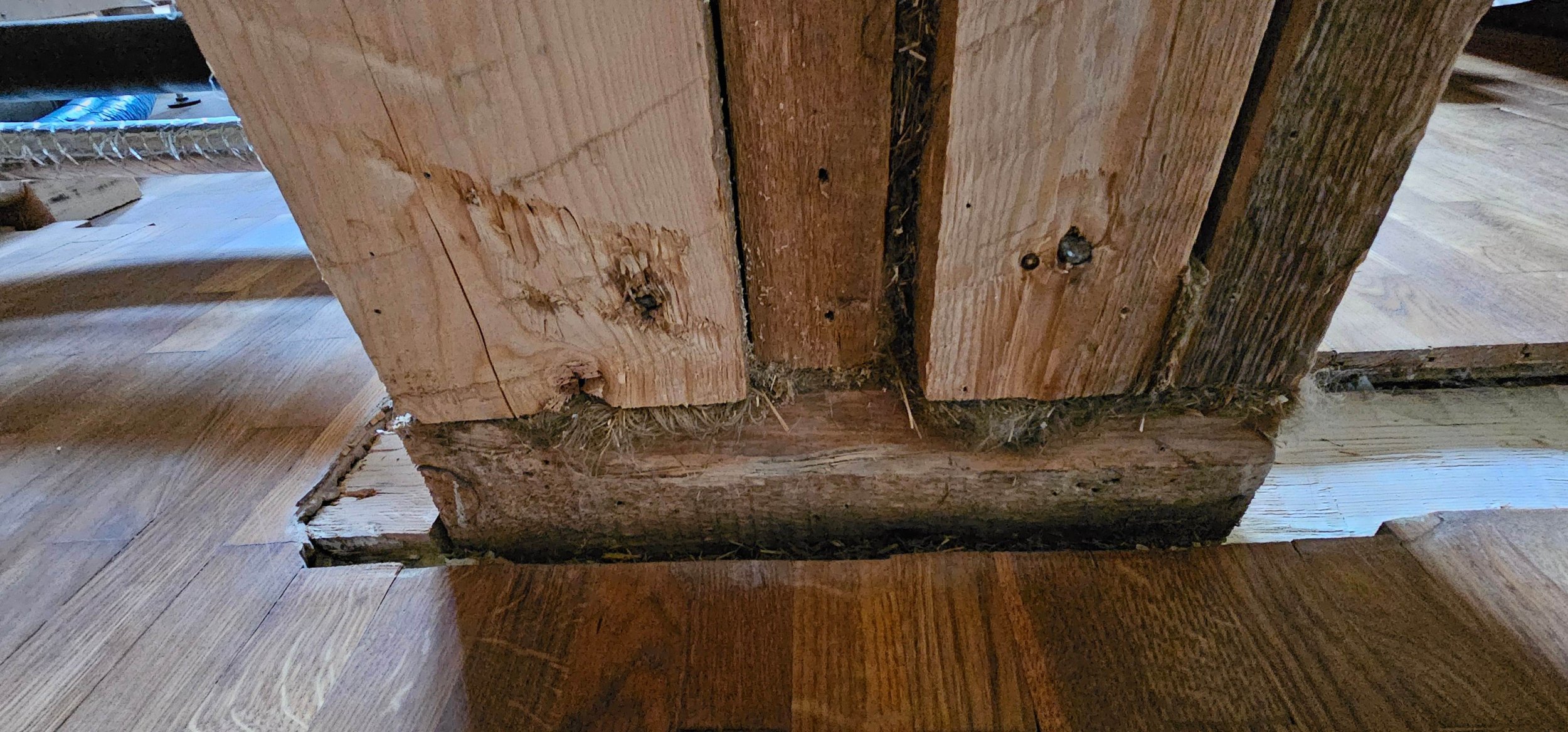 Puitmaja teise, väljaehitatud korruse põrandatalale on tehtud sisselõige (nõrgestatud koht), millesse jookseb esimese korruse kunagise vaheseina kohalt risti veel üks tala ja liitub T-kujuliselt põhitalaga. Seetõttu on tugiposti täiendatud ja koosneb kolmest erinevast postist. Soov oleks saada see kombineeritud tugiposti süsteem peamise tala seinte äärtele, uutele toetuvatele lisapostidele. Lahenduseks terasest I- või H-profiilidega tugevdus olemasoleva T-liitumisega tugitala alla, uute postide toetus vundamendile koos külmasilla isoleerimise ja soojustuse tihendamisega vundamendile toetuskohtades.