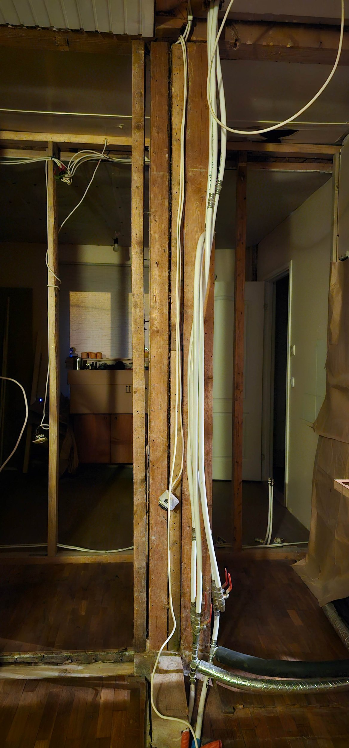 Majas elatakse alaliselt sees, see on tööd tehes raskendav asjaolu. Torustikus on survevesi, kanalisatsiooni saab ajutiselt lahti ühendada, samuti saab eemaldada juhtmestiku, mis segab.
