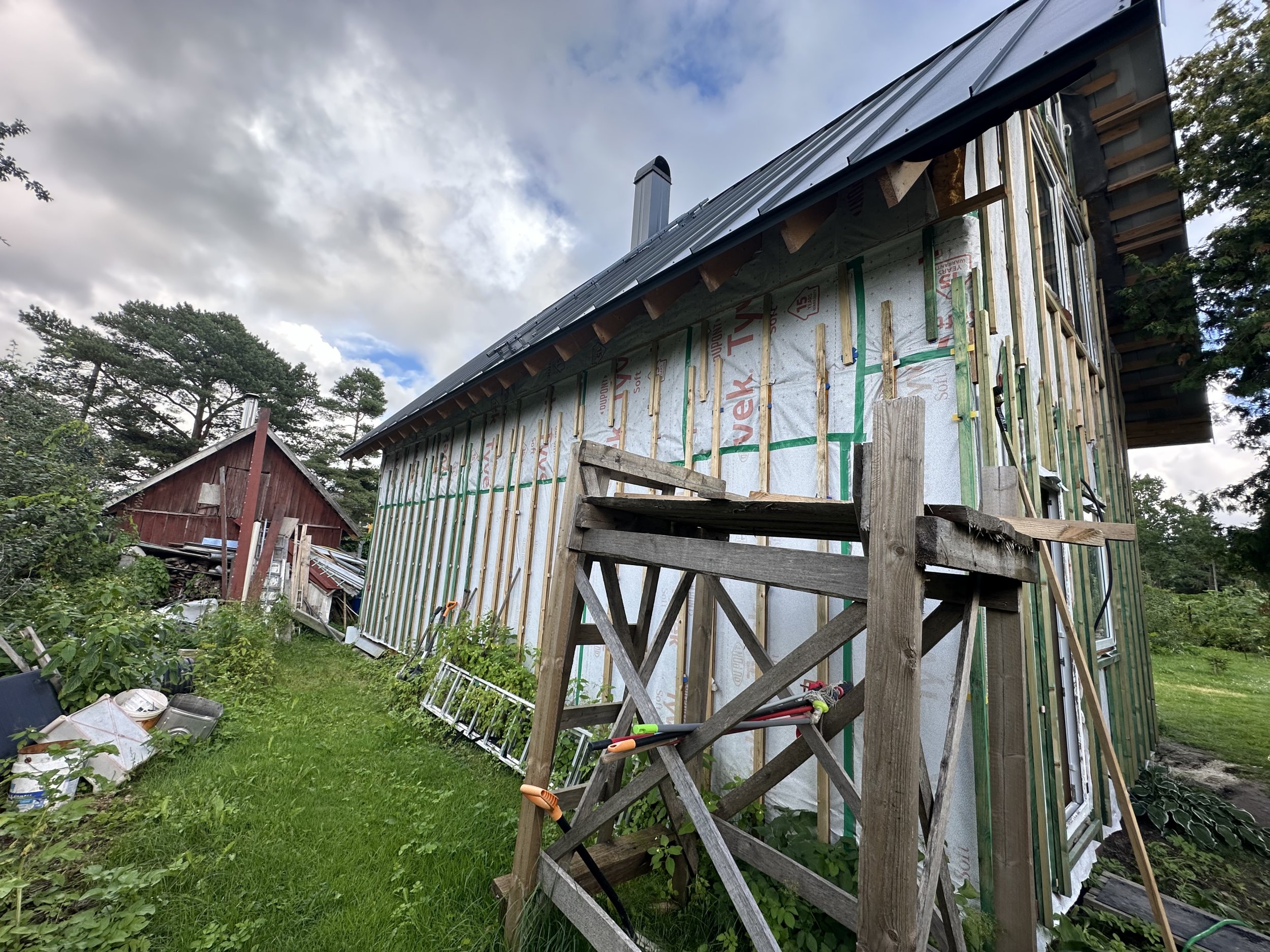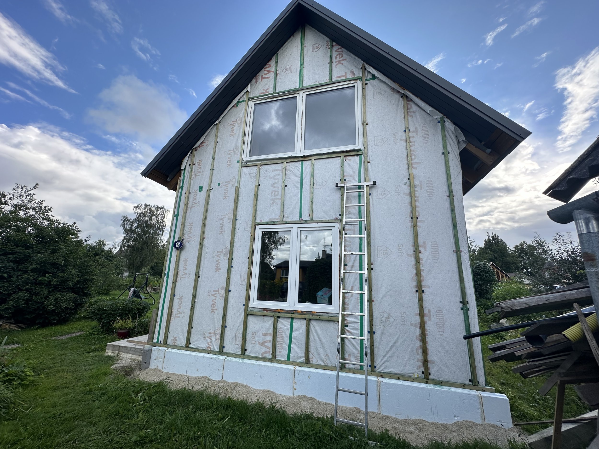 Maja tagakülge (ilma akendeta sein) pole vaja fassaadiga katta. Fasaadi paigaldamiseks on kiudtsemendist voodrilauad. Osaliselt tuleb juurde ehitada ka vastav roovitus.
