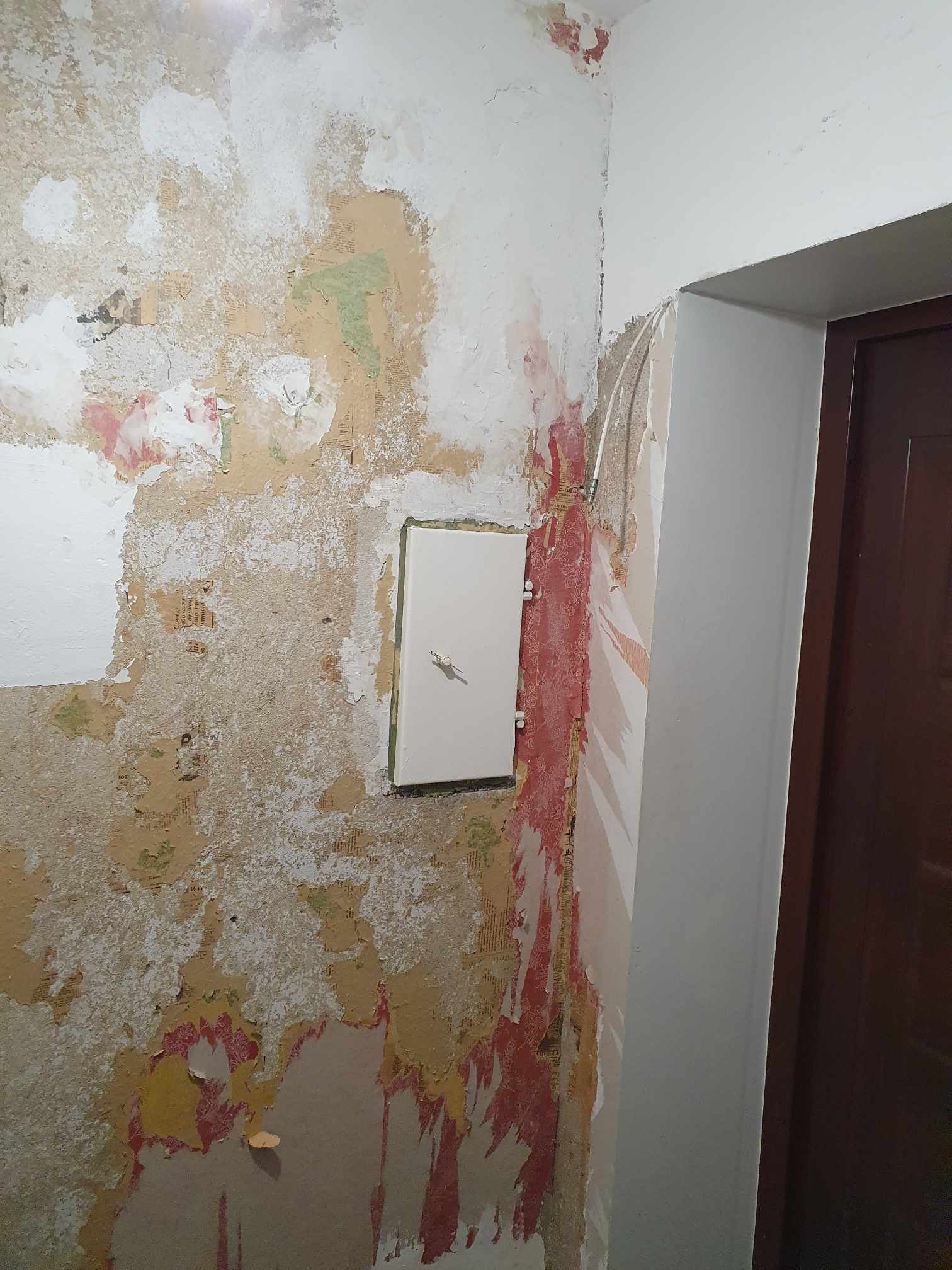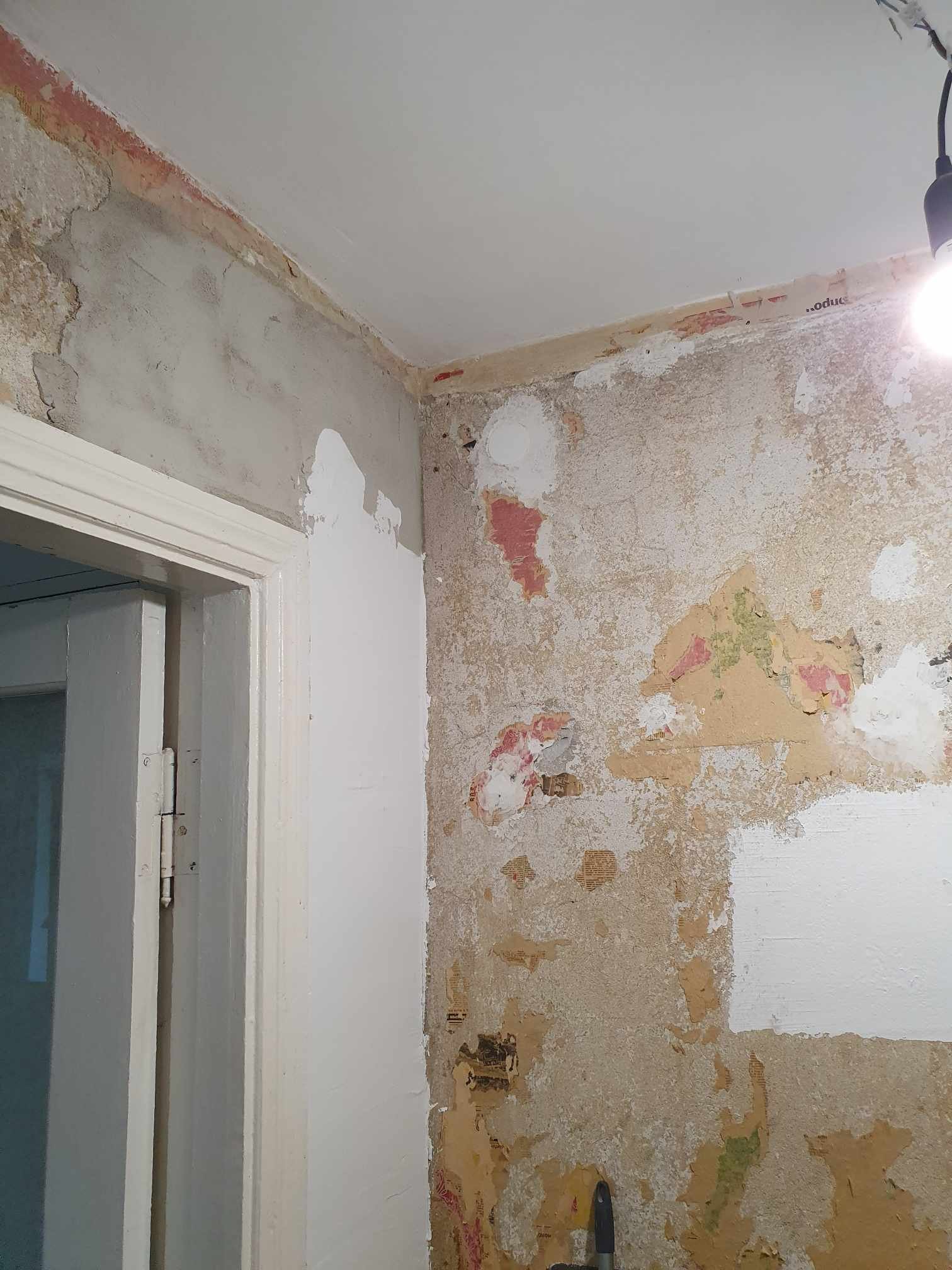 - esik. Pahteldada seinad ja lagi (põrand: 1,30X1,62 kõrgus: 2,47. Kolmes seinas on uks, Seintelt eemaldatud vana tapeet.