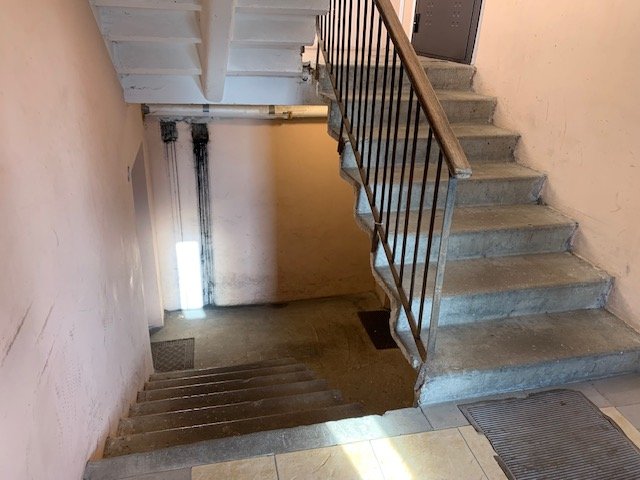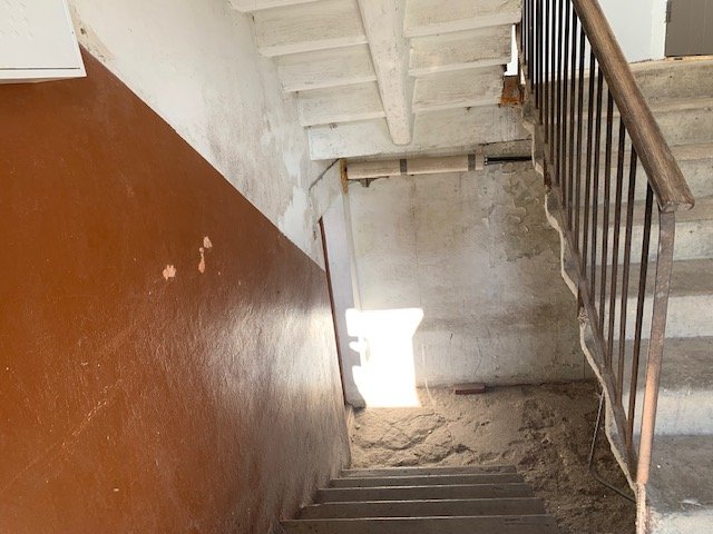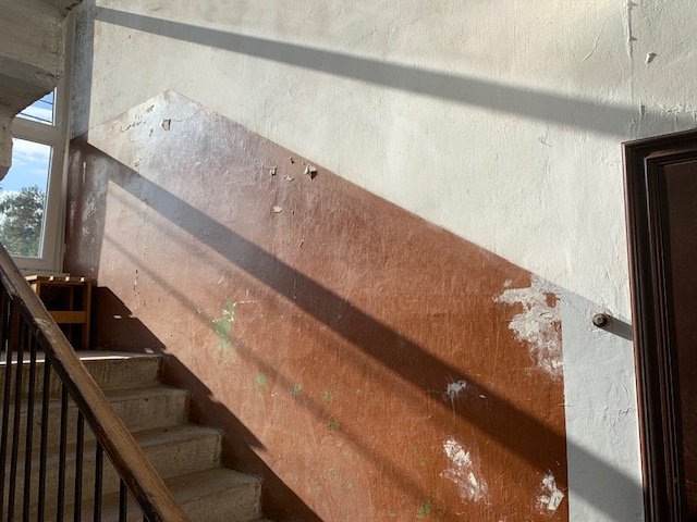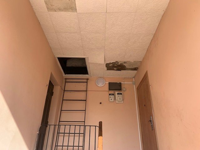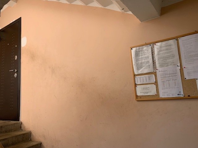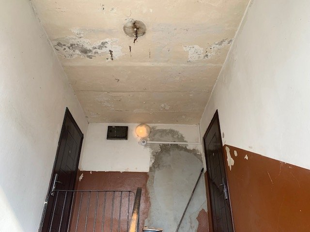Kortermajas on kaks korrust ja kolm trepikoda. Ühe trepikoja pind, mis vajab remonti (seinad , lagi, trepi alused) on kuni 200 m2, seega kokku umbes 600m2. Eemaldad tuleks lahtine värv, vajalik pahteldus ja värvimine. Ühe trepikoja laest on vaja eemaldad penoplastist laeplaadid.