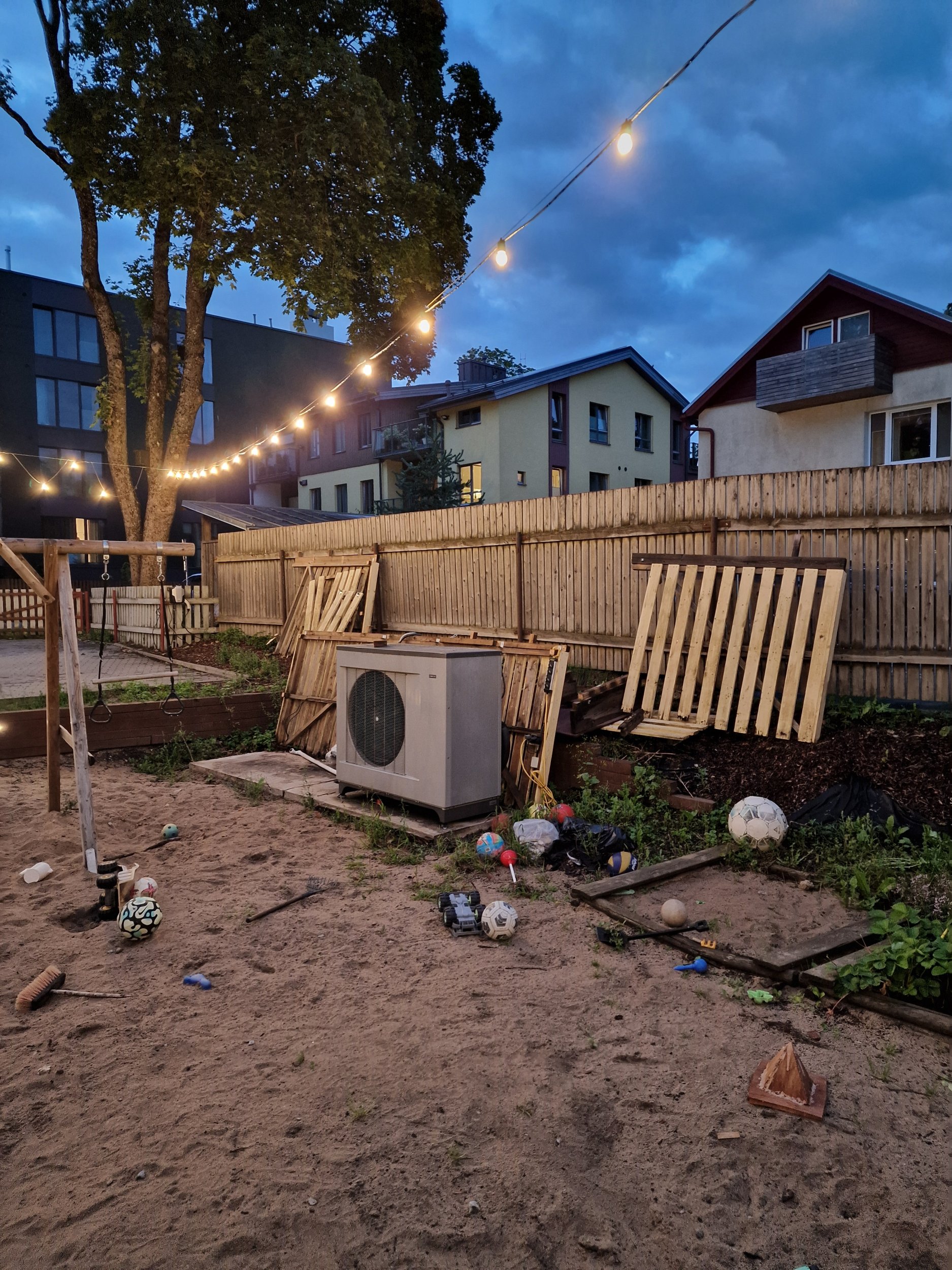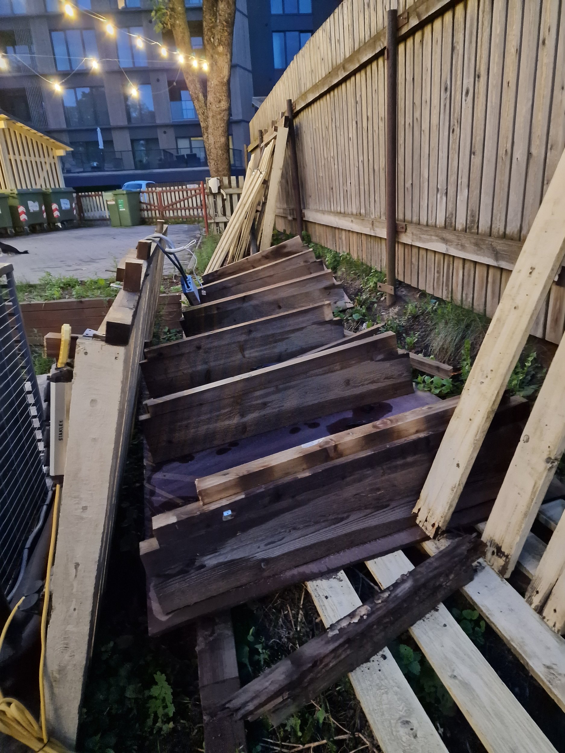 Vaja on lammutada ja utiliseerida pildil olev puitkonstruktsioon. Töö on juba osaliselt teostatud.