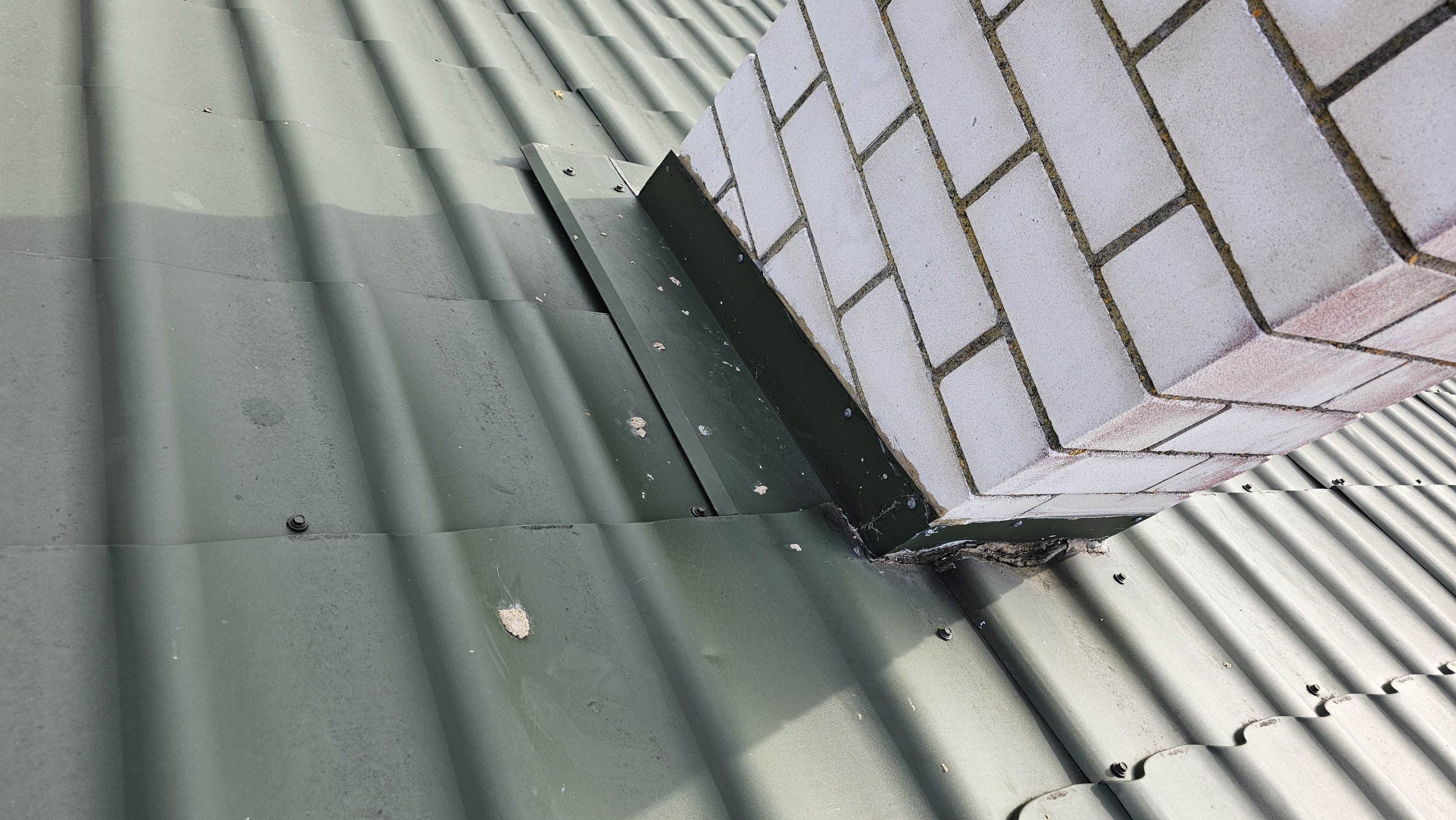 Korstna ja pleki vahele on jäänud liiga palju ruumi. Teatud nurga alt sajab suure tuule tõttu vihmavesi sisse. Enne kõvemaid sügisilmasid on vaja töö ära teha. Tõenäoliselt on plekk vaja lahti võtta, juurde lõigata ja uuesti kinnitada. Korsten ja katus on heas korras.
