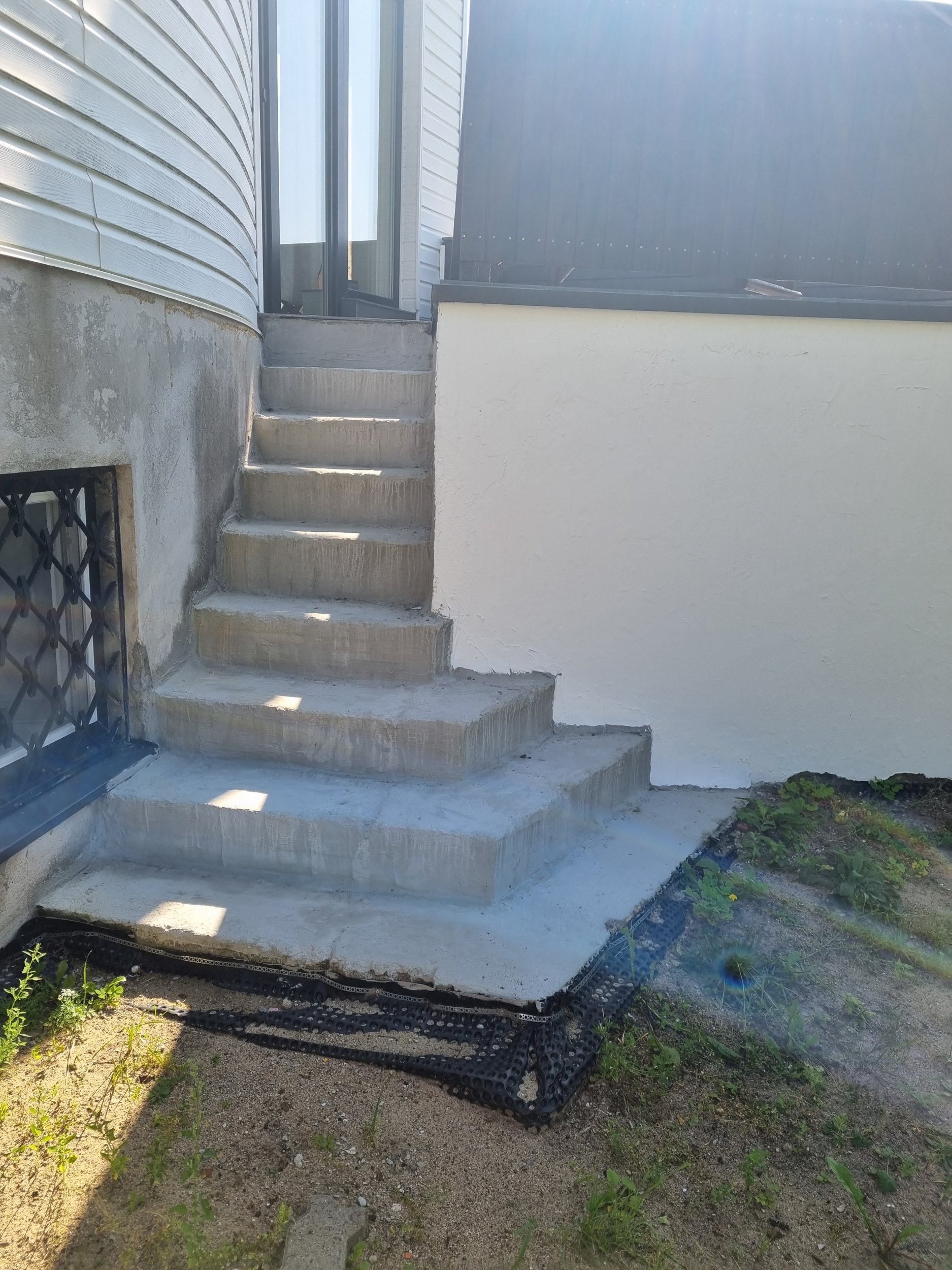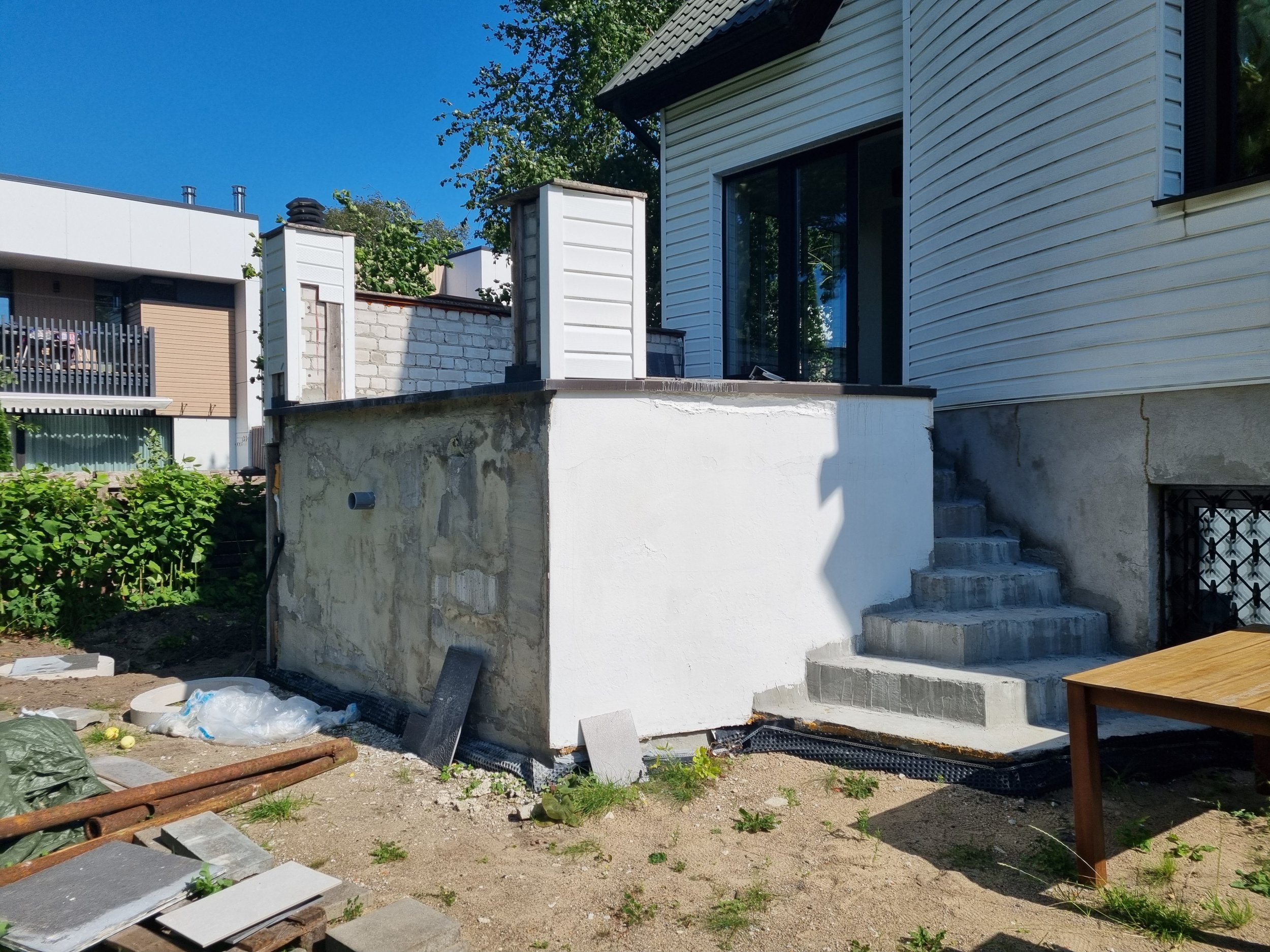 Mõlemad terrassid: trepi astmete ühtlaseks tegemine (hetkel erineva kõrgusega) ja viimistlemine; terrasside alla jäävate seinte viimistlemine, krohvimine.