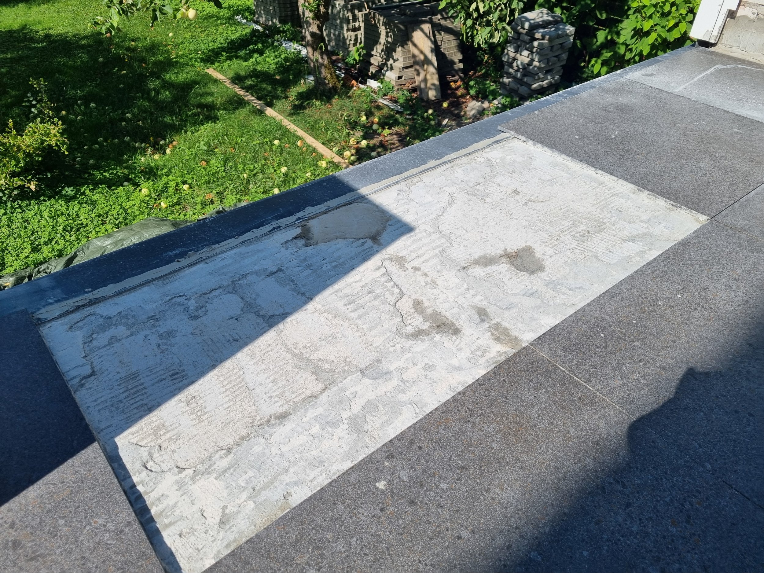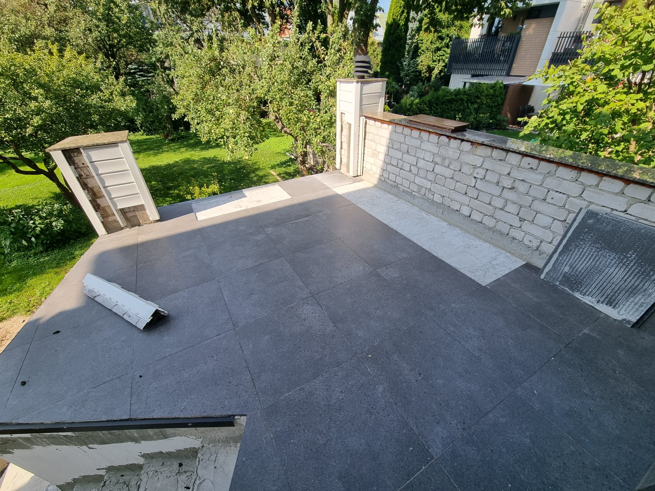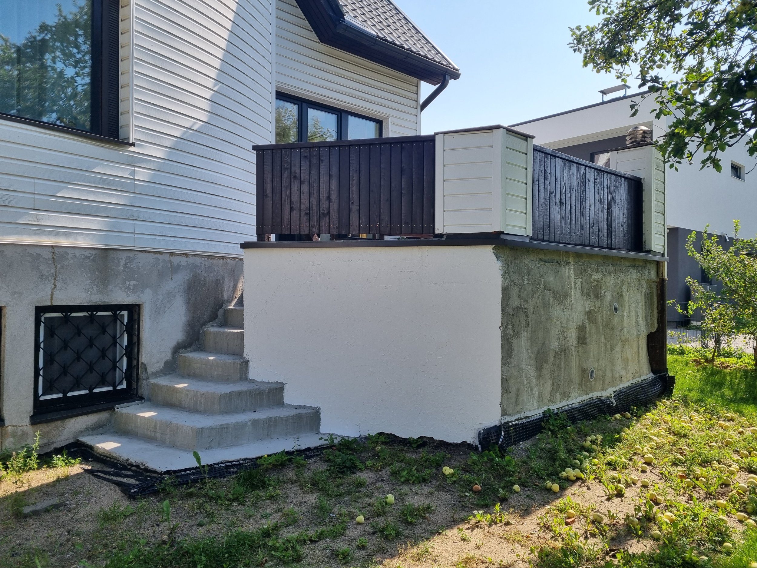 Terrass 1 tööd: plaatimine (osad plaadid uuesti kinnitada, vana vuuk asendada kogu terrassil), puidust piirete ehitamine, madala tellistest seina katmine laudisega.