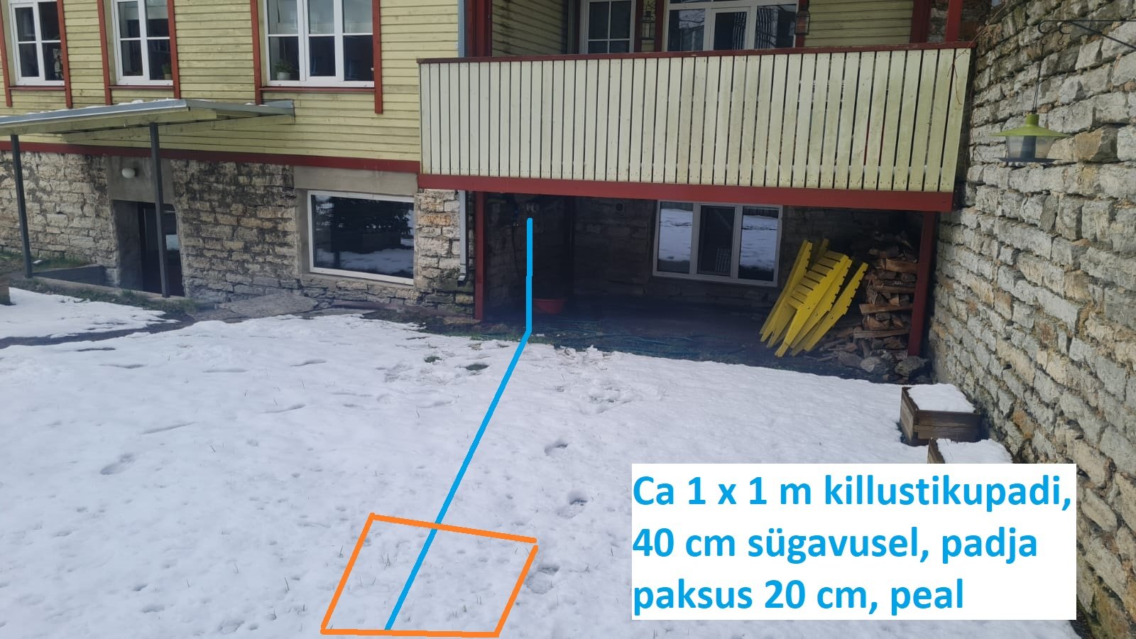 Pakkumine siis soovitud tööle. Materjal ja paigaldus. Imbkaevule panek veel kuskil 30 cm sügavusele peale penoplasti plaadi. Tundub, et rõdu juures torus võib talvel vaja minna ka külmumisvastast kaablit ( see pole hinna sees). Parimat! Torumees |