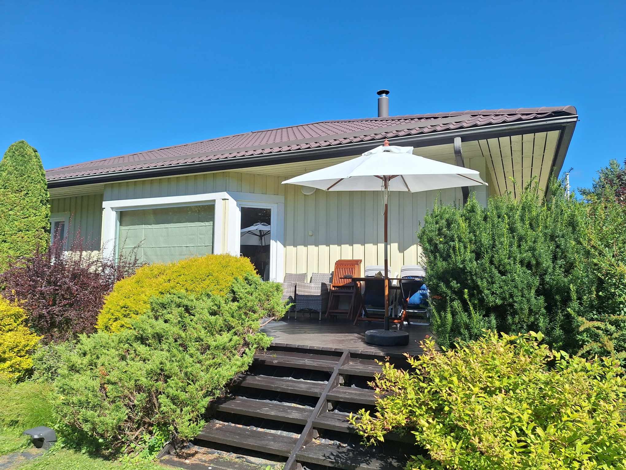 Sooviksime pakkumist uue puidust terrassi ehitamiseks Kelvingis, Viimsis. Meil on praegu väiksem terrass, aga sooviksime selle asemele ehitada uue ja suurema. Lisan teile uue terrassi joonise, millel on ligikaudsed mõõdud ja foto olemasolevast terrassist, mis läheb lammutamisele. Fotolt näha olevad põõsad lähevad väljajuurimisele. Terrass on maja sokli vastas ja asuks kallaku peal, mistõttu terrassile tuleks trepiastmed. Maapinnast terrassi esiotsani on umbes 50 -55 cm. Kuna krundil on haljastus, siis autoga tagaaeda, otse terrassi juurde sõita ei saa ja materjali tuleb tuua maja eest ca 50 m kauguselt. Kas saaksite palun eraldi välja tuua maksumuse koos teiepoolse materjaliga ja ka juhul, kui terrassi ehitamiseks vajaliku materjali tooksime ise vastavalt teie nimekirjale.