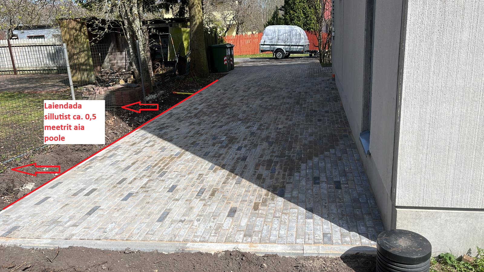 Töö sisuks on olemasoleva sillutise laiendamine ca. 0,5m võrra (pikkusega umbes 10m). Vaja oleks teostada järgmised tööd: