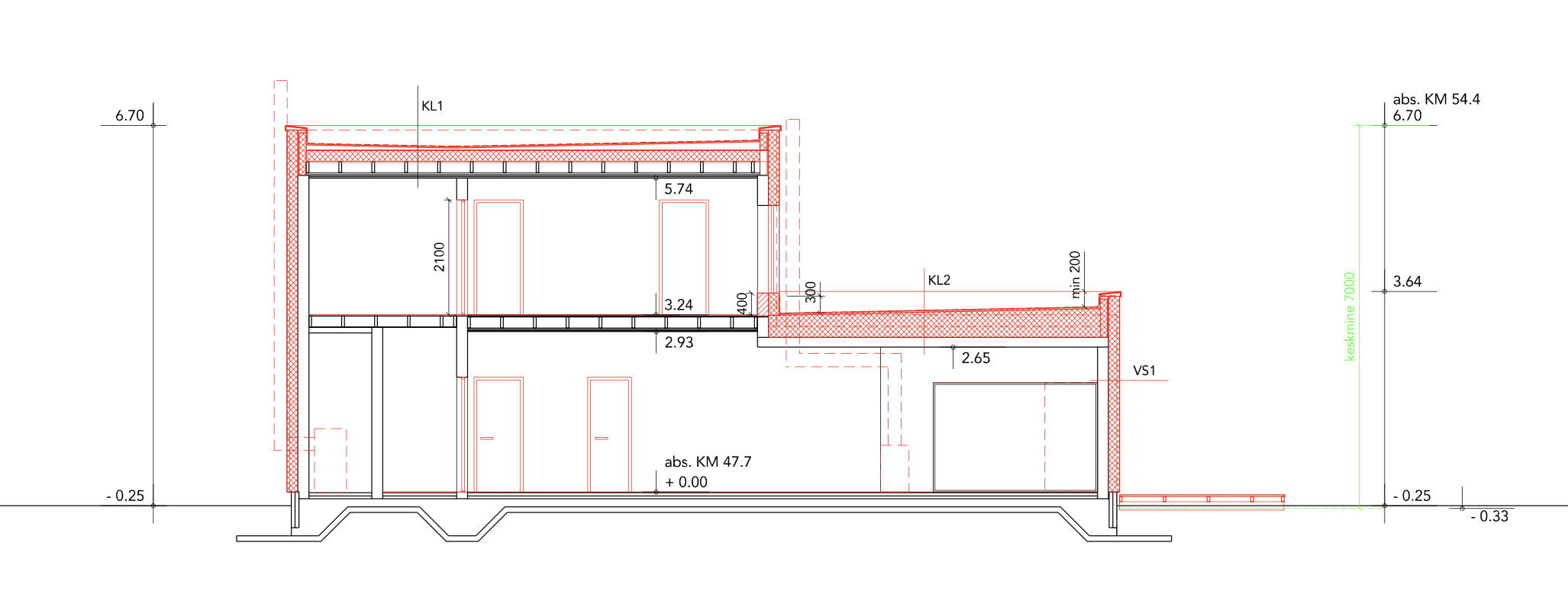 1. korruse katuse parapeti on vaja tõsta 250mm.