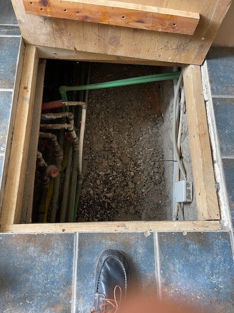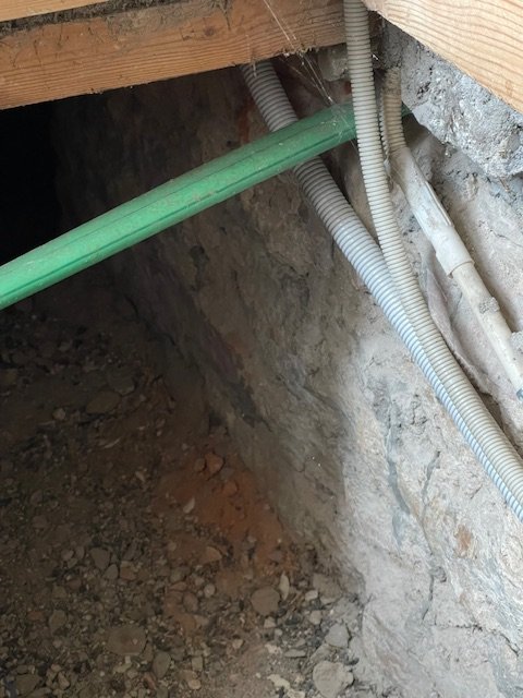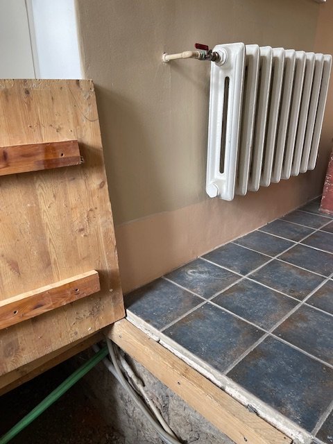 1. korruse trepikojas läheb küttetoru (roheline) pildiloleva luugi alt paekivi seina sisse ning pöörab üles ca 1m ja väljub seinast (beežist plastikust toru). Torul ei ole eraldi kohalikku kraani. Küttesüsteem on vett täis. Eesmärk on asendada seina sees olev toruosa ning seinast väljuv toruosa, kuna see beež plastiktoru lekib. Töö eeldab seina avamist/freesimist, kuid hilisem viimistlus ei ole antud töö osaks. Seega palun hinnapakkumisi seina freesimisele, toru asendamisele koos materjalidega ja kraanidega luugi alla ja radiaatori ette. Lisaks on väga oluline korralik koristus pärast töö teostust, et ehituspraht, krohv jms oleksid korralikult eemaldatud. Töö tegemise ajaks saab parkida tasuta sisehoovi.