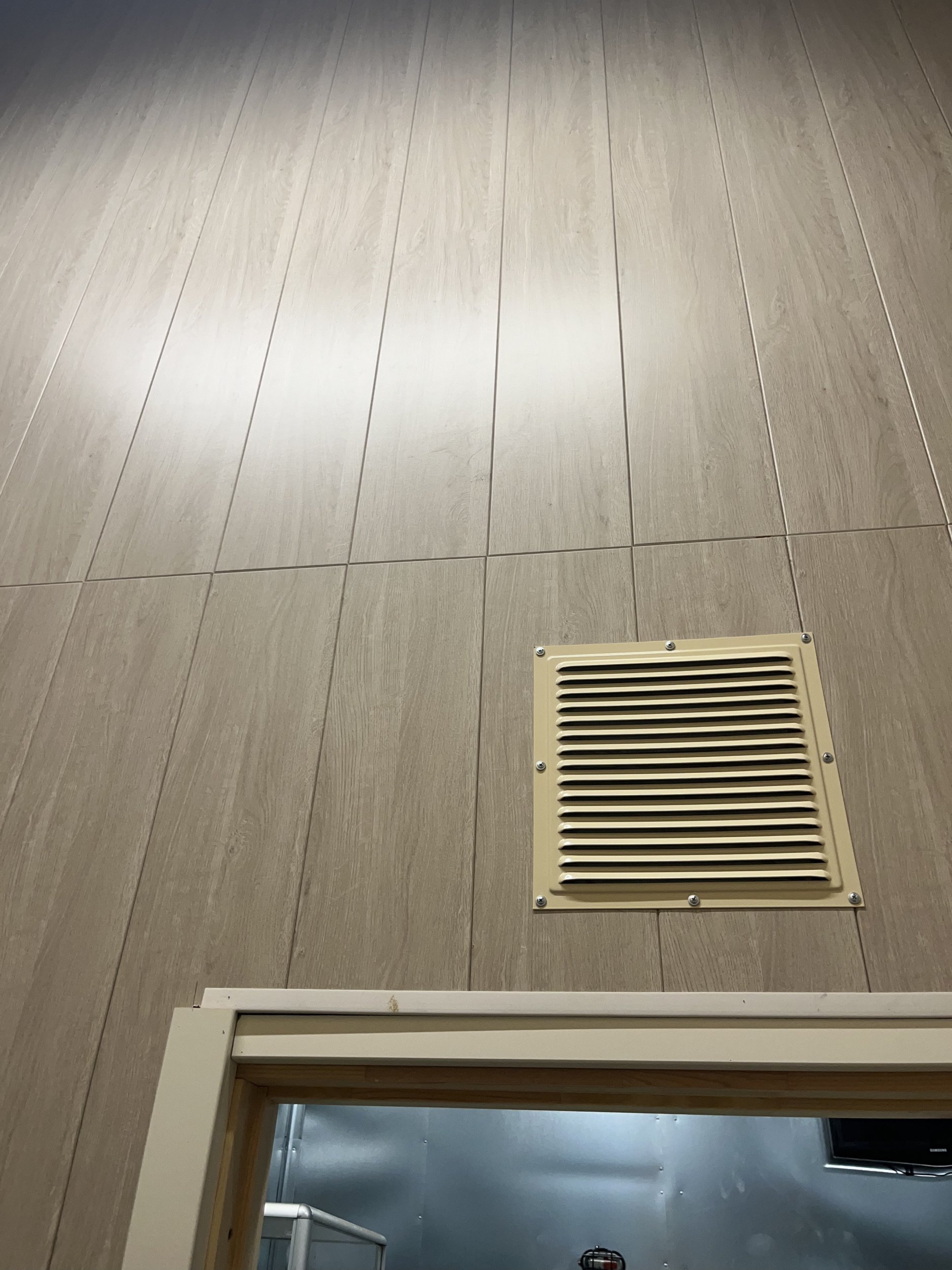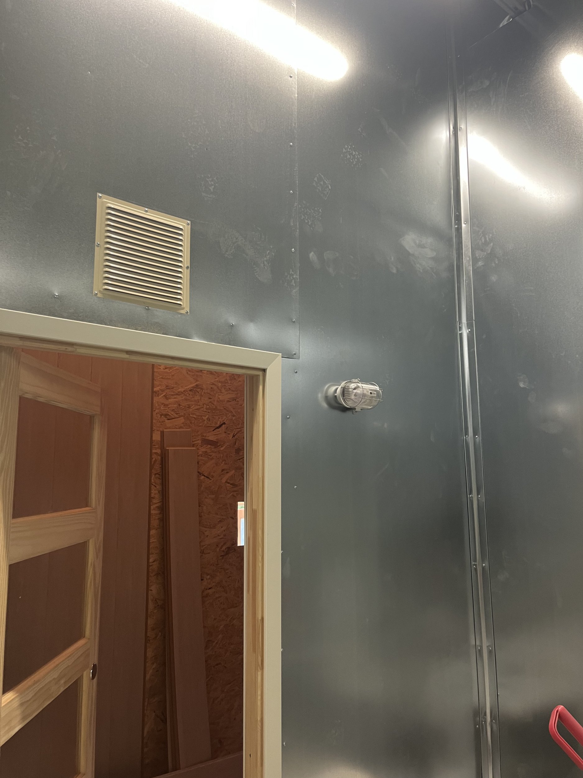 Tuba 1 on vaja ventilatsioonitoru vaja tuua ca 2.8 m kõrguselt sellist, et nii üks ava jääb esimesse ruumi ning teine ava teise ruumi (plekk seinaga ruum). Esimese ruumi laius ca 1.4m. Seina paksus ca 10 cm. OSB paksus akna ees 1cm.