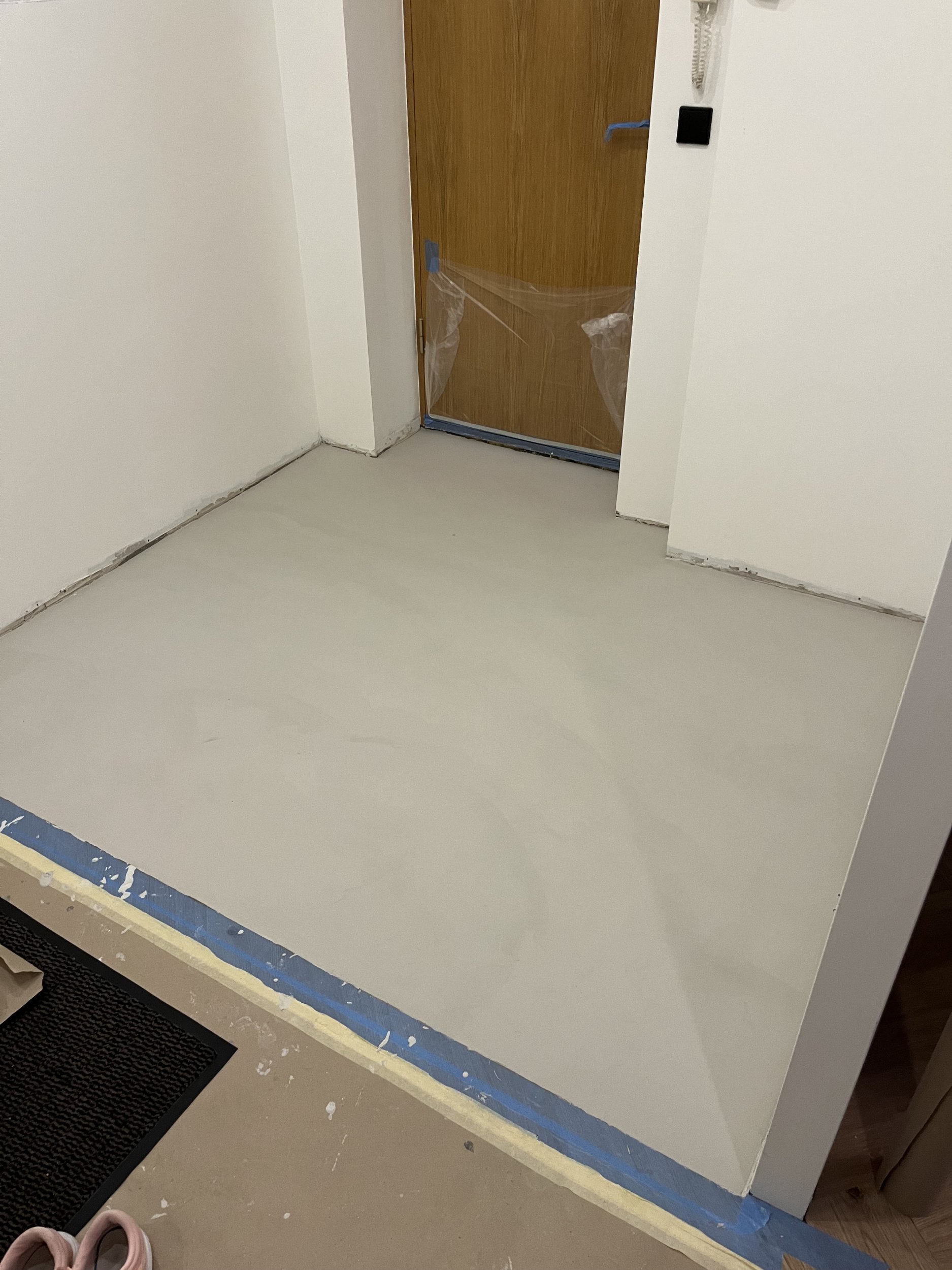Hetkel on põranda peal mikrotsement, aga see jäi parketiga võrreldes liiga madalaks. Tuleks kõrgemaks valada. Pakkumine ainult põranda valamisele